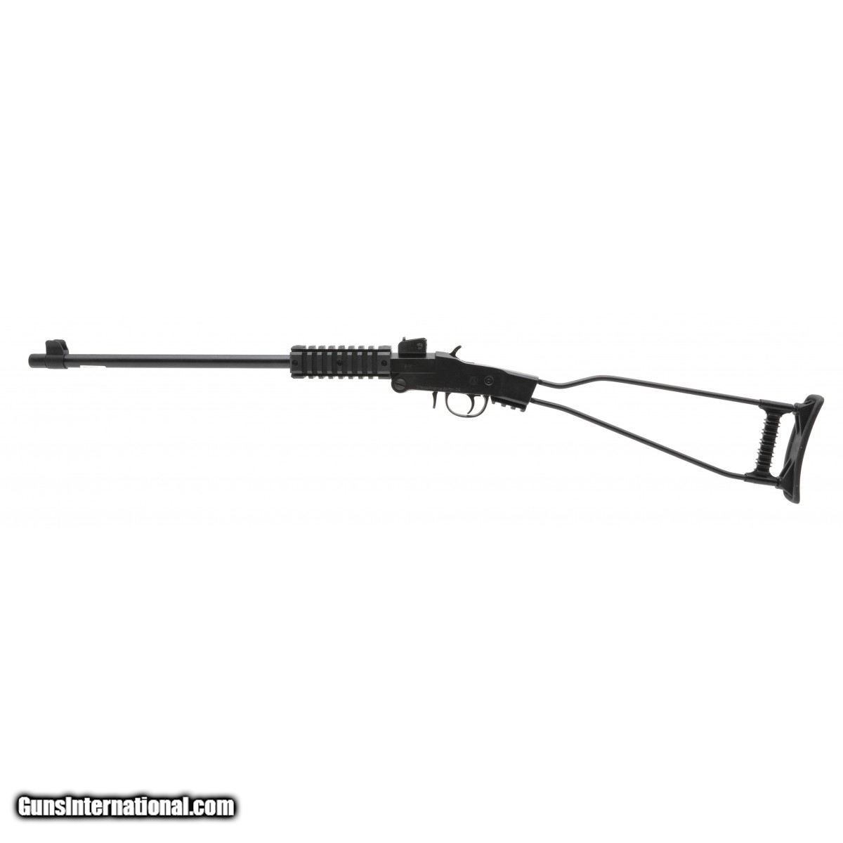Description: " Single shot, takedown survival 16.5"" threaded rifle with a blued finish, wire stock, adjustable sights, and a picatinny quad rail forend. NEW. UPC:8053670710290. SOLD |