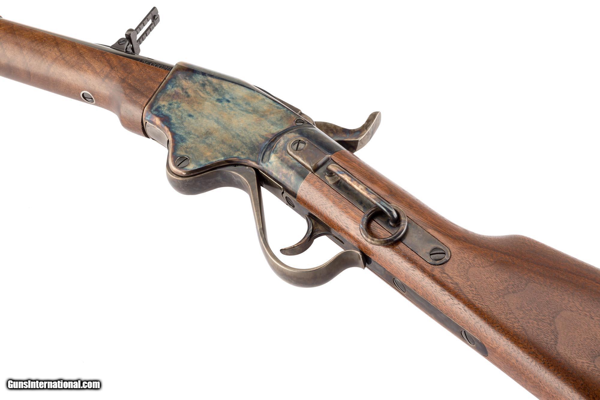 Description: BRAND NEW IN THE BOX AND READY TO SHIP! BUY IT NOW!! Manufacturer: Chiappa Firearms Model: 1860 Spencer Carbine SKU: 920.062 Action: Lever-Action Caliber: .44-40 Win Barrel Length: 22" Capacity: 7 Rounds Trigger System: Single Stock & Forend: Hand Oiled Walnut Front Sight: Fixed Blade Rear Sight: Ladder Adjustable Weight: 9 Lbs Length: 37" Finish: Color Case Receiver/Blued Barrel Material: Steel Designed by Christopher Miner Spencer, the Spencer rifle reaches its fame after being adopted by the military service during the American Civil War. With the presence of a manual lever starting from the handle drum, the Spencer rifle becomes a great improvement of the muzzle loading weapons used during the war. The reproduction of Chiappa Firearms is created thanks to precise CNC processing that also features a wonderful calcium treated in walnut oil. The castles finished in various colors add a blue finish to the precision of the rifle barrels. The Chiappa Firearms produces Spencer rifles in the original 56/50 or 45 Colt form that is easier to obtain. KNOW YOUR LOCAL AND STATE LAWS!! ORDERS WILL ONLY BE ACCEPTED FROM US RESIDENTS OF THE LOWER 48 STATES, ALASKA AND HAWAII. OUR FFL CLASS DOES NOT ALLOW FOR THE EXPORT OF FIREARMS, THEREFORE WE CANNOT SHIP OUT OF THE US. IF YOU ARE INTERESTED IN PURCHASING THIS ITEM, PLEASE COMPLETE YOUR ORDER BY REFERRING TO THE "SELLER'S INFORMATION" ABOVE. SOLD |