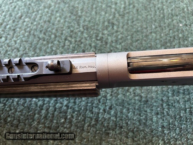 Description: Chiappa, mdl 1892, Take Down, 44 rem mag, lever action, laminated grey stock, pistol grip stock, pickatinny rail with peep sight, 16" threaded barrel half round/half octogon, sling swivel studs, like new. Serial # CFIT23B02655. For further information and faster service call John at 941-224-5563. Price: $1,495.00 Contact Seller |