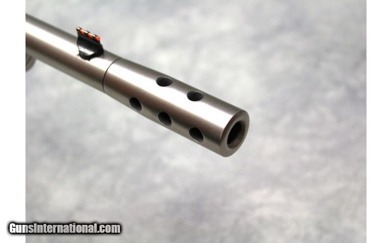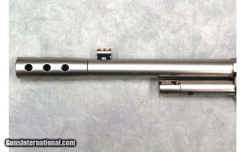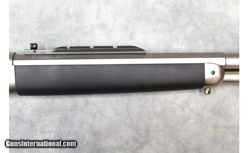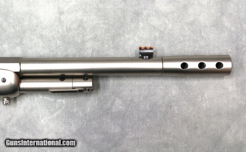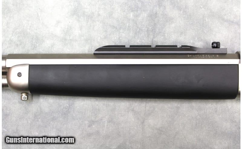 Description: Originally created by genius gunsmith, John Browning and produced from 1897 to 1935, the model 1886 is manufactured in even more configurations today. New models are produced with modern metallurgy and a twist rate suitable for today's ammunition making it the perfect choice for hunters looking for a hard-hitting lever action for every lever action enthusiast. The Ridge Runner Take-Down Rifle features a matte chrome finish, black rubber soft touch over walnut stock & forend, a half octagonal barrel, integrated Skinner peep & weaver rail rear sight, front fiber optic sight, sling mounts, D-shaped lever, and a muzzle brake. A threaded cap is included if the muzzle brake is not used and the muzzle brake thread is 5/8x24. The take-down action disassembly is the same an original 1892 take down disassembly and has interrupted threads on the receiver to allow removal of the barrel. To take down the rifle the action must be levered open, the disassembly lever on the magazine tube used to unscrew the tube until it is free from the receiver, then while holding the tube slightly up from the action twist the barrel 90 degrees so that it is perpendicular to the receiver (the muzzle brake must be removed before disassembly). .45-70 Government SOLD Metal Condition: Overall Excellent with some light scratches and marks front light to moderate use. Bore Condition: Excellent Barrels: 18.5" Threaded with muzzle brake Weight: 10 Lbs Sights: "Fixed fiber optic front sight, Skinner Peep rear sight. Item Location: Las Vegas, NV |