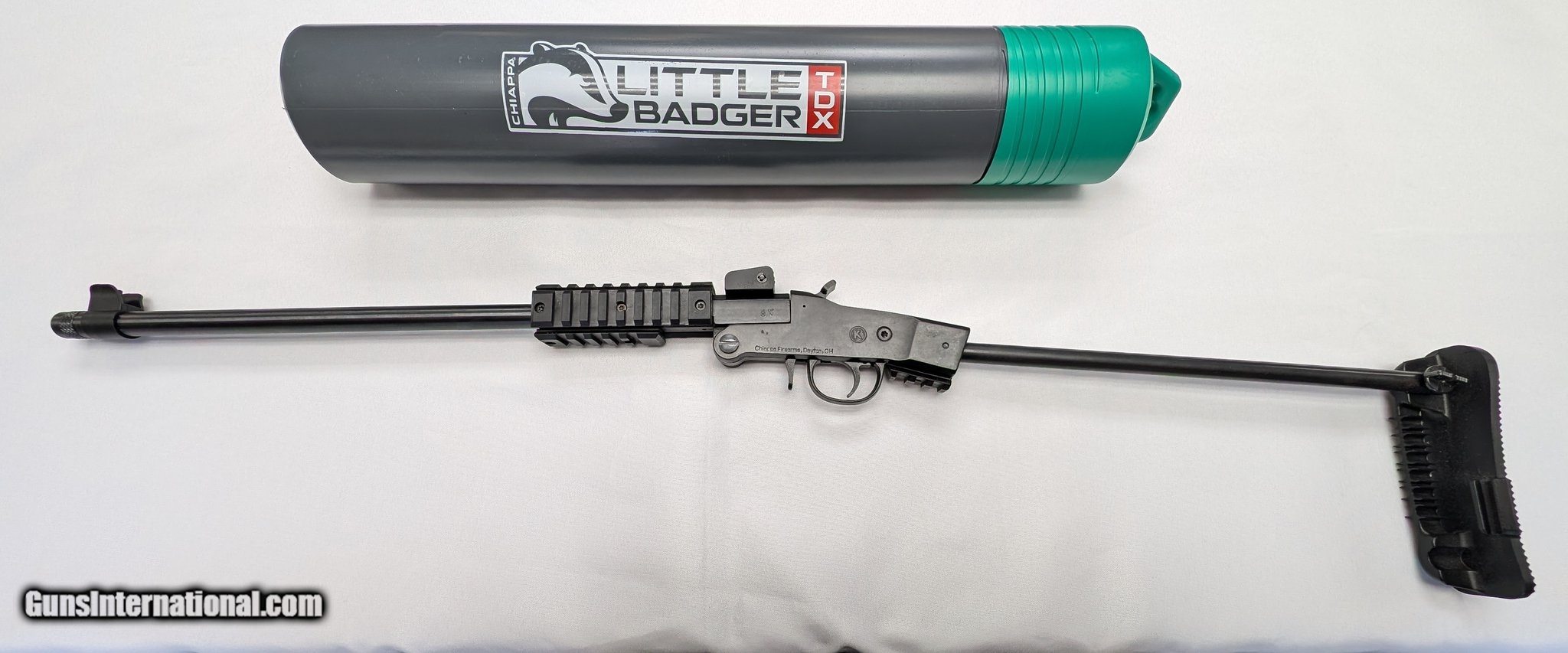 Description: Guns Listing ID: 1324371 THIS RIFLE IS IN VERY GOOD CONDITION AND COMES AS PICTURED WITH STORAGE TUBE AND ORIGINAL BOX SOLD Manufacturer: CHIAPPA FIREARMS Model: LITTLE BADGER Caliber Info: .22 LR Condition: Used - Non-Certified Barrels: 16.5 BARREL Finish: BLACK |