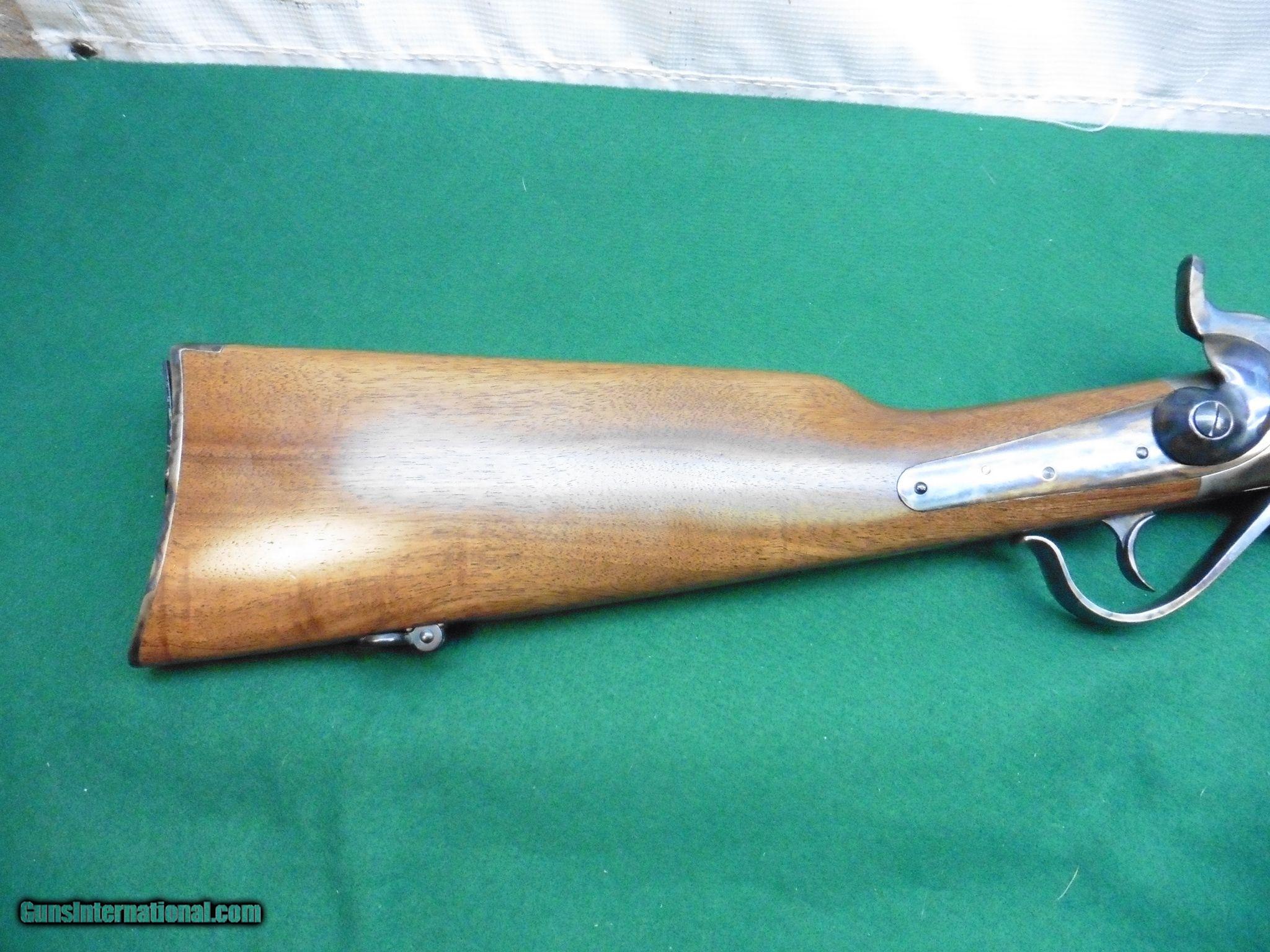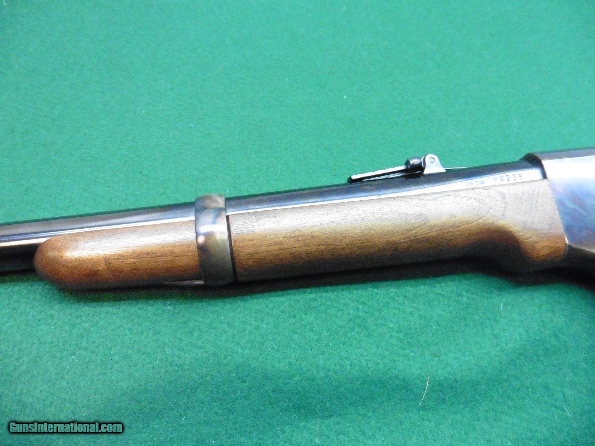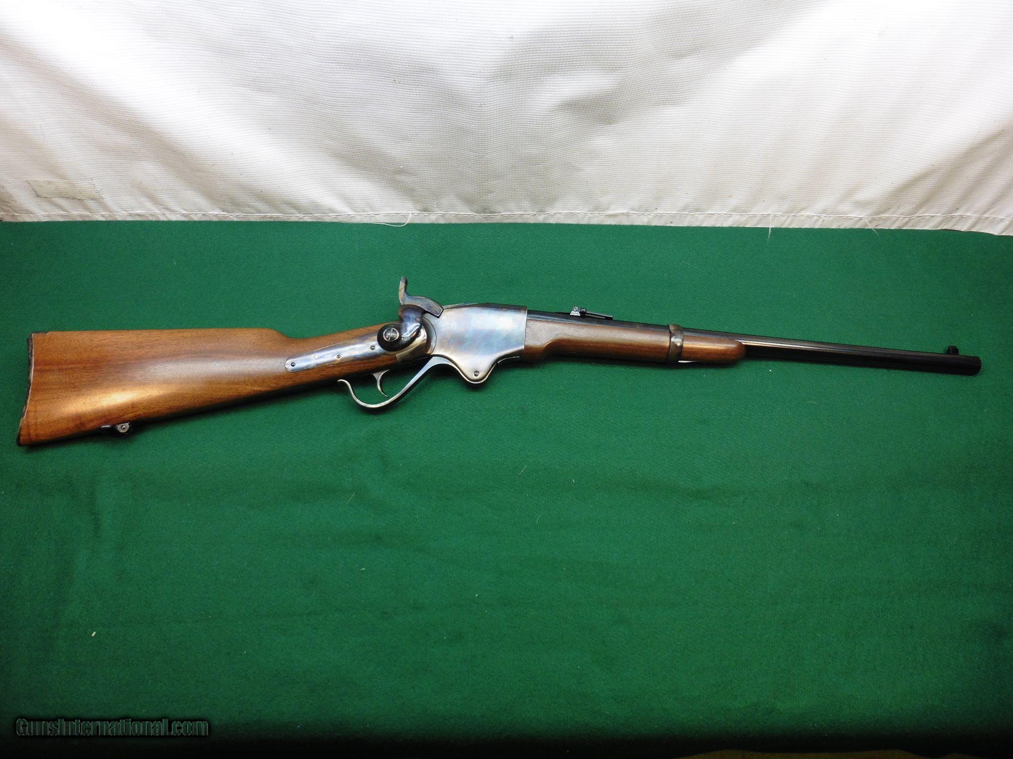 Description: Recreation of the late civil war Spencer Carbine. Made by Chiappa and imported by Taylor & Co. Lever action design with 20" round barrel. Tube fed magazine accessed via buttplate. Walnut stock, ladder rear sight and blade front sight. Case hardened receiver, butt plate, lever assembly and barrel band. Saddle ring. Lightly used rifle in good overall condition showing only light handling marks. We accept all major credit cards, cashier checks and money orders. 3% fee for CC transactions. Buyer to pay shipping. SOLD Manufacturer: chiappa Model: Spencer Carbine Caliber Info: 45LC |