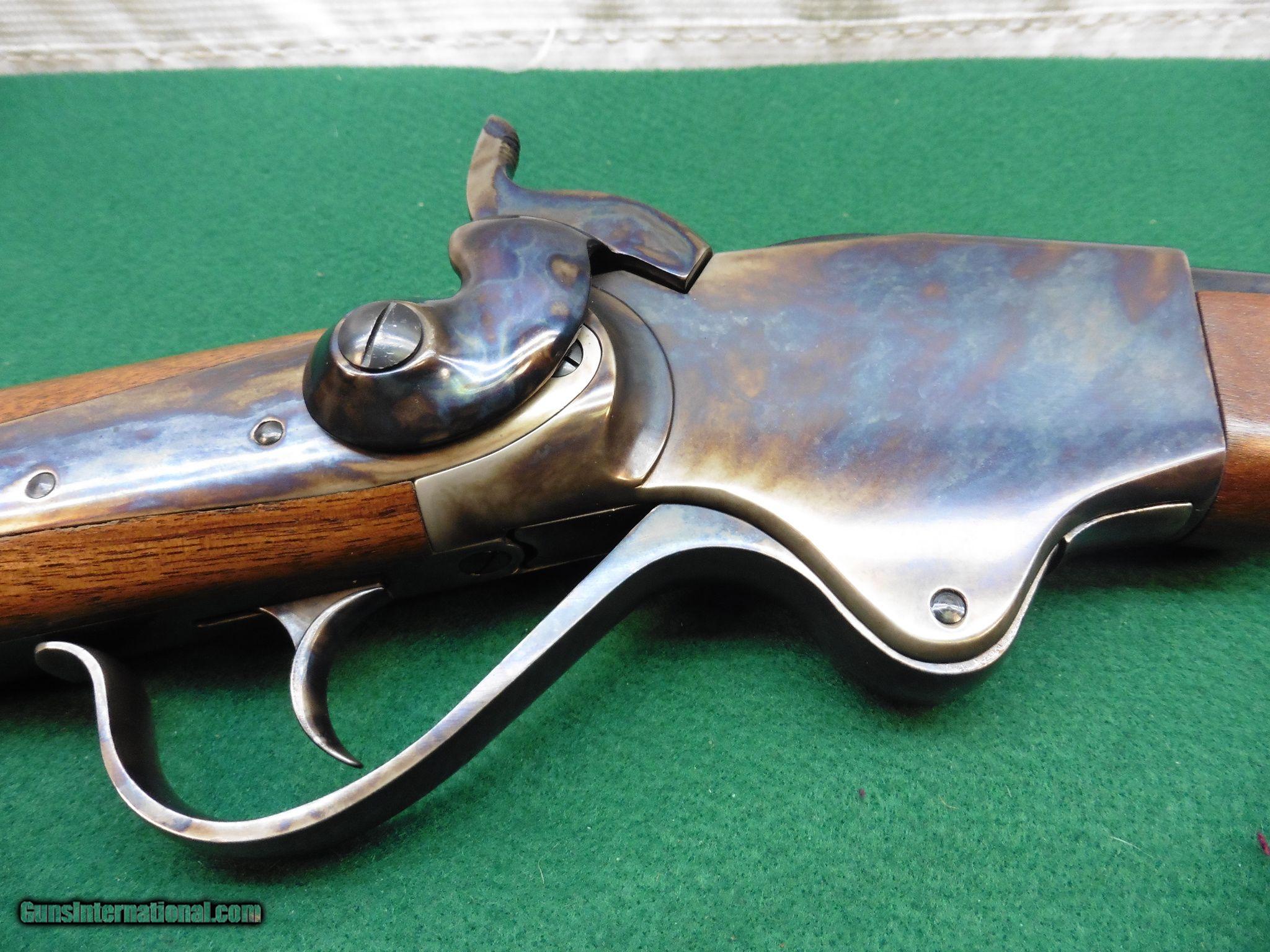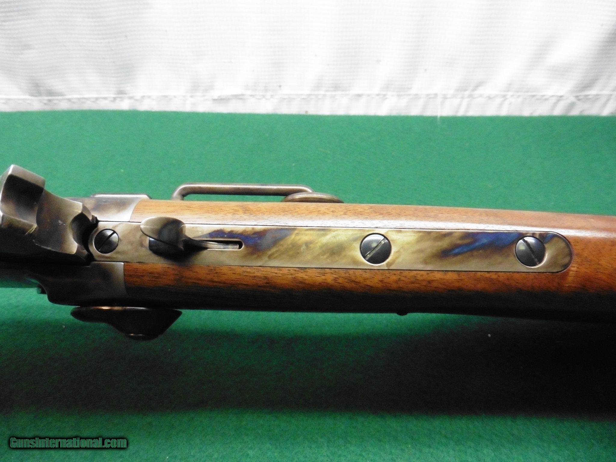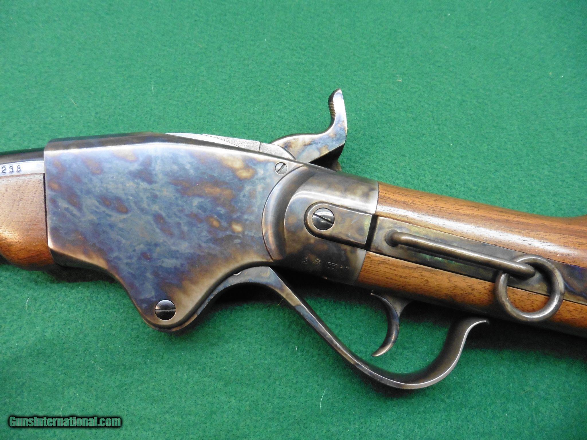 Description: Recreation of the late civil war Spencer Carbine. Made by Chiappa and imported by Taylor & Co. Lever action design with 20" round barrel. Tube fed magazine accessed via buttplate. Walnut stock, ladder rear sight and blade front sight. Case hardened receiver, butt plate, lever assembly and barrel band. Saddle ring. Lightly used rifle in good overall condition showing only light handling marks. We accept all major credit cards, cashier checks and money orders. 3% fee for CC transactions. Buyer to pay shipping. SOLD Manufacturer: chiappa Model: Spencer Carbine Caliber Info: 45LC |
