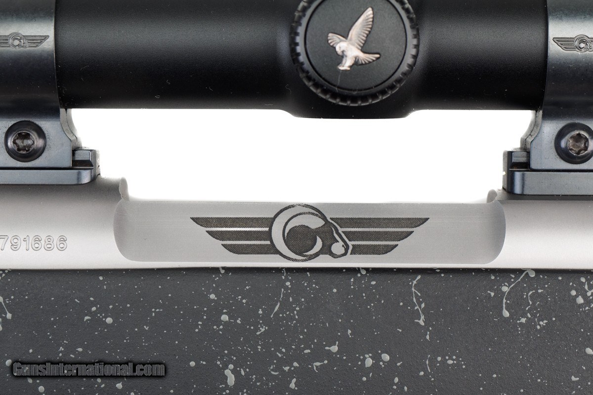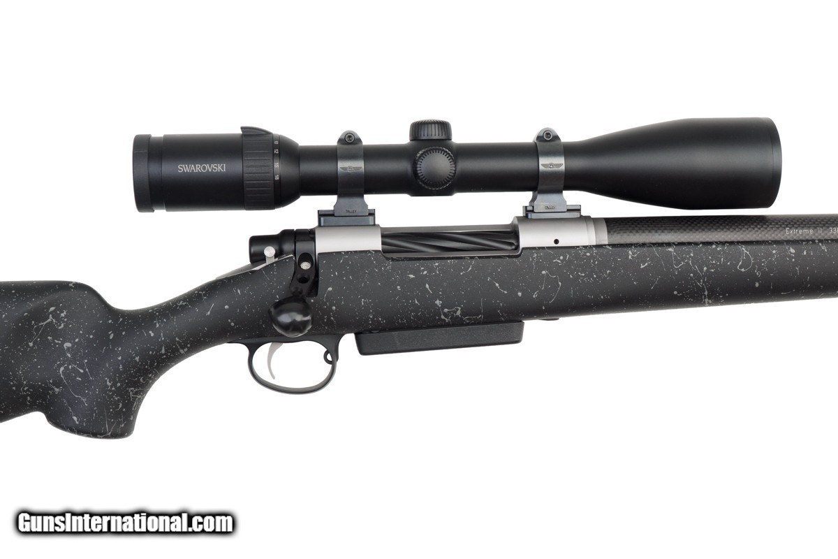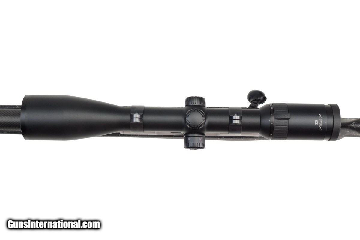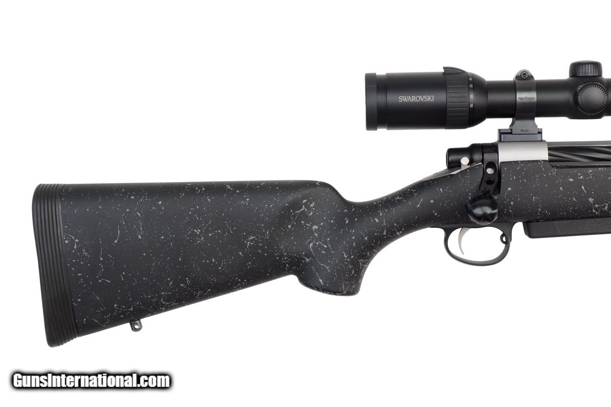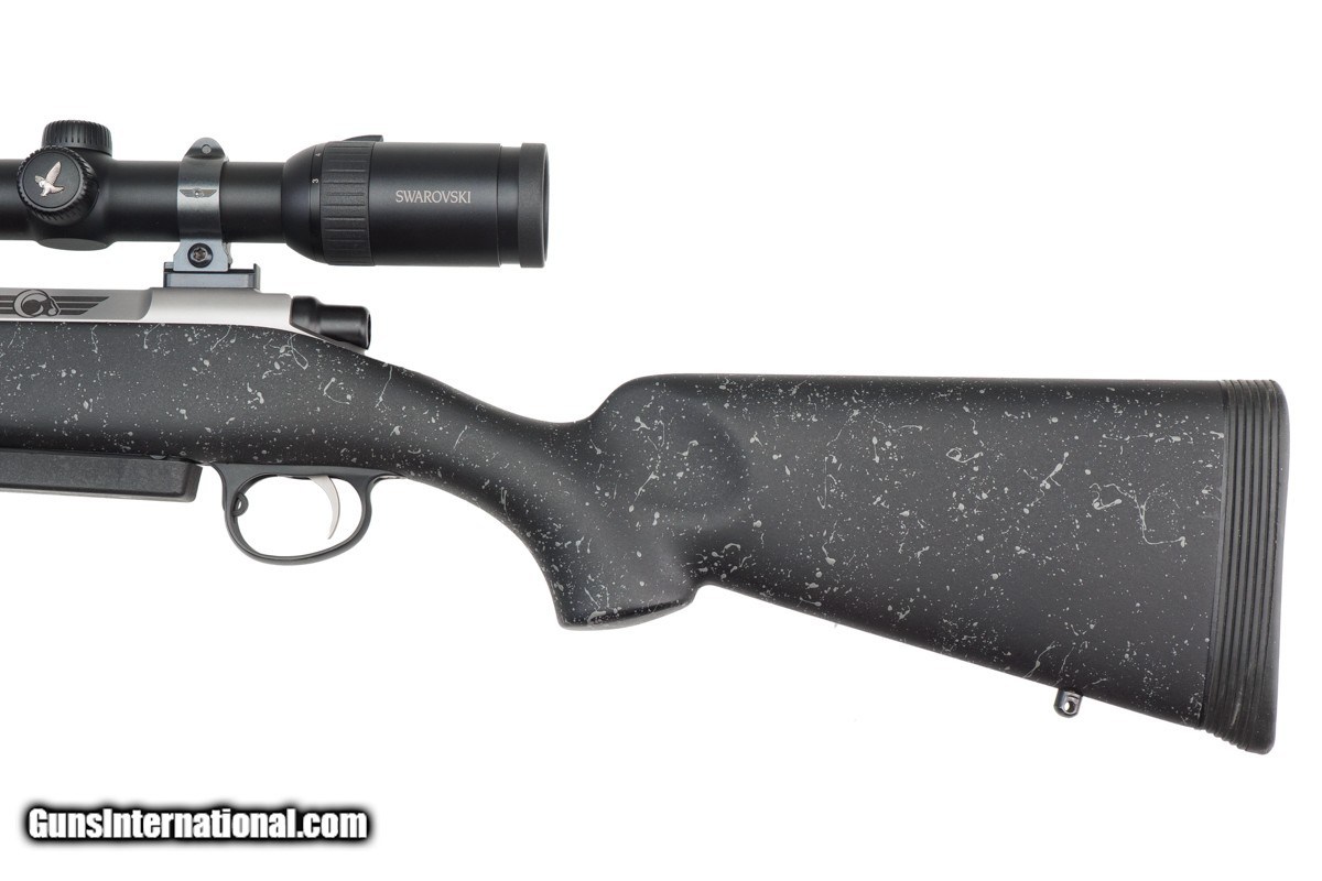Description: STAINLESS-STEEL RECEIVER, 26" CARBON-WRAPPED BARREL, MUZZLE BREAK, SWAROVSKI Z6 3-18 x 50P SCOPE , CARBON FIBER STOCK, PISTOL HAND GRIP, 13-1/2" LOP, RUBBER PAD, 8 LBS. - 15-7/8 OZ. Bolt-action rifle designed for high-altitude, long-range shooting chambered for the .338 Lapua magnum cartridge. The 26" match grade, hand lapped, carbon-wrapped, free-floating barrel is fitted with a 2" threaded titanium muzzle break giving a total barrel length of 27-1/2". Built on Christensen Arms Remington Model 700 based stainless-steel action with fluted Teflon coated bolt, skeletonized bolt handle, detachable clip magazine and a 2-position side safety. The trigger guard with built-in magazine release protects a single trigger with a smooth blade. The left side of the stainless-steel receiver displays the Christensen Arms logo and has the serial number. Swarovski Z6 3-18 x 50P rifle scope is mounted to the receiver with Christensen Arms branded steel Talley rings onto fitted bases. Christensen Arms propriety carbon fiber classic stock with pistol hand grip, black with grey webbing finish, graphite bedding block, studs for sling swivels on both the toe line and forearm to and 13-1/2" LOP to a 7/8" LimbSaver black rubber recoil pad, 8 Lbs. - 15-7/8 Oz. with scope/mounts.