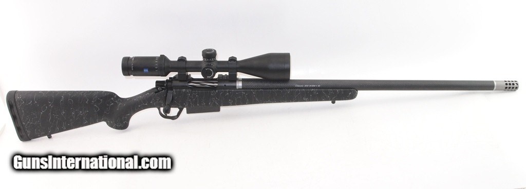 Description: Pristine Christensen Arms Classic Zeiss PKG .300 WSM, 24" grey/black carbon fiber barrel, muzzle brake, shiny bore, good rifling, black finish, Zeiss Conquest HD5 5-25X50 rifle scope, spiral fluted bolt, black with grey webbing stock, LOP - 13 3/4", sling studs, Limbsaver recoil pad, and one 3 round magazine. Very clean rifle! Add 3% for Credit Card Shipping $35.00 SOLD |