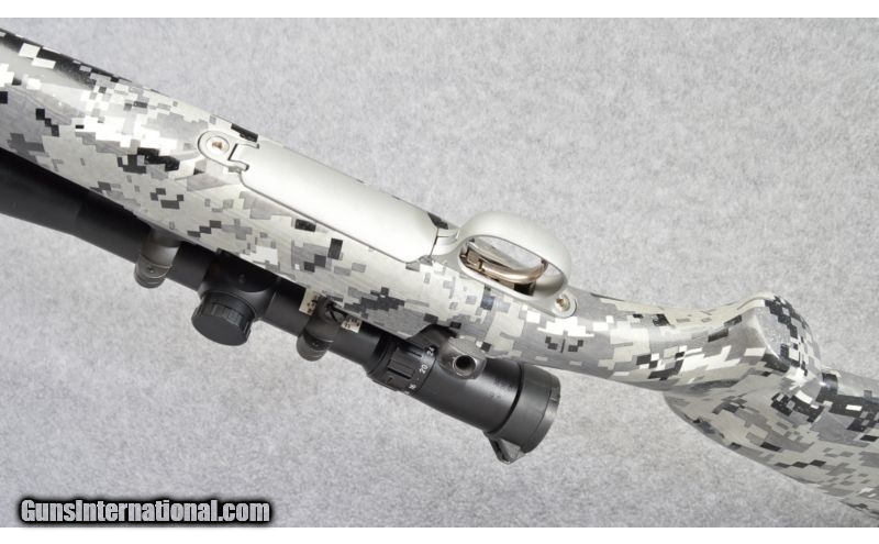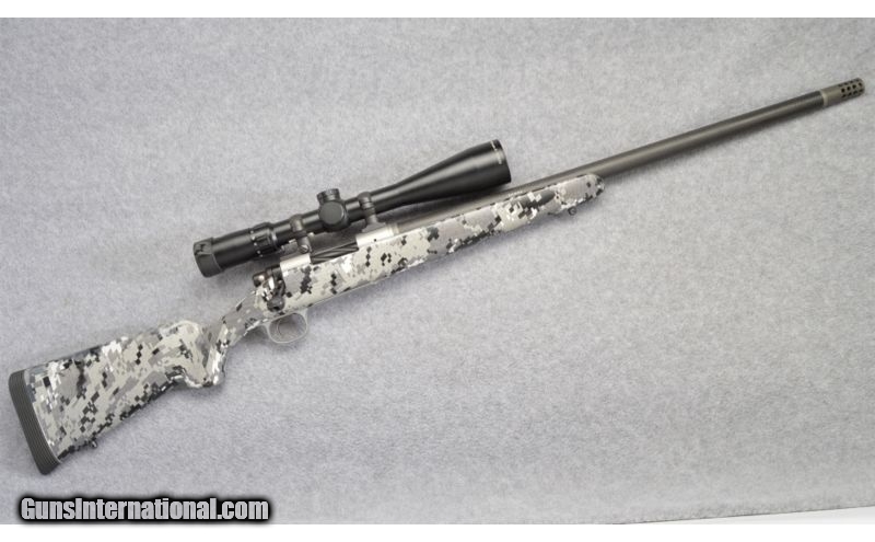 Description: Christensen Arms Custom in 300 WSM, Billet machined 416 stainless receiver with blued spiral fluted bolt, 24" Carbon barrel, Removable titanium muzzle brake. SOLD Caliber Info: 300 WSM Metal Condition: Couple minimal handling marks Bore Condition: Bright and Sharp Barrels: 26 Inch over Titanium Muzzle Brake Stock: Synthetic Pistol Grip Stock, Custom Camo Finish Stock Dimensions: 13 3/8" LOP Butt Pad: Limbsaver Recoil Pad Weight: 8 Lbs 4 Ozs Sights: Cabelas Tactical Alaskan Guide 8-32x50mm Item Location: Buda, TX |