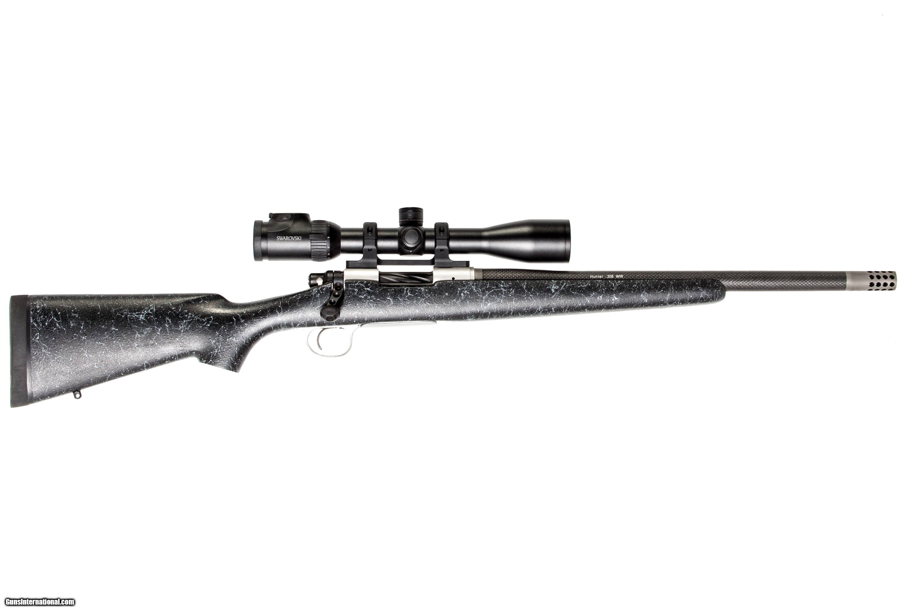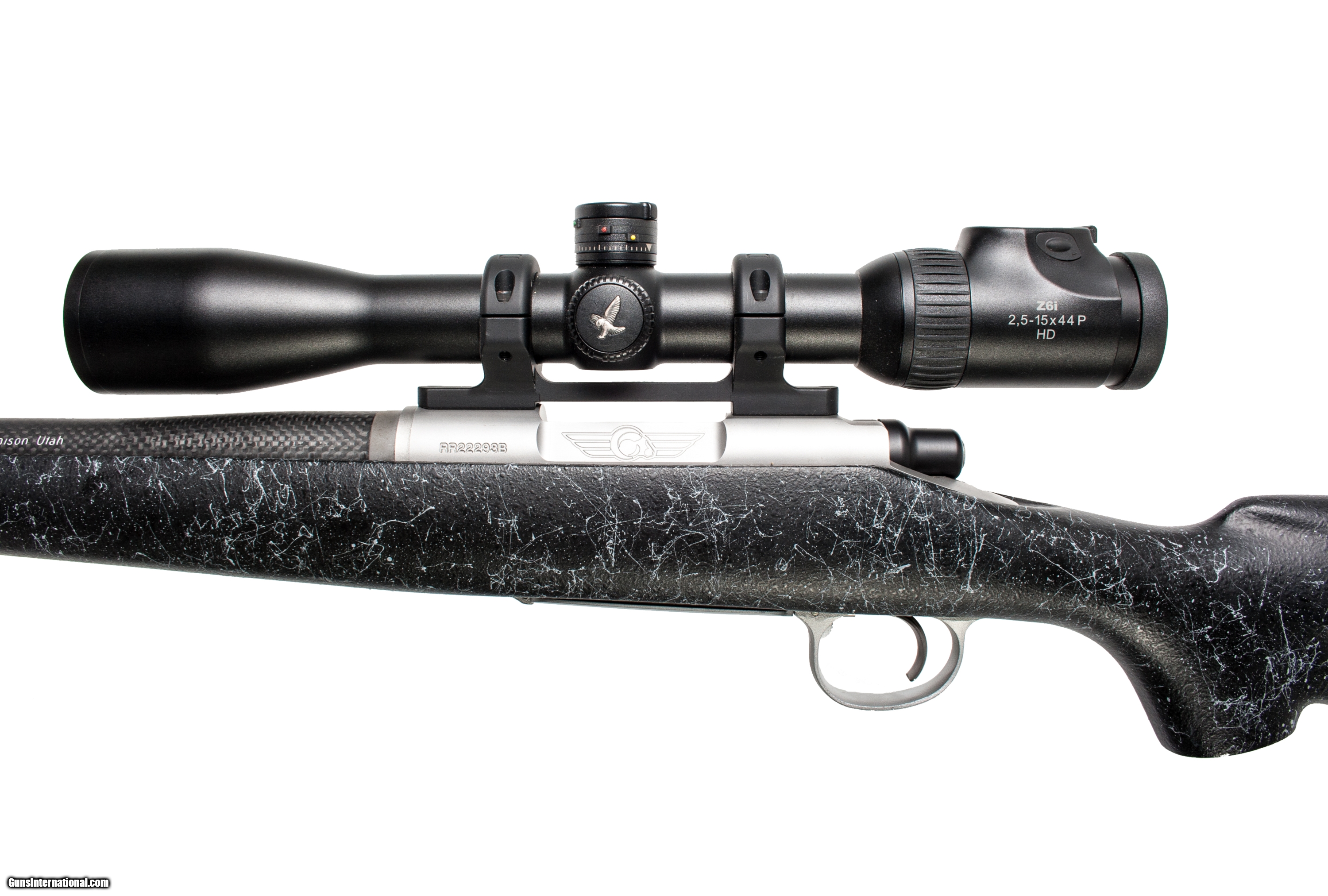 Christensen Arms Hunter chambered in 308 win with a 18 inch carbon fiber barrel with a muzzle break and a Swarovski 2.5-15x44 Z6i scope. This gun is in excellent condition and is covered by Dury's Lifetime Warranty.