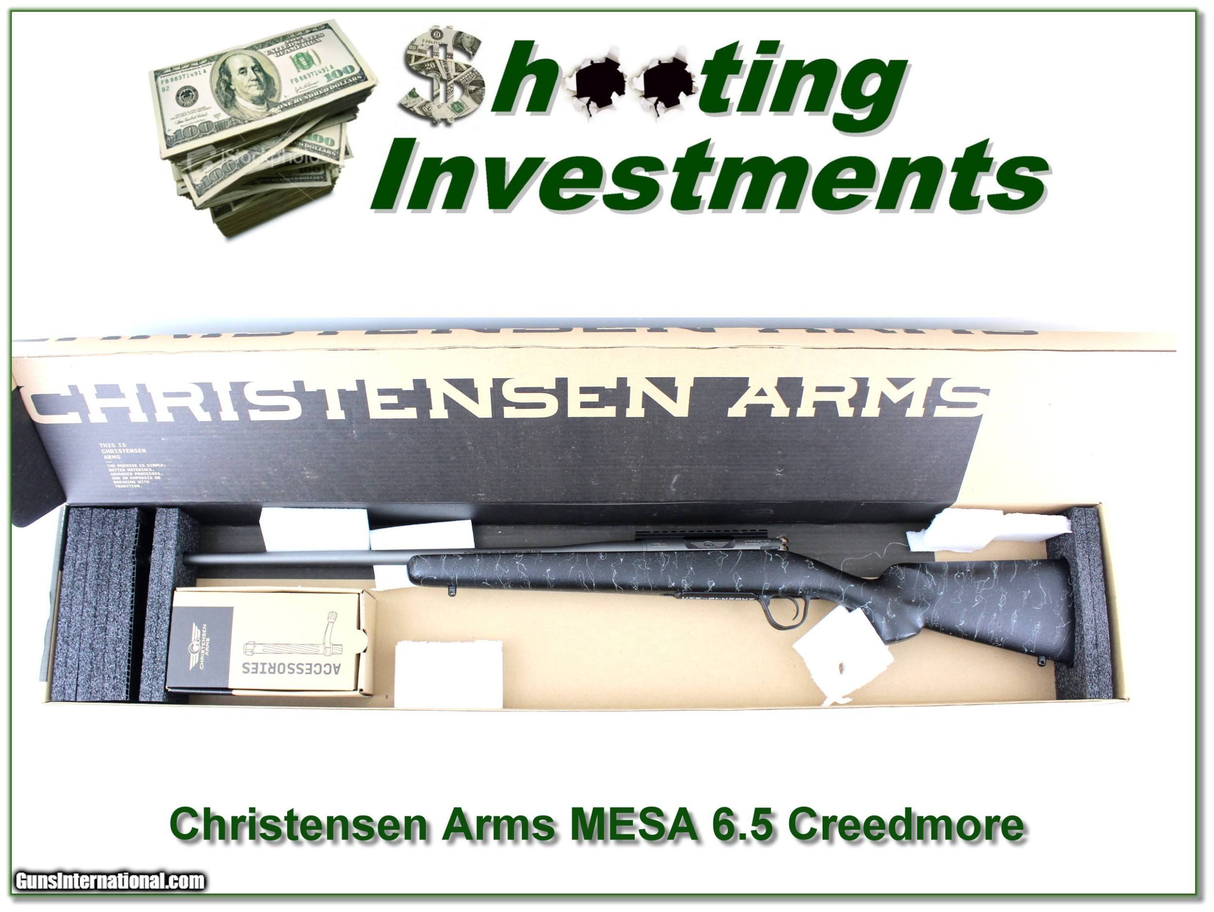 Description: This is a near new and in the box Christensen Arms MESA Model 14 in 6.5 Creedmoor. At most a few rounds fired. It has a 23.5in barrel including the blended muzzle break. The bolt is spiral fluted, and it comes with scope rail as seen. I find no marks and it comes in original box with papers. I am selling this one on consignment and as such lay-a-way can’t be used. It does of course have the standard 3-day inspection. Shipping and insurance is $49. Please email me with any questions or larger pictures. (Consign your quality firearms with Shooting Investments for only 12%! Let me know if you have any you would like to sell!) 22-0549 Payment: Payment is by Money Order, Cashiers Check or Personal Check. I can now also accept Credit Cards (MasterCard, Visa, Discover & American Express) with a 3% convenience fee. Shipping: The shipping charge will be listed in each description. It is $49 for most long guns. Some heavy guns, over 48in boxes or those insured for over $2000 will be higher. Shipments to Alaska and Hawaii are higher because air shipment is required. Most firearms are shipped on Tuesday and Thursday and usually in 5 days of receipt of payment. We package all shipments carefully and insure them. Optics are shipped Priority Mail and most other non-firearm shipments are shipped First Class. Returns: Our return policy is simple. If for any reason you are not pleased with your purchase, you may return your item for a full refund of purchase price. Ammunition cannot be returned. It is important to us that you are happy. Guns cannot be fired or dissembled before returning them and they must be returned in the same condition as received. Notification of a return must occur with-in 3 days of receipt at your dealer. Shipping, convenience and dealer fees are not refundable and are the responsibility of the buyer. Lay-a-way: If needed, we offer a 60 day lay-a-way option on most firearms. It is 1/3 now, 1/3 in 30 days and 1/3 in 60 days. Lay-a-way firearm sales are final and if not completed the first payment cannot be returned. Consigning your firearms with Shooting Investments: We will help you get top dollar for your firearms. While most local guns shops charge 20% or more, our fee is only 12% with a minimum of $75. At your local gun shop it might take months to sell. Selling on-line provides instant access to thousands of interested buyers. You won’t find any other on-line dealer willing to sell your firearms for only 12% or listing every gun on 3 separate s. Selling through an House typically costs the seller 15% and the buyer an addition 15% (so 30%) and you have to wait several months to sell and longer to receive funds. If properly priced, we will sell your firearms in a few weeks. Send us an email or give us a call and we’ll explain how easy it is for you to get top dollar. Trading: Trading for use is really just buying your gun to re-sell. If you have a gun you want to trade, please email a picture and we will let you know what we can give or it. You will always get more if we sell it for you on consignment. Help for California Buyers: We are happy to ship to California. It is the buyer’s responsibility to make sure any item you buy is legal in your state. We are also happy to help with your purchase of a firearm from someone other than us. If you see a gun you would like to buy but the seller can’t or won’t ship to California they can ship to use and we’ll then ship it to your California dealer. The cost for this service is only $30 + shipping. Let us know if we can help! SOLD |