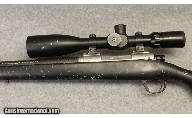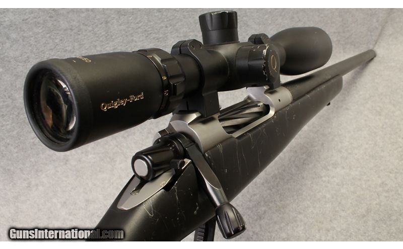 Description: Christensen Arms, Model 14 chambered in .26 Nosler. This rifle has a carbon fiber wrapped barrel, removable thread cover, and carbon fiber composite stock all of which is in very good condition. The spiral fluted bolt has slight scuffing on bolt handle but is free of rust and damage. The 26" bore is in very good condition with well defied rifling. A Quigley-Ford 5-20 power scope is mounted to the rifle while in good condition. The Quigley-Ford scope is specific to a .26 Nosler, 140gr bullet. .26 Nosler SOLD Metal Condition: Action is in very good condition. Wood Condition: Carbon fiber composite stock in very good. Bore Condition: Bore is in very good condition. Barrels: 26" carbon fiber wrapped barrel. Triggers: 46.5" overall length. Stock Dimensions: 46.5" overall length. Butt Pad: Limbsaver buttpad. Weight: 8 Lbs 7 oz Sights: Quigley-Ford SF 5X20X50. Item Location: Tualatin, OR |