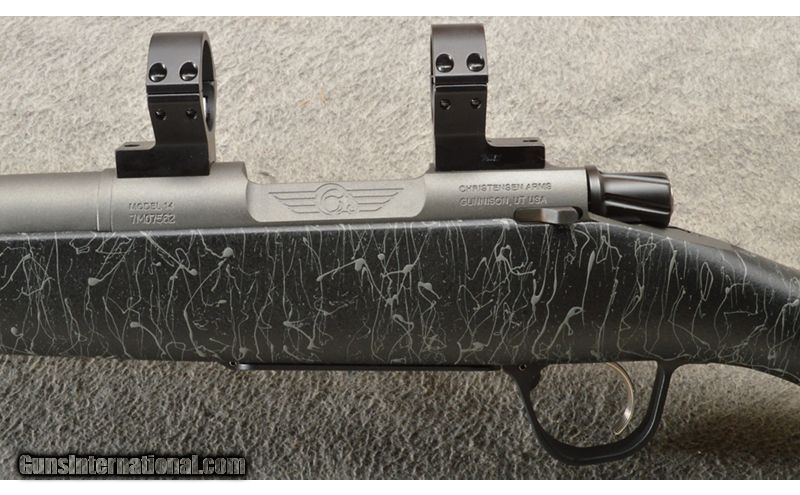 Description: This Christensen Arms Model 14 Mesa in .308 Winchester is like new. This Mesa is a premium quality lightweight hunting rifle offered at a fair price. The build features a featherlight contour stainless steel barrel with a seamless removable radial muzzle brake and a carbon fiber composite gun stock. The Mesa weighs in starting at 6.5 pounds and is backed by the Christensen Arms Sub-MOA Guarantee. This rifle is a pre owned but it looks like it is unfired since leaving the factory. .308 Winchester SOLD Chambers: Bolt action repeater. Metal Condition: Looks like new. Wood Condition: The stock is like new. Bore Condition: Bright and shiny. Barrels: 22" plus a muzzle break and titanium color finish. Triggers: Single. Stock Dimensions: 13 3/4" LOP. Butt Pad: Gray carbon fiber composite gun stock with spider webbing and sling studs. Weight: 7 Lbs. Even Sights: Tally 30MM scope base/ring combo. Item Location: Owatonna, MN |