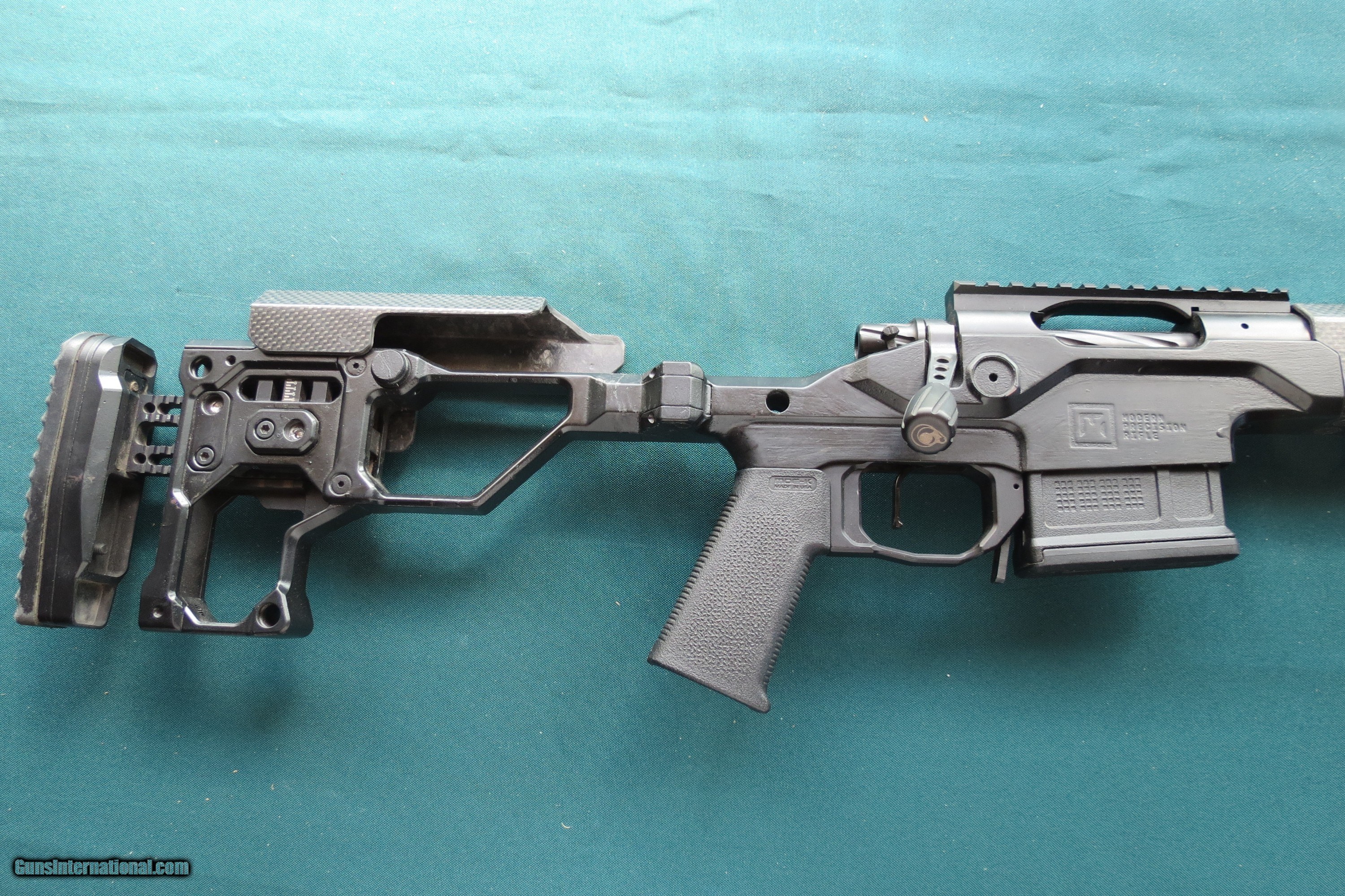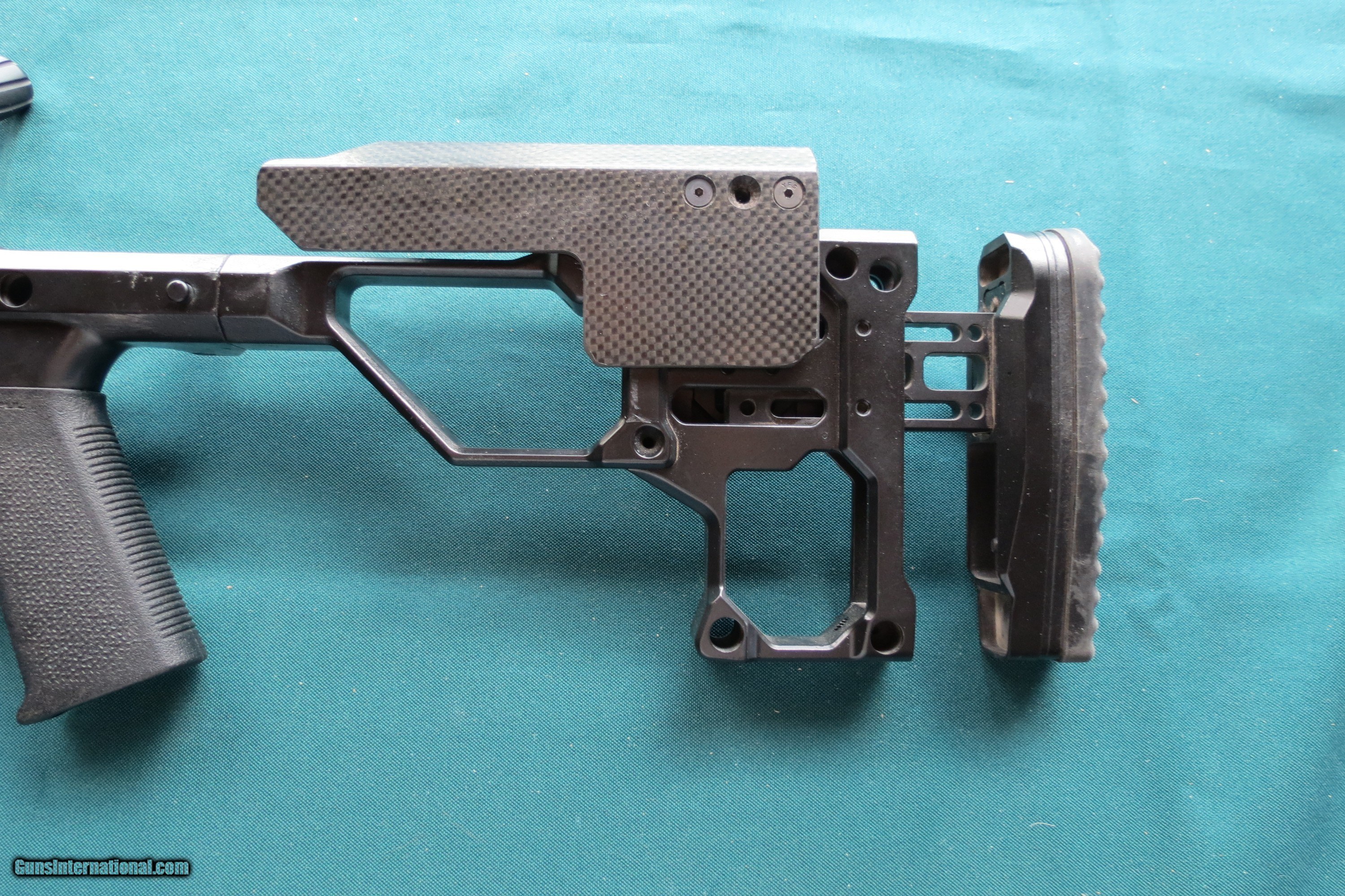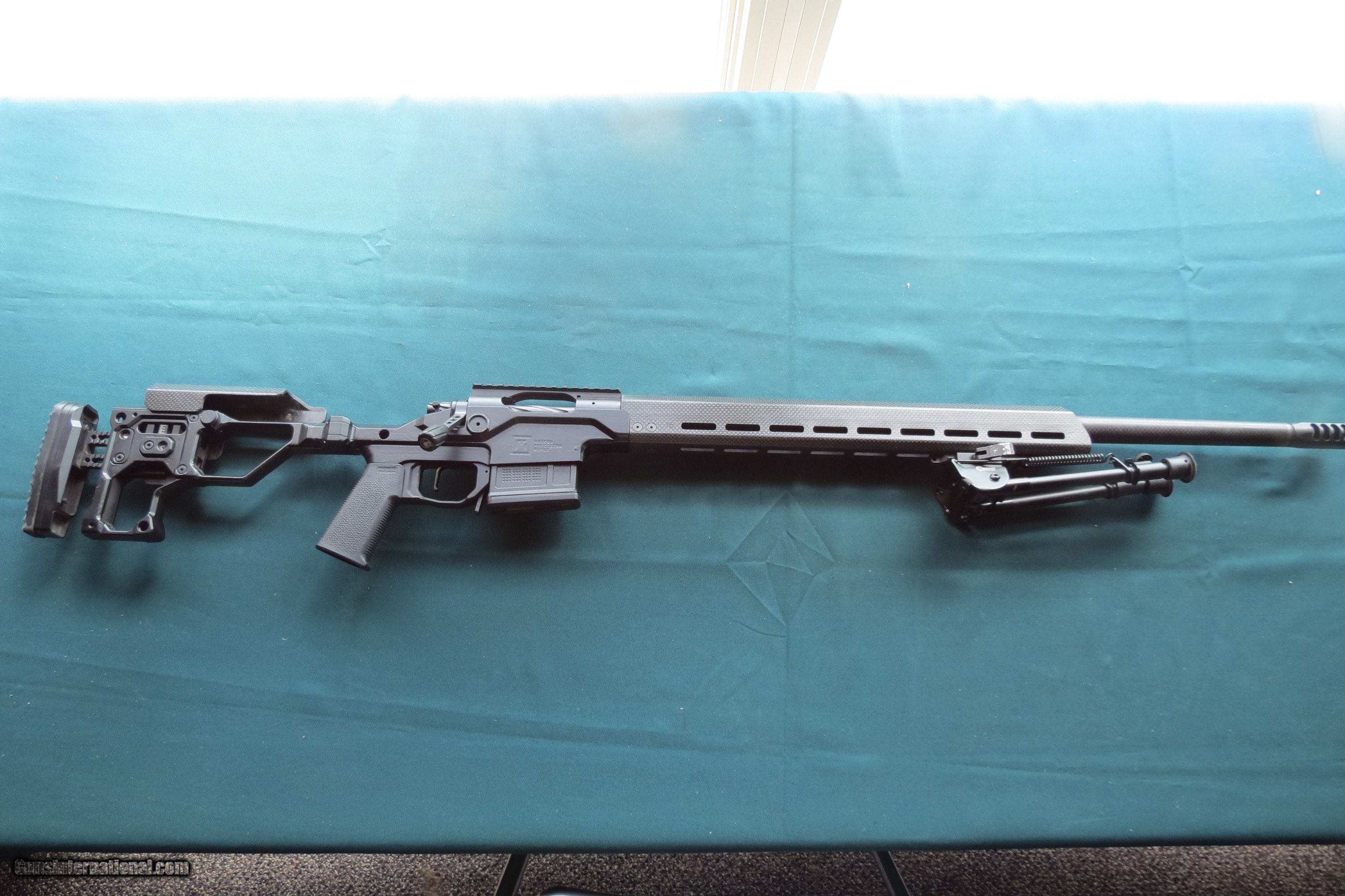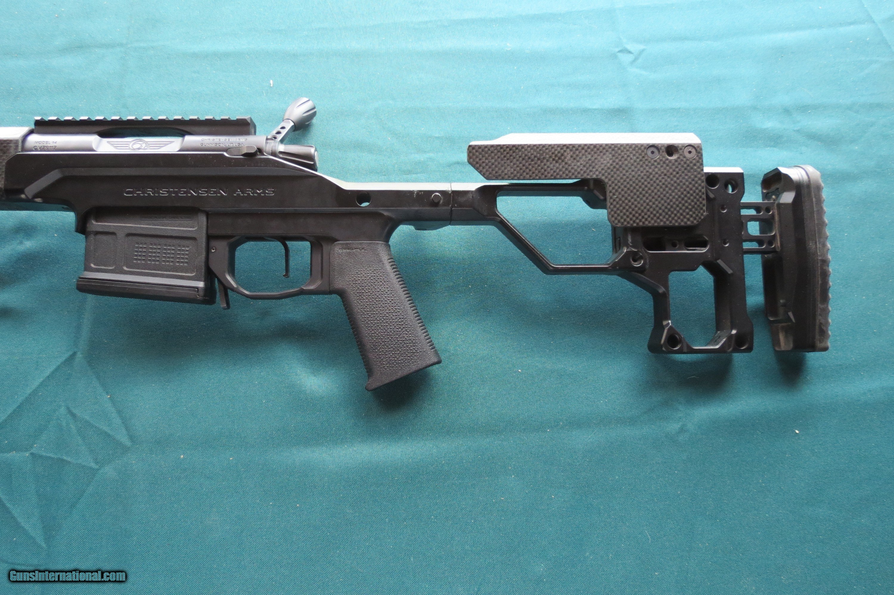 Description: Christensen Arms Model 14 Modern Precision Rifle in 6.5 Creedmoor, 26" barrel, 416R stainless steel carbon fiber wrapped barrel, 1 - AICS compatible detachable mag., tactical mag. release, enlarged ejection port, M16 style extractor, match grade flat trigger, adjsutable carbon fiber cheek riser, adjustable length of pull, standard AR grip, stainless steel receiver, oversized fluted bolt knob, skeletonized bolt handle, billet aluminum chassis, 17" carbon fiber handguard. Rifle shows very well, folding stock is locked in place and does not fold. Cadwell bipod, Ships in hard case. Shipping/insurance $75 SOLD Rifle Caliber: 6.5 Creedmoor Manufacturer: Christensen Arms Model: Model 14 MPR Barrel Length: 26" plus muzzlebrake Condition: Very Good |