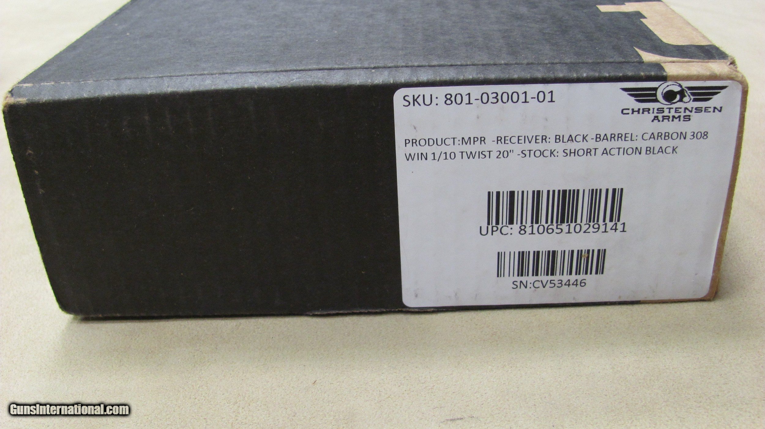 Description: Christensen Arms bolt action rifle Model 14 MPR in .308 Win. caliber. 20 inch carbon fiber barrel with 1/10 twist. The scope is a Vortex Viper 6-24x50. Rifle is in original carton and is in as new condition. SOLD Rifle Caliber: .308 Winchester Manufacturer: Christensen Arms Model: Model 14 MPR Serial Number: CV53446 Barrel Length: 20 Inches Bore: 1/10 Twist Condition: As New Metal Condition: Excellent Bore Condition: Excellent Barrel Type: Carbon Fiber Action: Bolt Action Weight: 9 lbs. 8 oz. w/Scope |