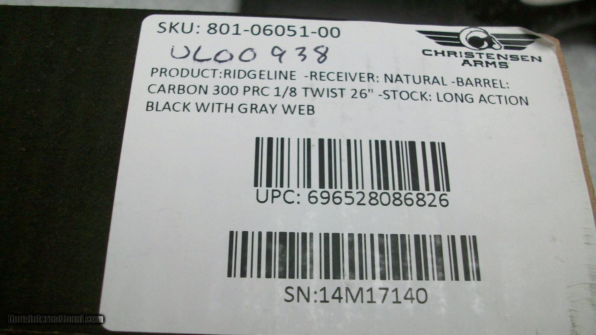 Description: Almost new Christensen Arms Ridgeline 300 PRC. Rifle comes in it's original box and features a 26" carbon fiber barrel with 1:8 twist. I don't see any flaws or blemishes on the rifle, the customer states that he has less than 30 rds. fired so far for the recommended break in. Inludes Warne scope bases. $45 Shipping SOLD Rifle Caliber: .300 PRC |