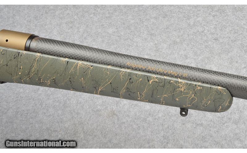 Description: Ridgeline features sporter carbon fiber composite stock and a stainless steel radial muzzle brake built around a light target contour Christensen Arms carbon fiber wrapped barrel. Preowned in excellent condition with factory box .300 Remington Ultra Magnum SOLD Metal Condition: "Burnt Bronze CeraKote Receiver, Nitride Treated Bolt Wood Condition: "Christensen Arms Carbon Fiber Composite, Green with tan and black webbing. Stainless bedding pillars. Bore Condition: 1-10 Twist Barrels: "26 "" Carbon Fiber Wrapped Stainless, Threaded with Muzzle Brake Triggers: Trigger Tech Stock Dimensions: 13 5/8" LOP Butt Pad: Christensen Recoil Pad Weight: 6 lbs. 11 0z. Sights: "No sights, Tapped for Rem 700 compatible bases Item Location: Buda, TX |