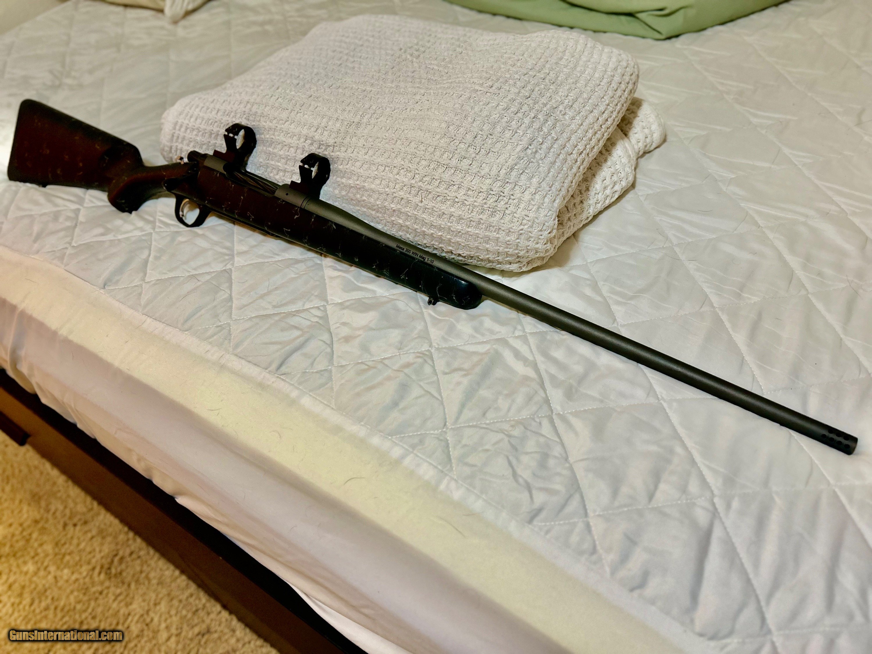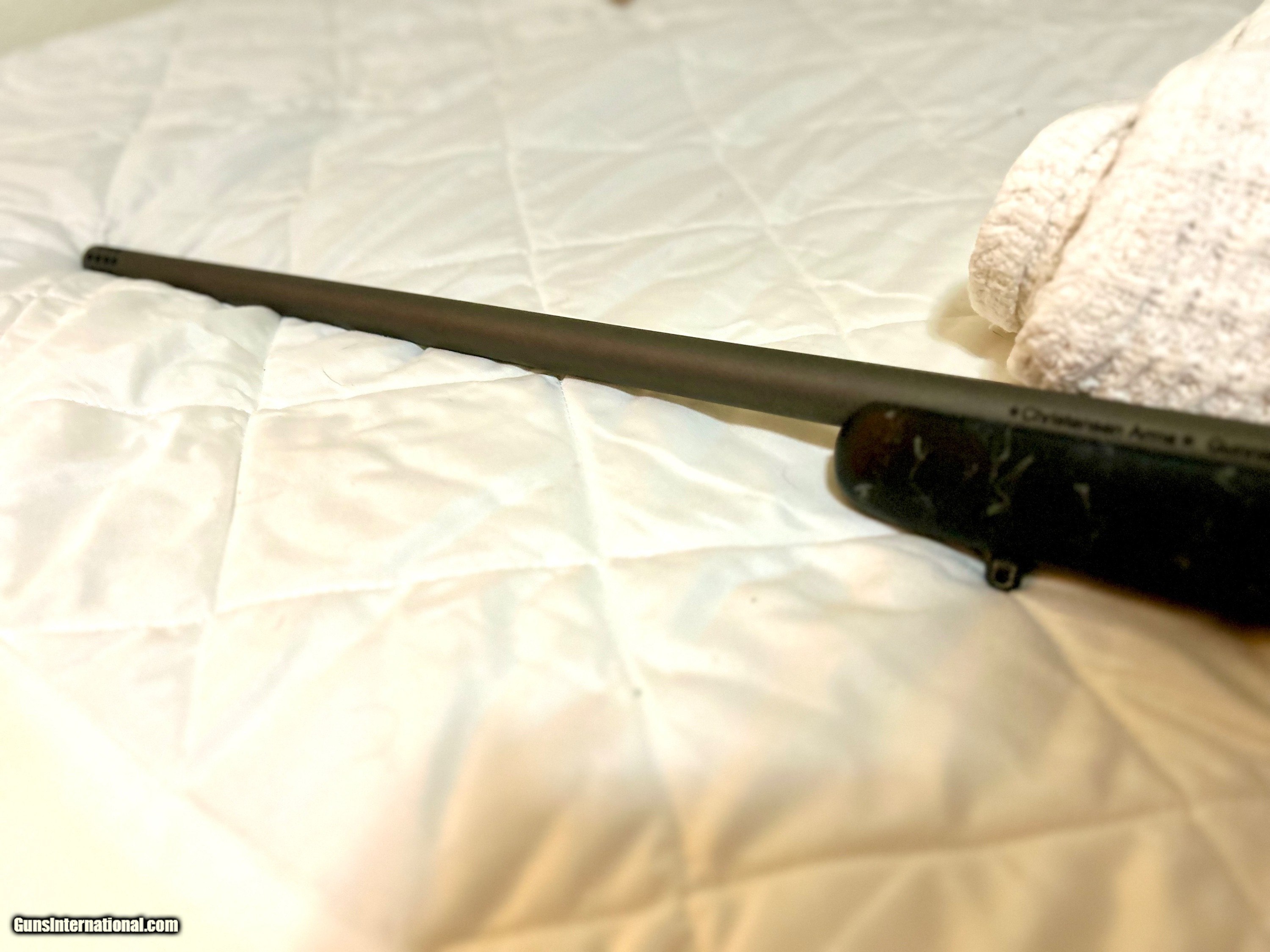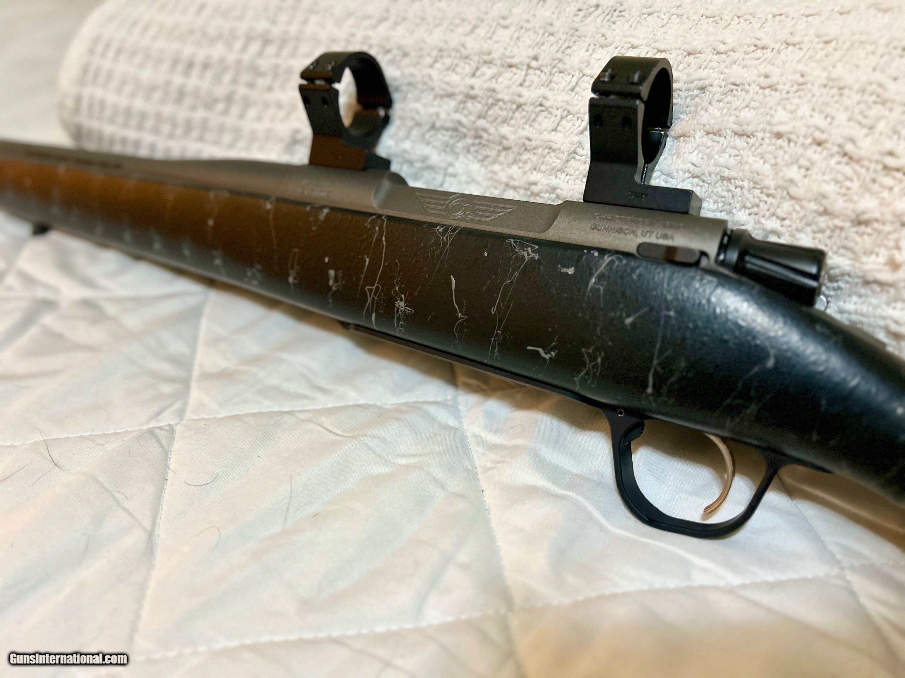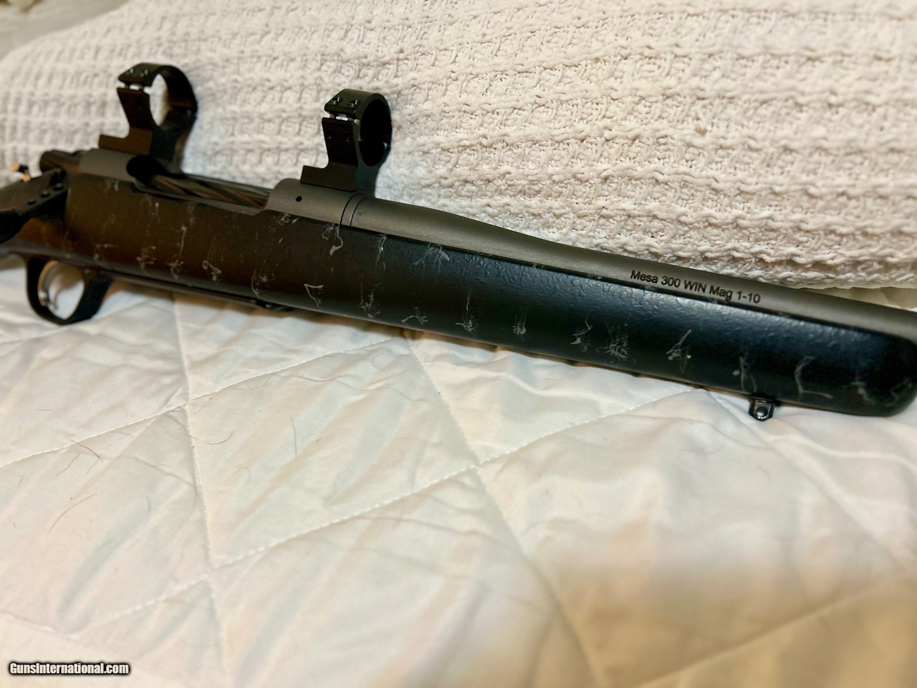 Description: This is a Christensen Mesa in 300WM. All original components. A few small superficial chips in the speckled paint finish on the stock. 24" cerakoted stainless barrel with muzzle brake. Triggertech trigger assembly. Carbon fiber stock. SOLD Rifle Caliber: .300 Winchester Magnum Manufacturer: Christensen Model: Mesa Barrel Length: 24 Action: Bolt |