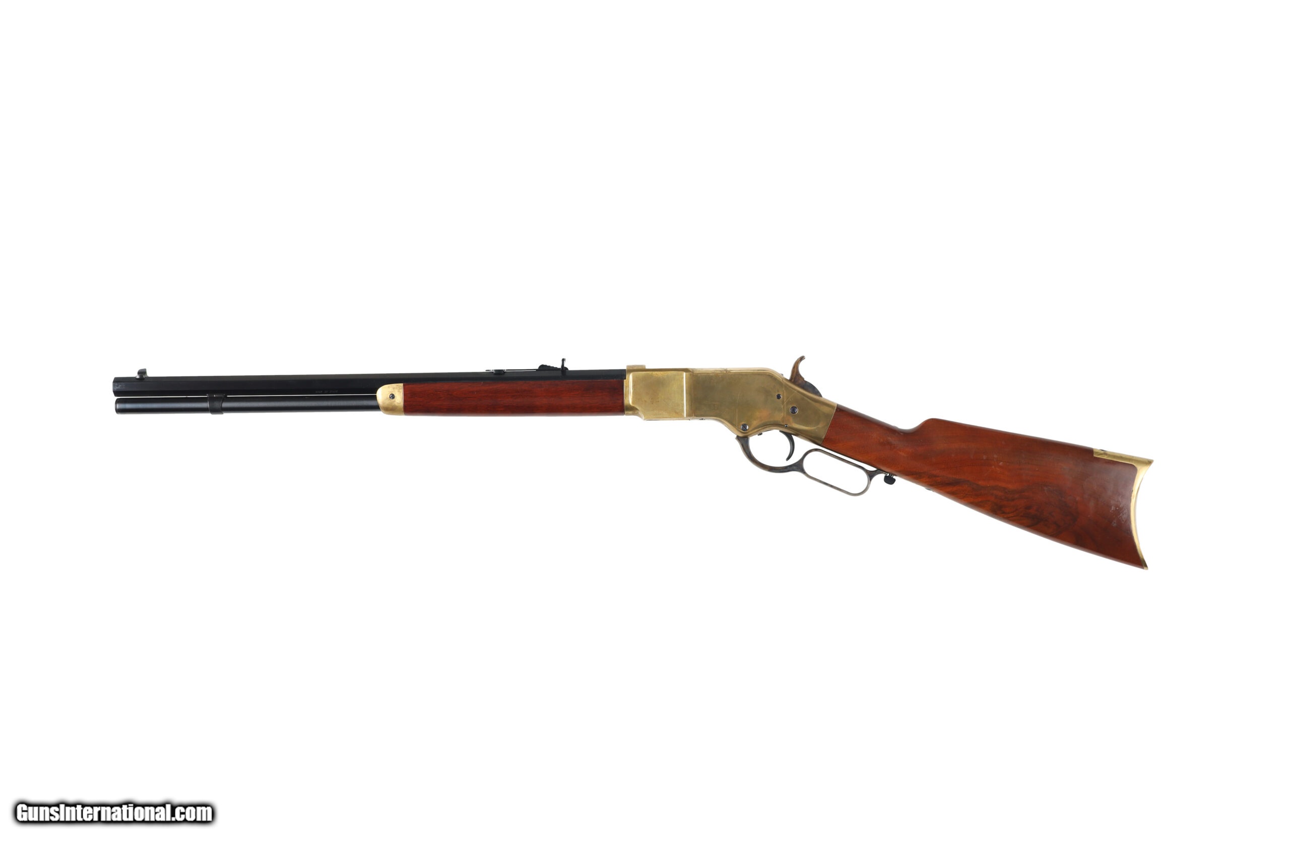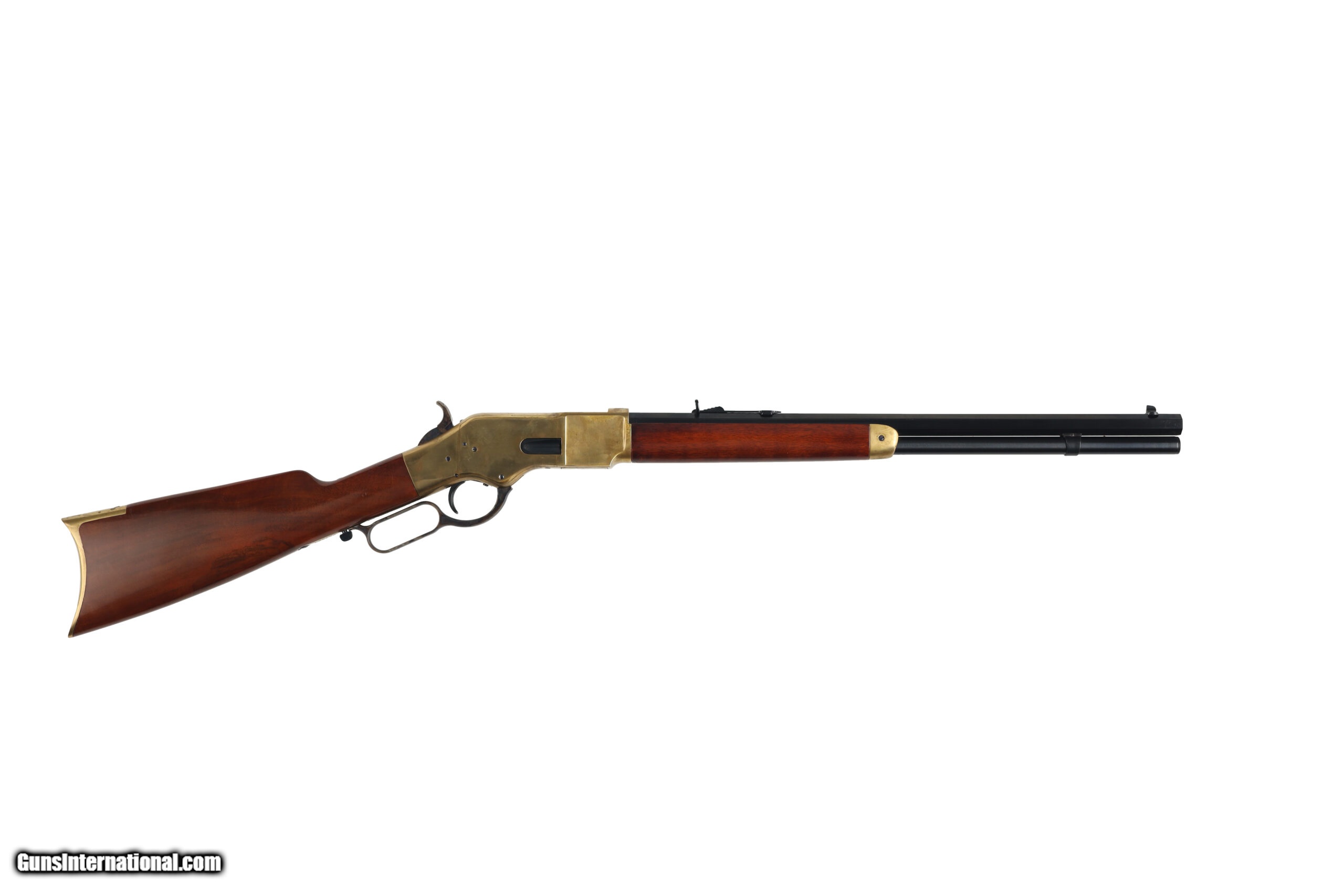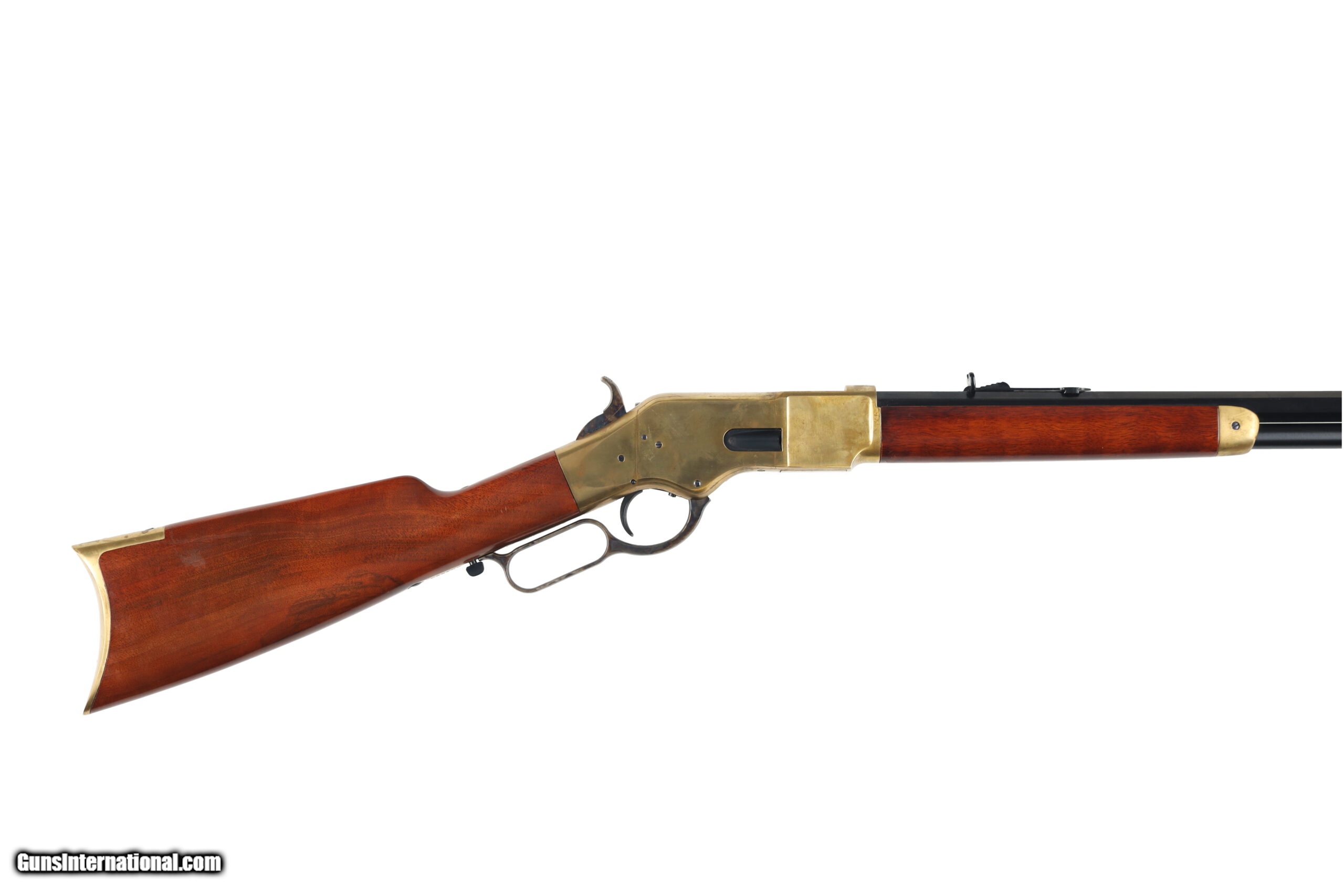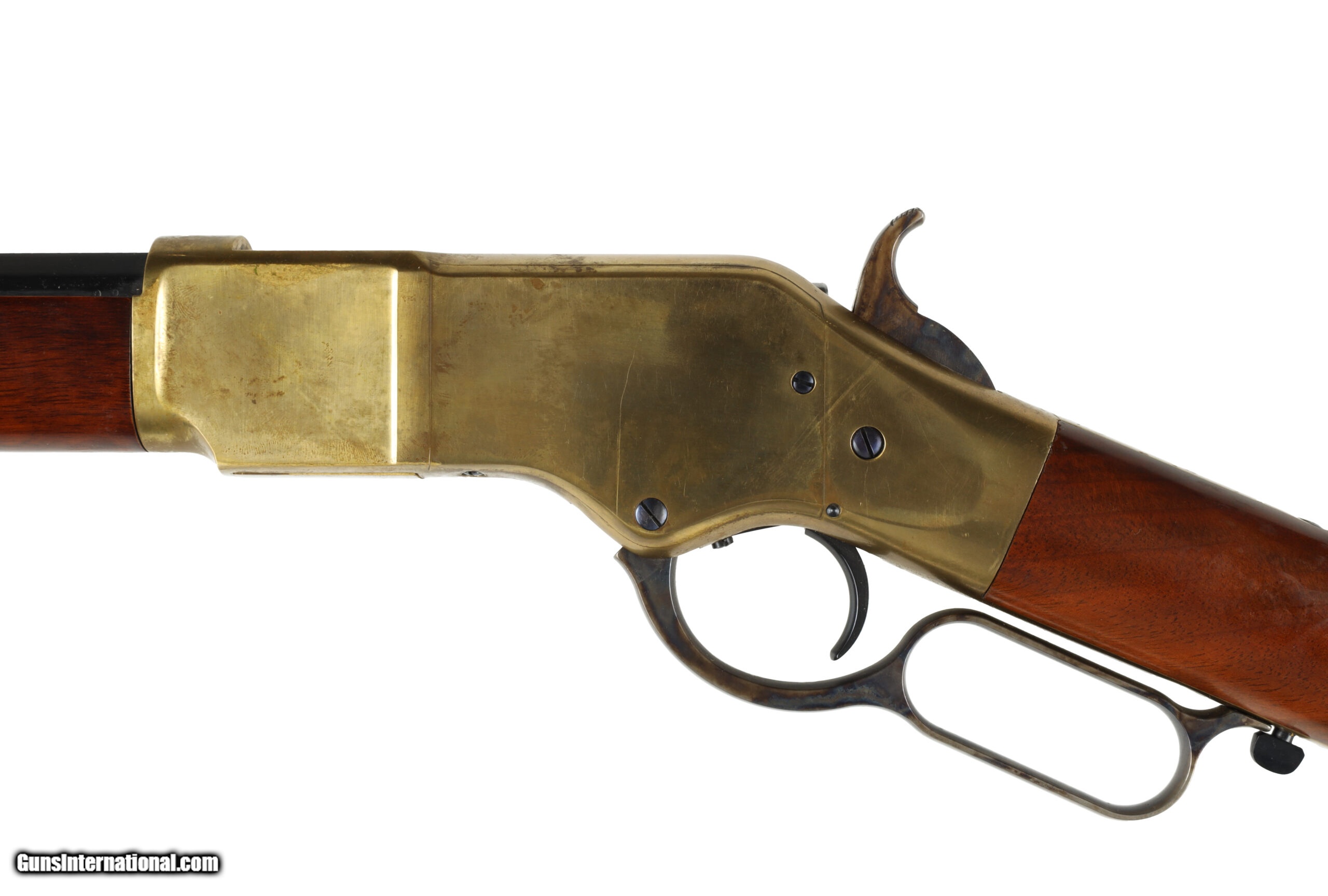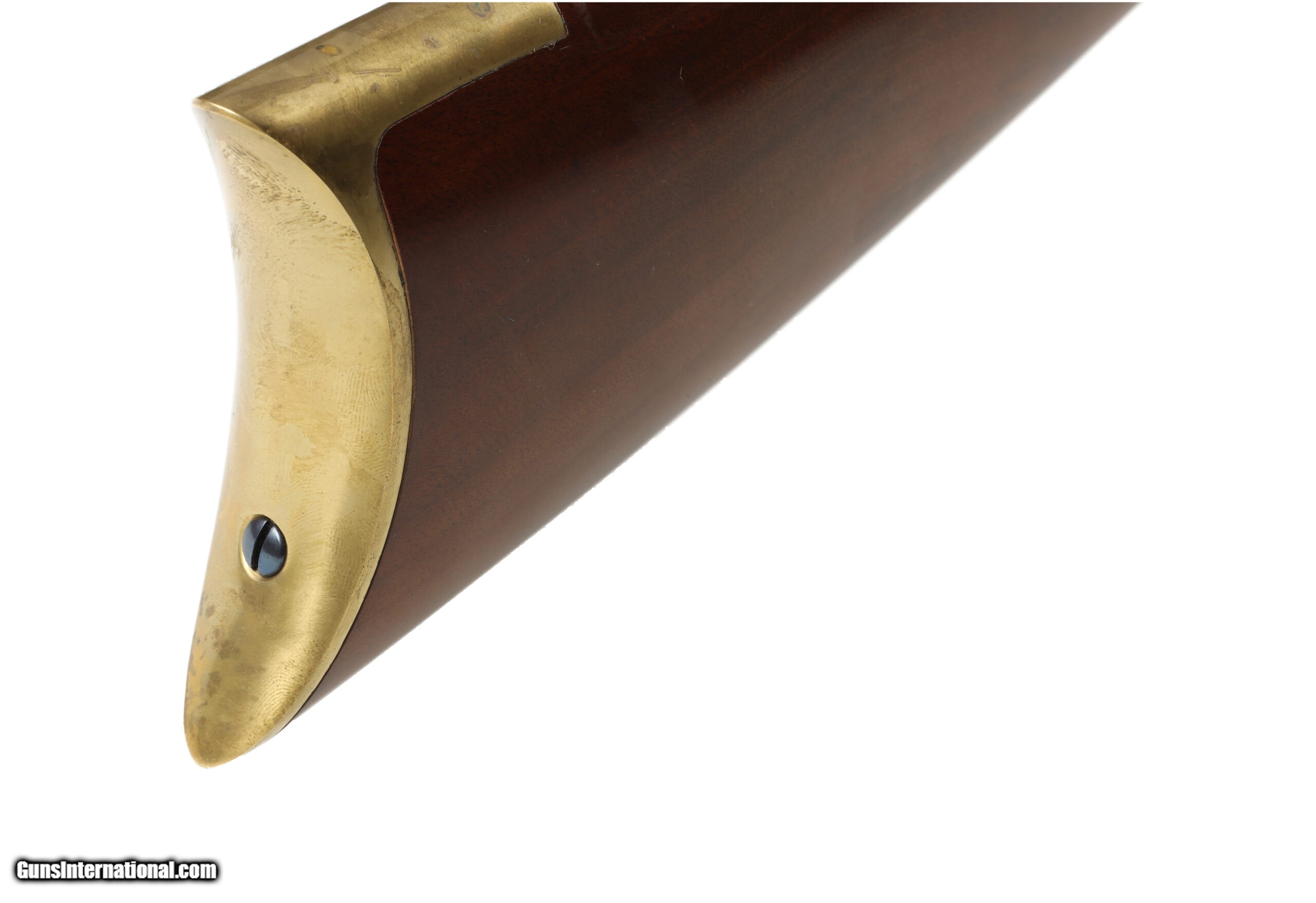 Description: The 1866 Yellow boy was the first lever action rifle to bear the Winchester name and also introduced the Kings patent loading gate. This pre owned Cimarron reproduction of the 1866 carbine is in good overall condition, with only mild wear and tarnishing to its polished brass receiver. Manufactured in: Italy Hand: Right Hand Action Finish: Polished Hardened Brass Metal Finish: Original Barrel Length: 22 Inches Barrel Condition: Very Good Stock Finish: Original Stock Condition: Very Good Type of Butt: Crescent Brass Plate Grip: Straight Grip Forend: Not Checkered Extra Barrels: No. SOLD Manufacturer: Cimarron Model: 1866 Caliber Info: .44 Winchester Center Fire Condition: Preowned Metal Condition: Good Action: Lever Action Triggers: Single Fore End: Not Checkered LOP: 13 1/4 Finish: Original Weight: 7.9 lbs Extras: No. Case: NONE |