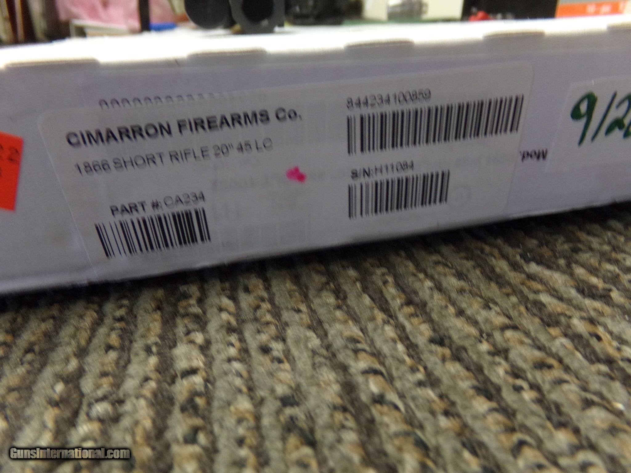 Description: Guns Listing ID: 721345 This gun is as new in the box just previously owned! SOLD Manufacturer: CIMARRON Model: 1866 Caliber Info: .45 LC Condition: Used - Non-Certified Barrels: 2 BARREL |
