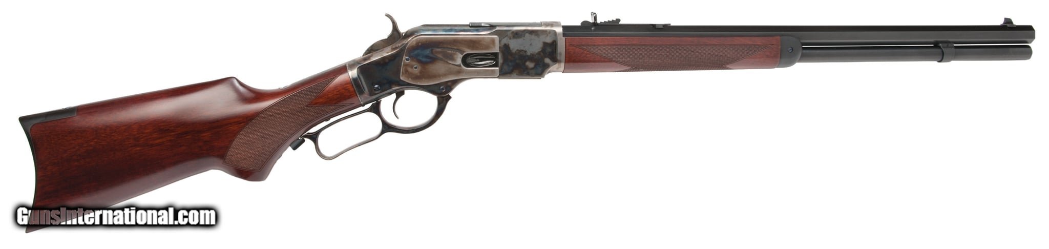 Description: Guns Listing ID: prod283838 A frontier favorite since its debut, this lever-action rifle was produced in a number of variations from short Trapper models and carbines to short and extra-long barreled rifles. A few short SOLD Manufacturer: CIMARRON Model: 1873 DELUX SHORT RIFLE Caliber Info: .45 LC Condition: new Barrels: 20 BARREL Finish: BLUED |