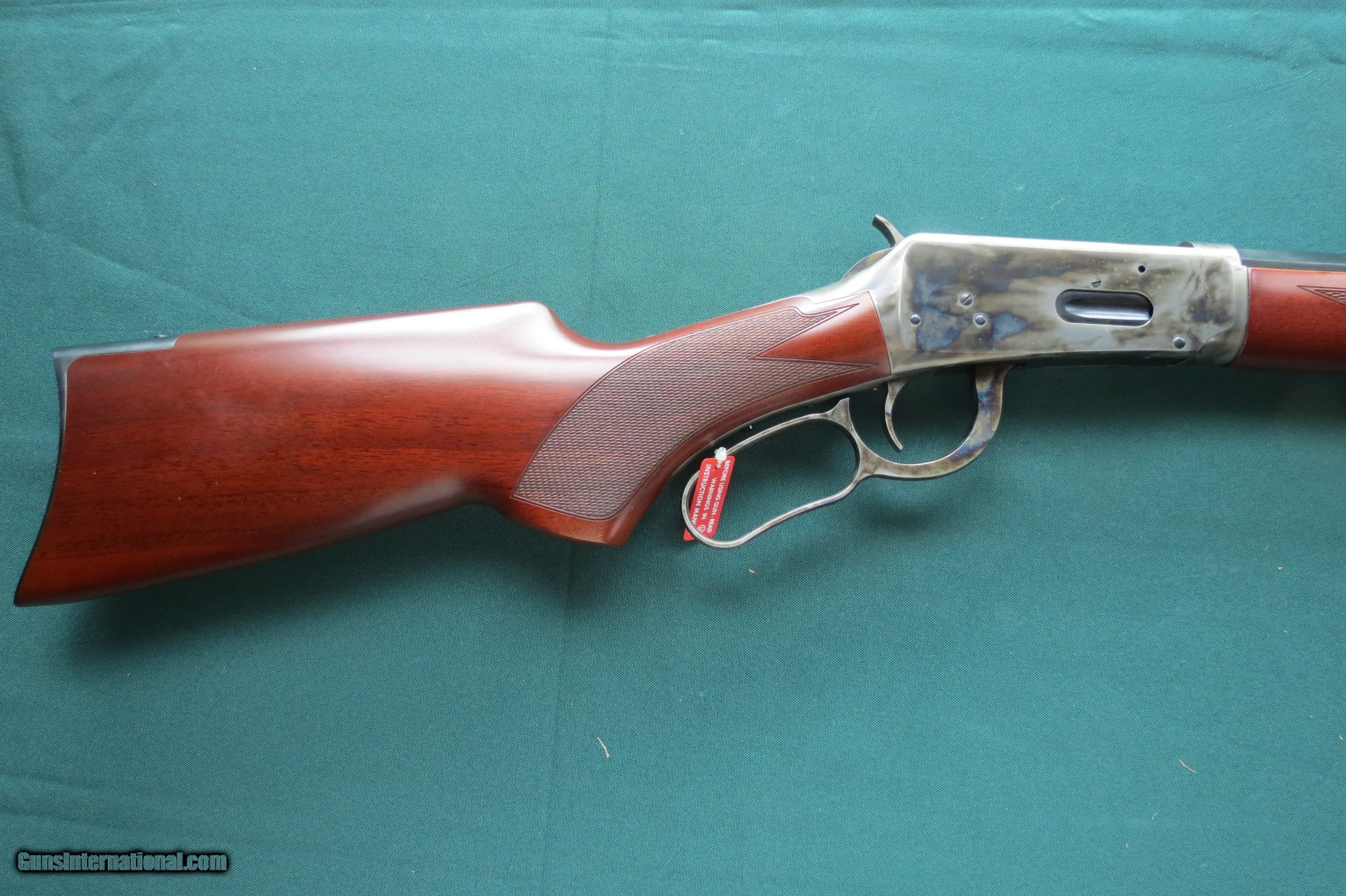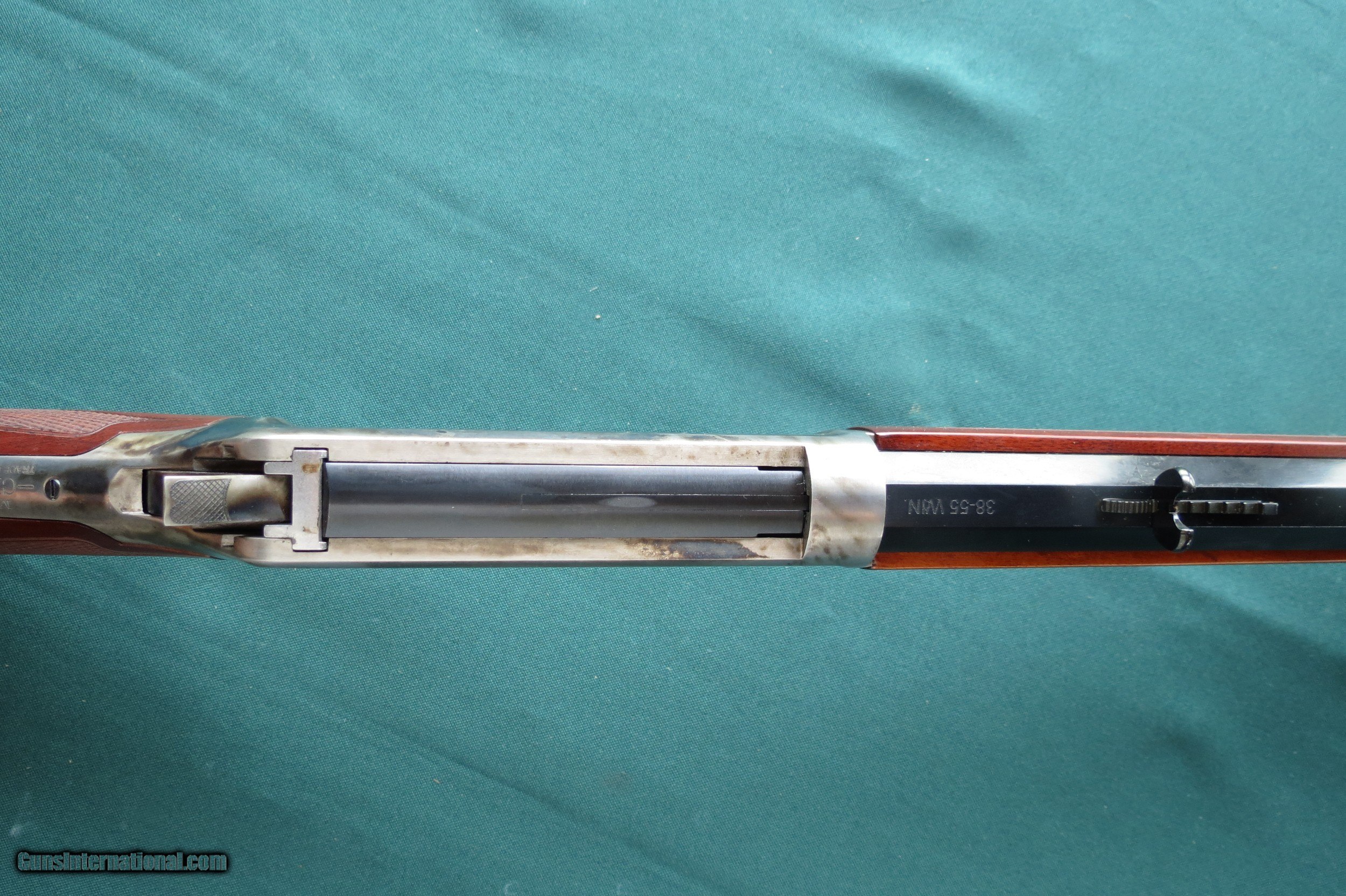 Description: New in Box Cimarron 1894 DLX in 38-55 Winchester, 26" Blued Ocatgon barrel, Pistol Grip Stock, Case Colored/Hardened receiver, 6 round tublar magazine, Cresent Steel Butt Plate, Semi-Buckhorn Rear Sight, Blade Front Sight, 1:12" Rate of Twist, 7.4 pounds. Shipping/Insurance $45 SOLD Rifle Caliber: .38-55 Winchester Manufacturer: Cimarron Model: 1894 DLX Barrel Length: 26 Condition: New in Box |