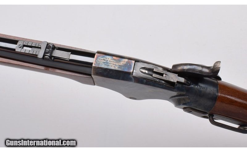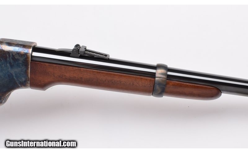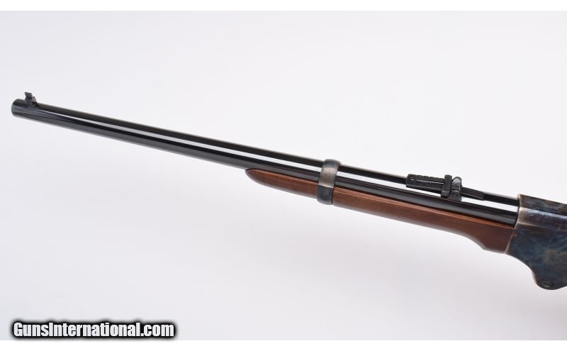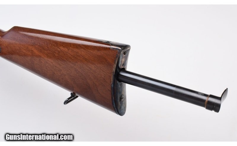 Description: Modern reproduction from Armi Sport and Cimarron is faithful to the original. Seven shot repeating rifle fed from a magazine in the butt stock. This rifle has a 22" barrel, color case hardened receiver and walnut stock. Very clean pre-owned rifle shows few minimal handling imperfections. .45 Colt SOLD Metal Condition: "Polished Blue, Case Hardened Wood Condition: Walnut Bore Condition: Bright / Sharp Barrels: 20 inch Butt Pad: Case colored steel Weight: 8 lbs 4 oz Sights: "Folding Ladder Rear Sight, Post Front Item Location: Buda, TX |