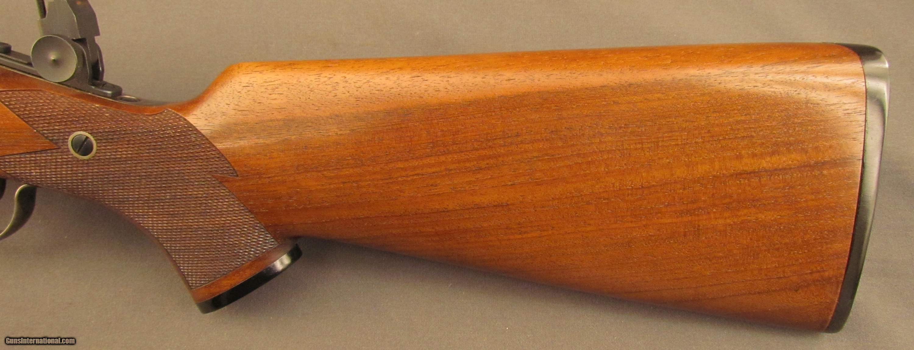 Description: Serial #SH9769, .45-70, 34" heavy barrel with an excellent, bright bore. This is a truly handsome rifle that is in almost unused condition with practically all of the original blue remaining on the barrel, and a commensurate amount of original bright color case-hardening on the frame. The rifle features a spirit level globe front sight, flip-up vernier rear sight, gold inlay USA Shooting logo on the right side of the frame, and double-set triggers (please note: the trigger must be set in order to cock the rifle). The checkered walnut forend and pistol grip buttstock are likewise in excellent condition with hardly any more than a few negligible handling marks and small blemishes visible. The rifle is housed in a green canvas travel case with bright green baize lining and comes complete with two bullet mold tongs, a set of .45 caliber mold blocks, and a bore cleaning hosepipe. These are well-made modern Sharps rifles and would make a splendid addition to a collection or as a long-range target rifle. Also included is a large folder of documentation regarding the purchase of this particular rifle, as well as loading data for a selection of .45-70 handloads. This is an excellent Modern Sharps overall. FFL SOLD Manufacturer: Cimarron Model: Sharps Serial Number: SH9769 Caliber Info: .45-70 Gauge Info: .45-70 |