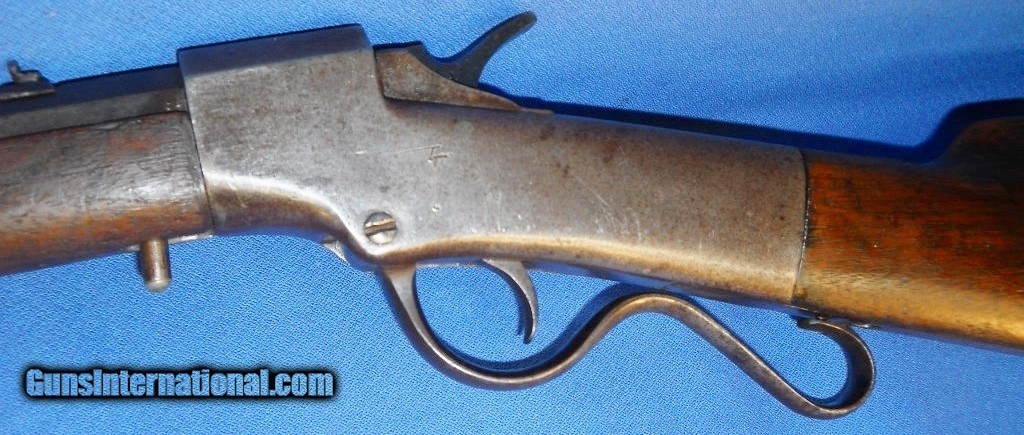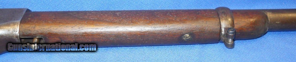 Description: EARLY "BALLARD PATENT" CARBINE BY "BALL & WILLIAMS" WITH "MERWIN & BRAY AGTS." MARKINGS. SERIAL 617 MATCHING NUMBERS WITH MATCHING ASSEMBLY NUMBERS, MFG. 1863. 22" PART ROUND PART OCTAGON BARREL WITH MOSTLY LEGIBLE FACTORY MARKINGS AS ABOVE. STRONG BORE ACTUALLY VERY GOOD FOR A GUN OF THIS AGE (PIC #17) CALIBER .44 RIMFIRE. METAL SURFACES HAVE TONED TO A PEWTER & BROWNISH PATINA WITH SCATTERED STAINS ESPECIALLY ON BUTT PLATE, SOME VISIBLE CASE COLORS ON PROTECTED AREAS OF THE ACTION WITH STRONG FIRE BLUE ON HAMMER. WALNUT STOCKS RATE VERY GOOD SHOWING MARS & DINGS. SLING SWIVELS ARE NO LONGER IN PLACE. ACTION IS CRISP & TIGHT WITH WORKING EXTRACTOR. A REAL SOLID SCARCE EARLY CARBINE, AS PICTURED. "NO FLUFF, JUST FAIRLY PRICED STUFF" SEE FLADERMANS 5D-082 or THE INTERNET FOR MORE INFORMATION ABOUT THESE EARLY CIVIL WAR ERA CARBINES. SHIPS DIRECT TO U.S.BUYER ANYWHERE THAT'S OK. $45.00 AK & HI $55.00 INCLUDES $500.00 INSURANCE. INTERNATIONAL S&H ADDITIONAL COST. USUALLY ABOUT $95.00 DEPENDING ON LOCATION. SOLD Antique: Yes Manufacturer: BALL & WILLIAMS Model: BALLARDS PATENT Serial Number: 617 Caliber Info: .44 RIMFIRE |