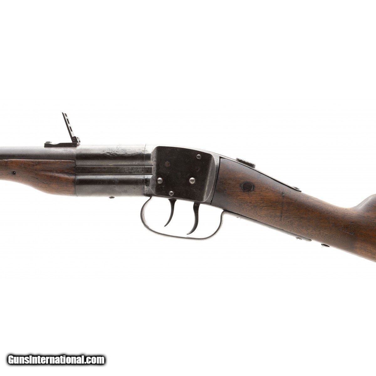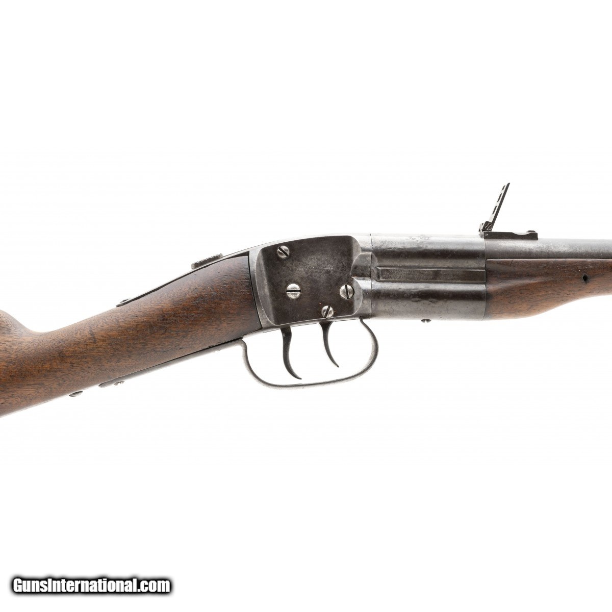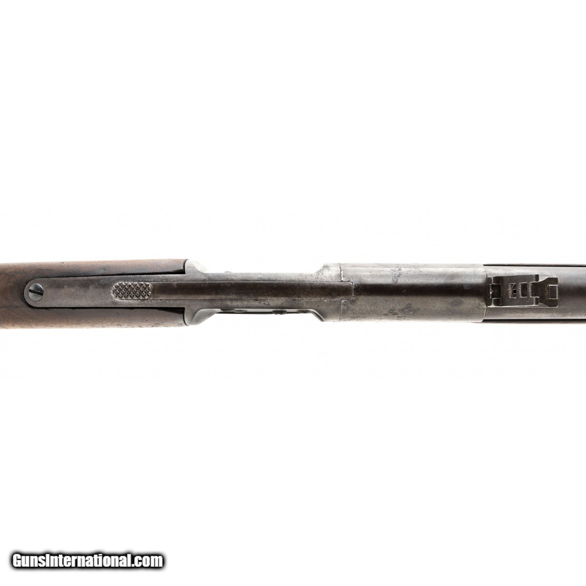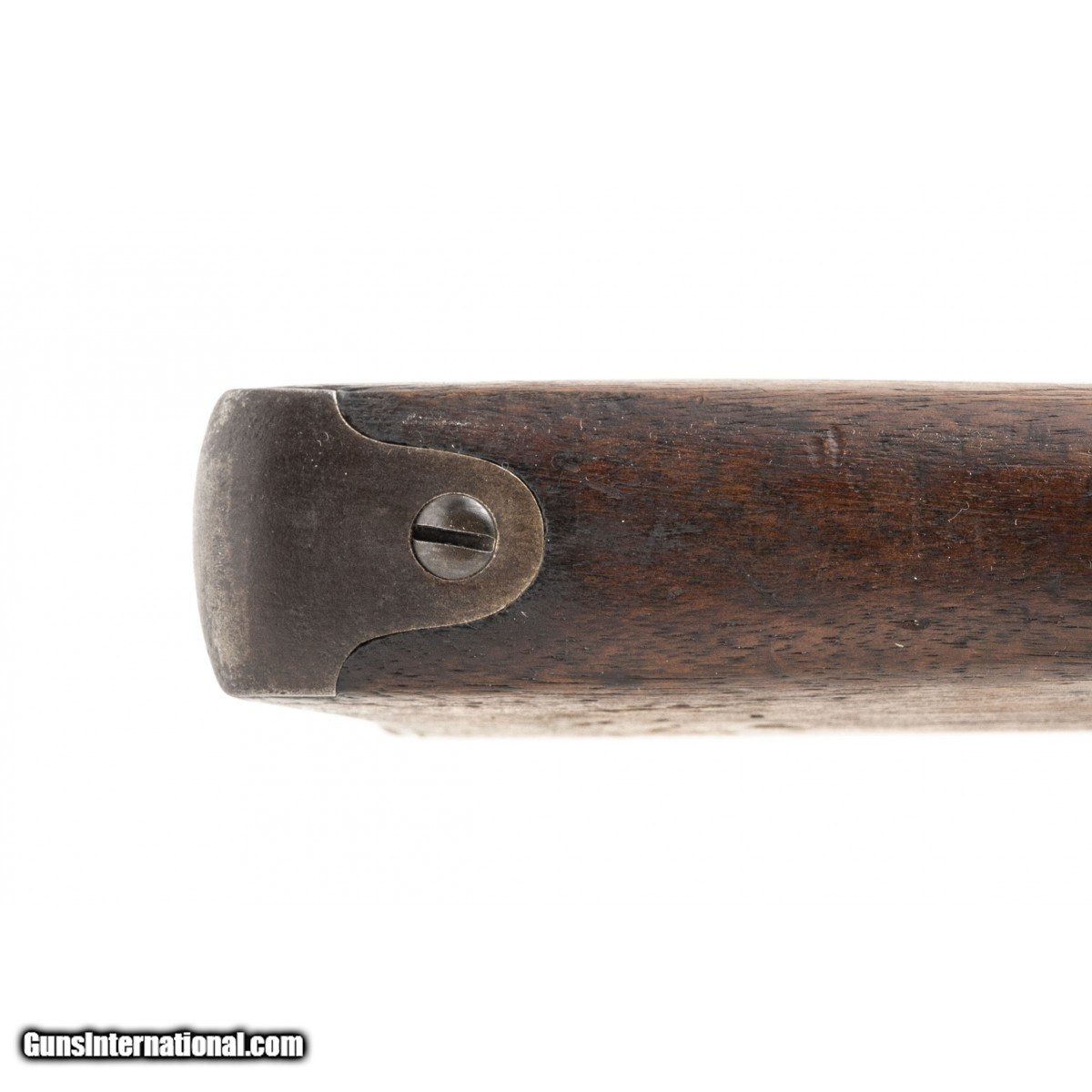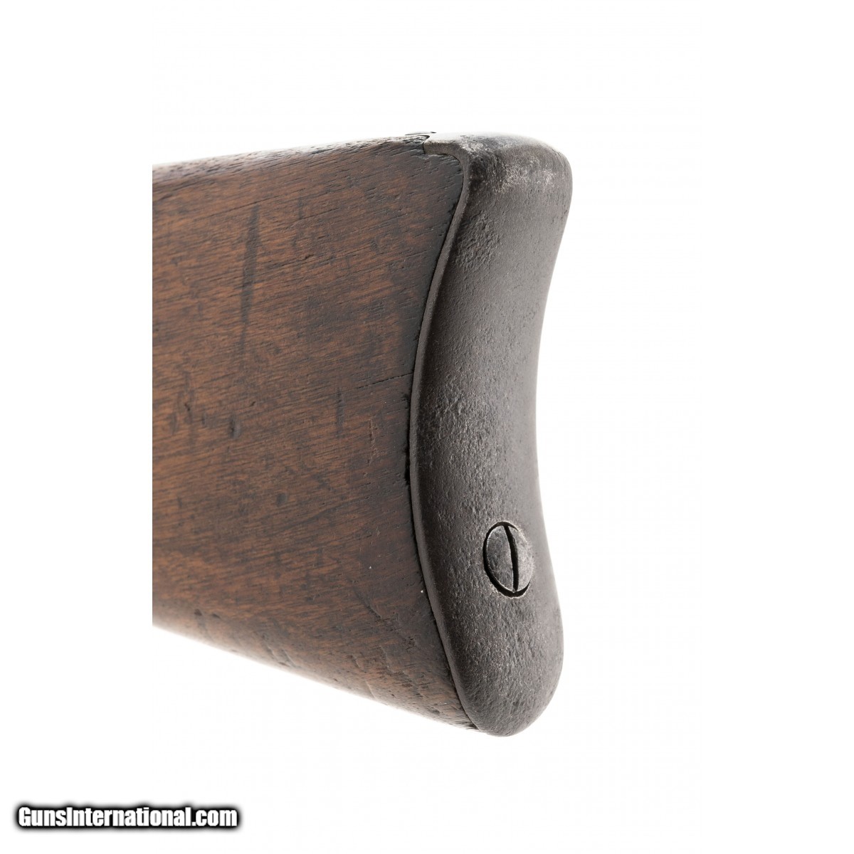 Description: " This pivit breech carbine is marked W. Johnston patent 1862 and A.H. Rowe patent 1864 (no, 42,227). It was manufactured by William Muir & Co. of Windsor Locks, CT, and is dated 1864 on the frame of the pivoting barrel section. There is an element of mystery to this carbine, as there were patents for three different carbines that closely resembled each other. The first was assigned to a William Johnston in May 1862, the second was issued nearly two years later and assigned to A.H. Rowe in April 1864, and eight months later the third patent was issued to Johnston in December 1864. This type of carbine was submitted to the Military Tralis Board (the Laidley Board) in 1865. The patent holders probably had Muir manufacture several carbines but due to their being rejected for further testing, it is believed that very few of these carbines were produced. This carbine has a 22"" round barrel chambered in .44 rim fire complete with a short military carbine ladder sight and blade front sight. The bore is very good with strong three-groove rifling and moderate firing erosion. The metal has an even blue-brown patina. The trigger guard has light to moderate pitting. The two-piece walnut stock and forearm complete with pewter forearm cap and military buttplate are good with handling marks throughout and a crosspin-repaired crack at the wrist. The action operation is unusual in that the pivoting breech is released by depressing a thumb piece on top of the wrist. The rear trigger cocks the action (very heavy pull) and the front trigger fires it. If you collect early breech-loading carbines or trials carbines this rare Johnston-Rowe carbine fits the bill. SOLD Antique: Yes |