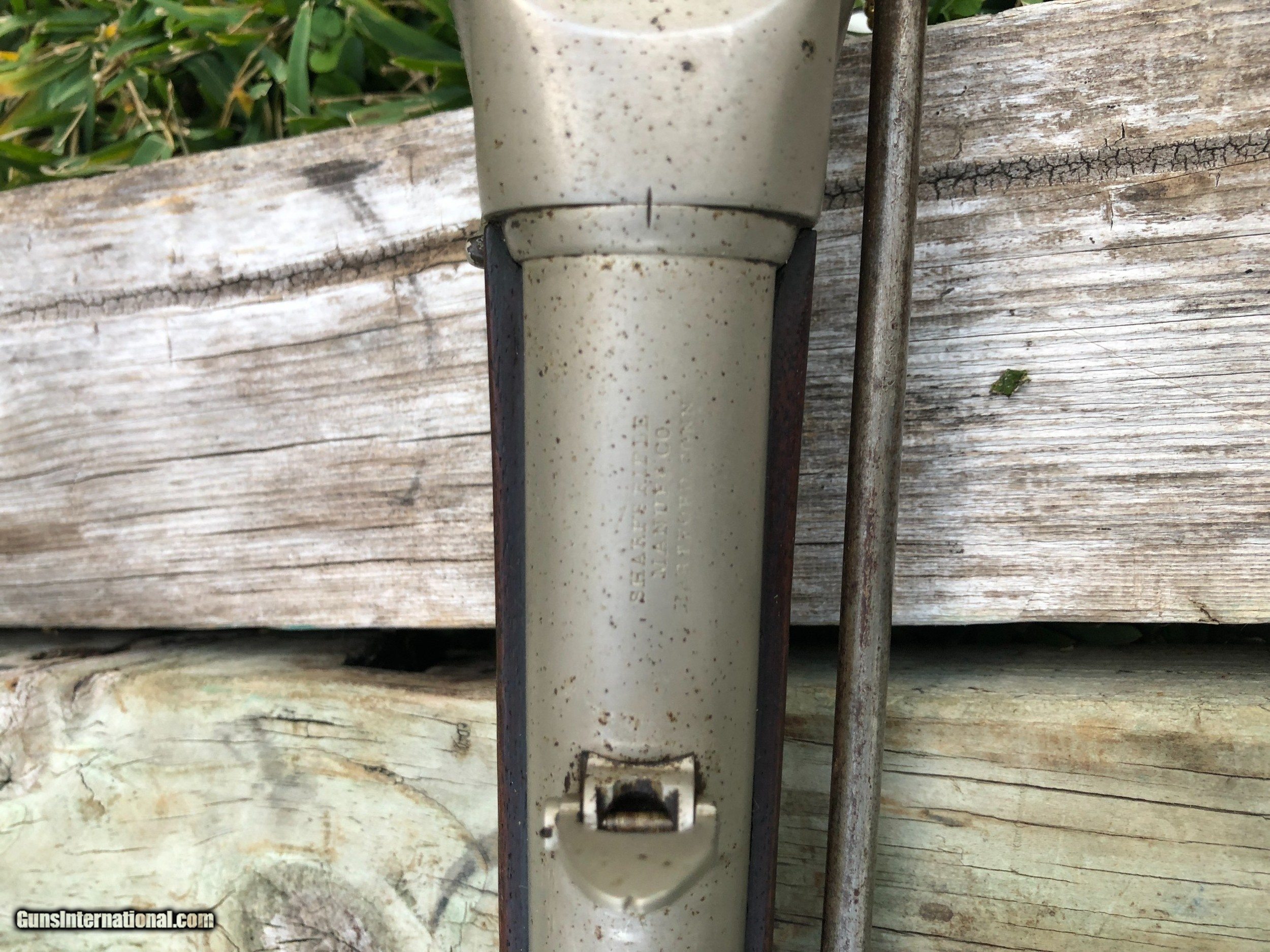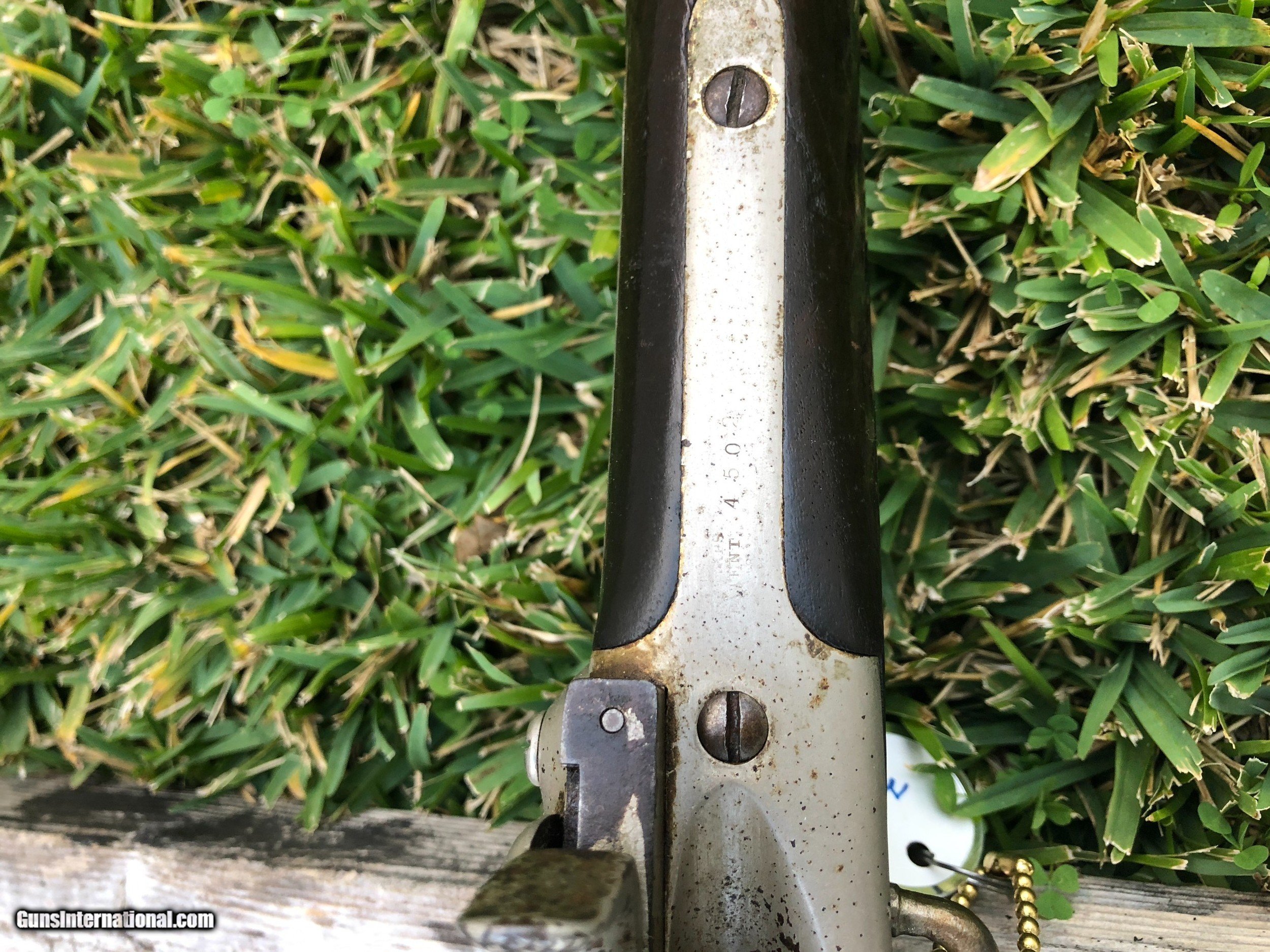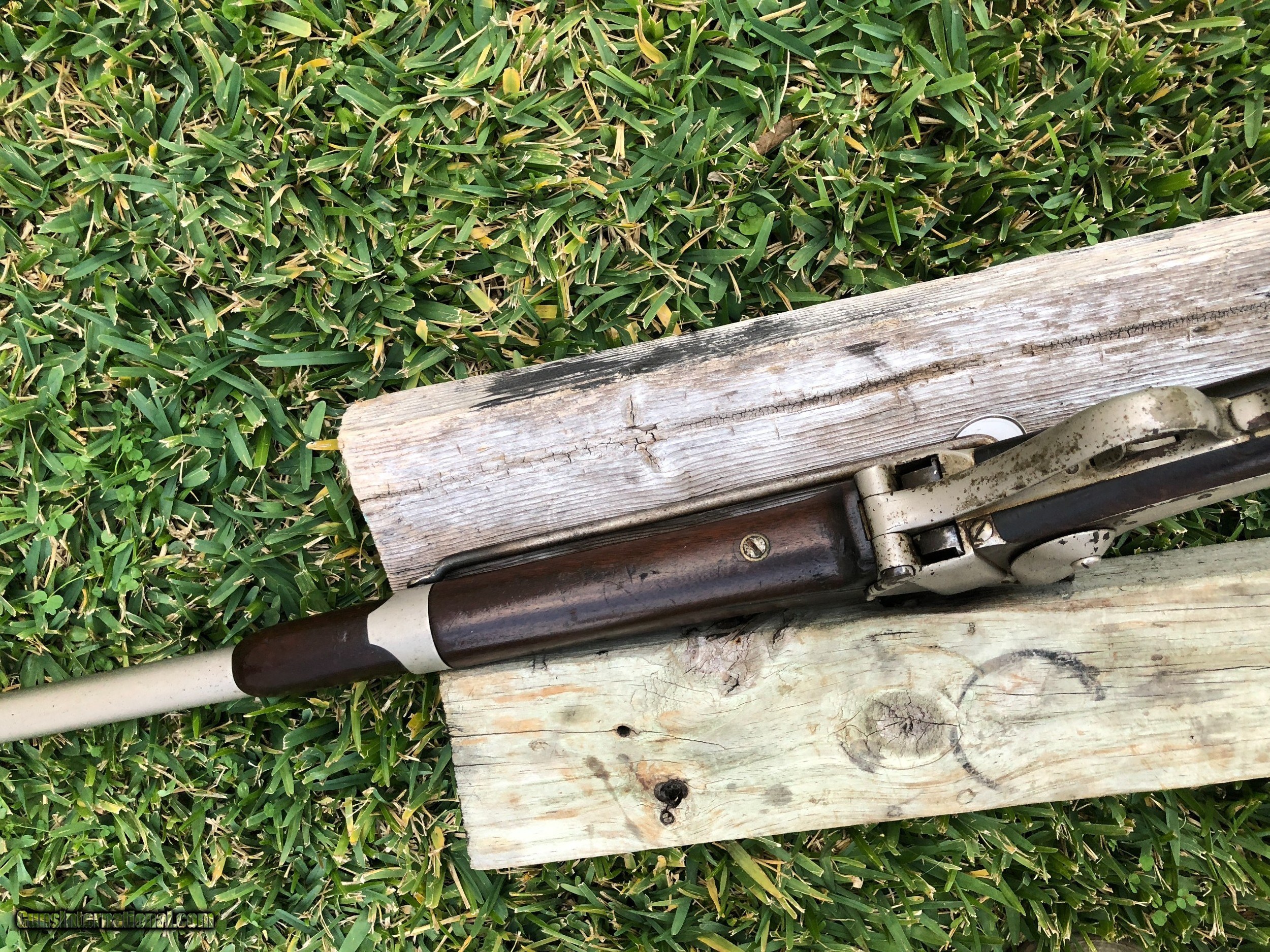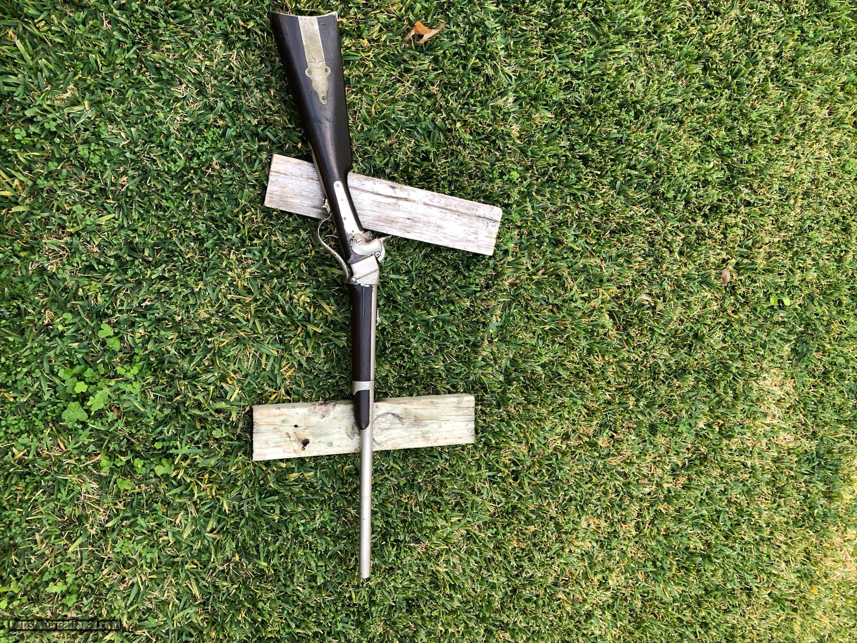 Description: This is a very good 1852 Sharps carbine caliber .52 with matching serial numbers on breech, barrel and breech block. Nice wood missing a chip at the toe of the stock. Fine bore and really good markings. The tinned finish could be removed by a compenet gunsmith. Mechanically excellent and Free Shipping. SOLD Antique: Yes |