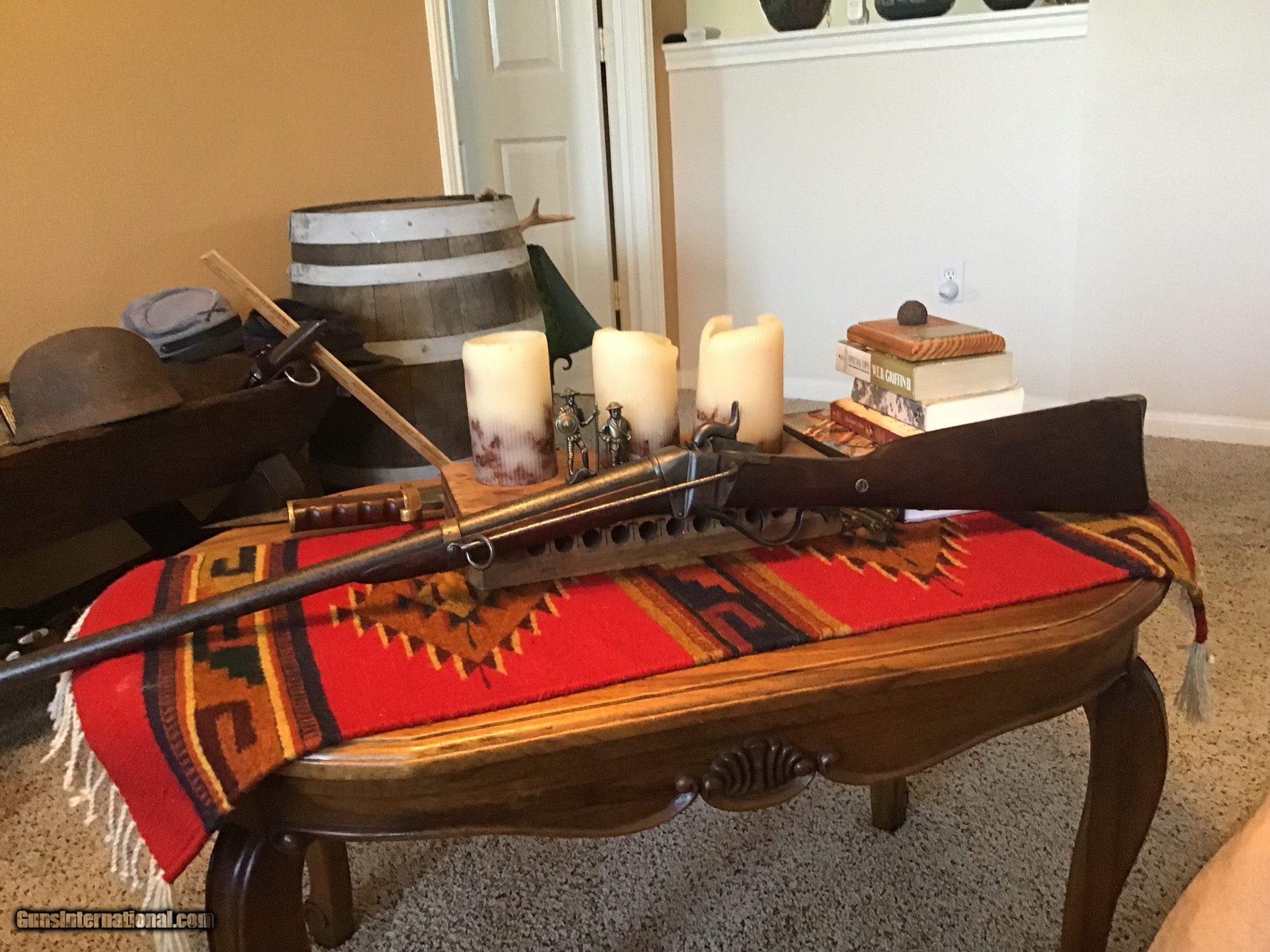 Description: SOLD Good condition 1853 Sharps Carbine in original 1853 condition. These Carbines are rare and hard to get. Wood is nice with no structural cracks. Lots of saddle wear. Look at the pictures. Has normal wear for an antique pre Civil War Carbine. Nice untouched patina on the metal and brass. This one could have been used out west and plenty were used in the Civil War where both sides were scrambling to arm themselves with everything they could get their hands on. Action is tight. Bore has rifling but is dirty. Matching serial number on the top of the tang and on the barrel under the hand guard. Overall very nice Sharps for the condition and the price! Thanks for looking! SOLD Antique: Yes |