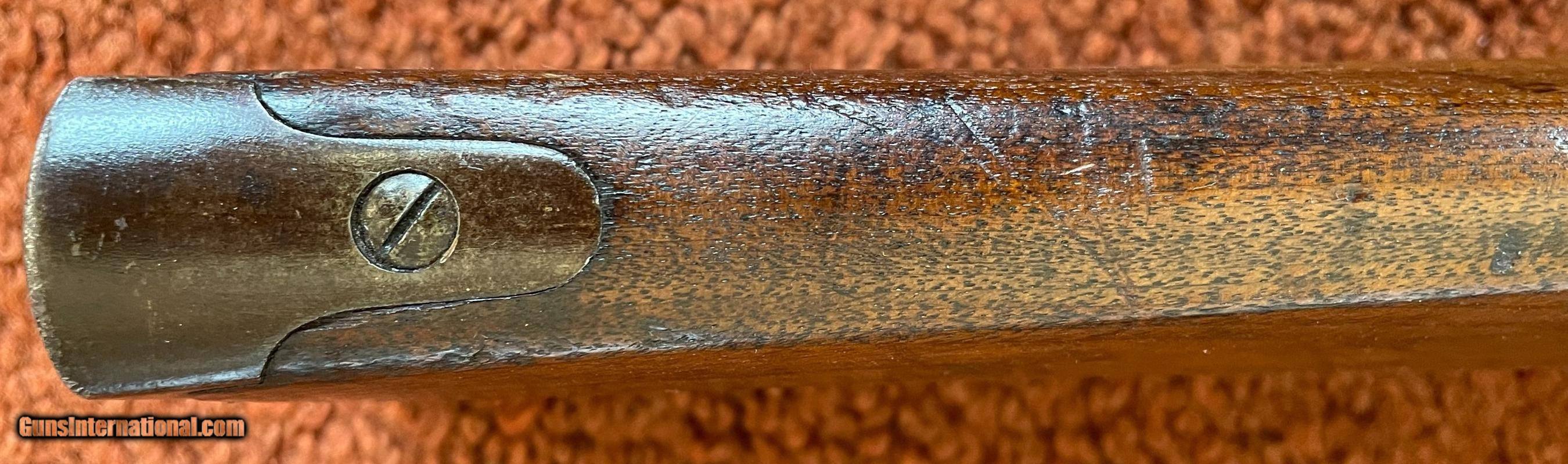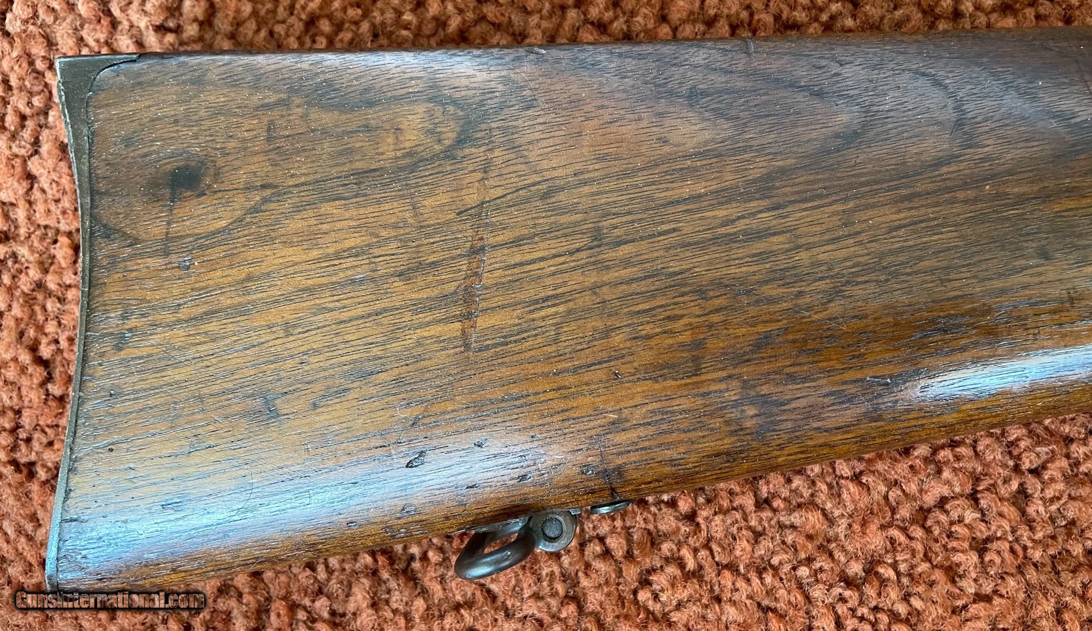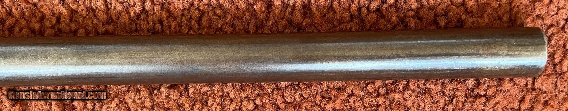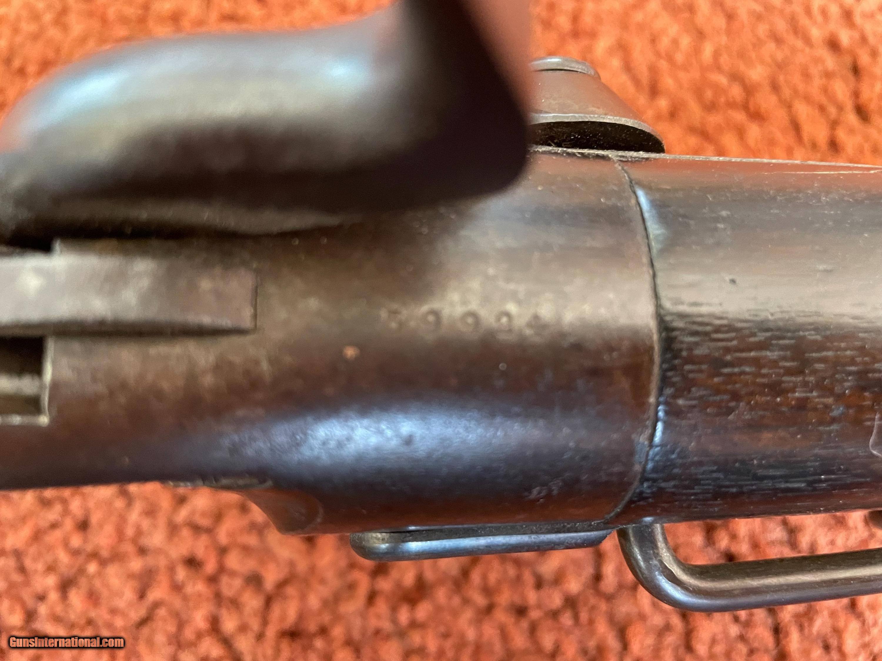Description: The action works perfectly and the bore has some minor rough areas. There is a filled hole in fore arm where there was once a sling swivel. See photos for condition. SOLD Antique: Yes Manufacturer: Spencer Model: 1860 Serial Number: 59924 Barrel Length: 22 |