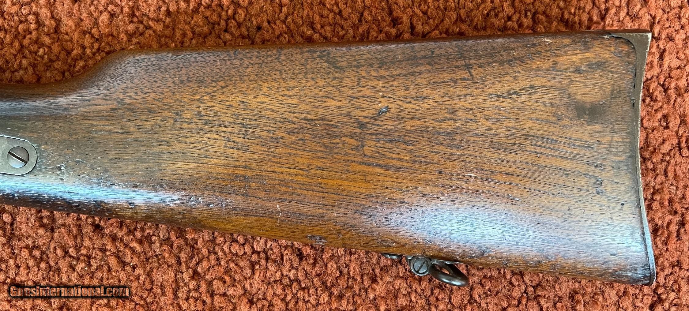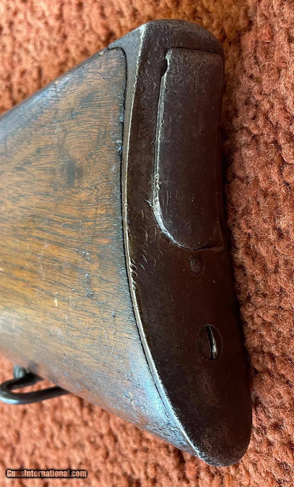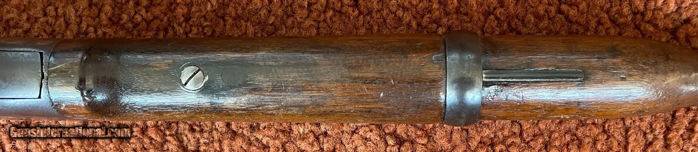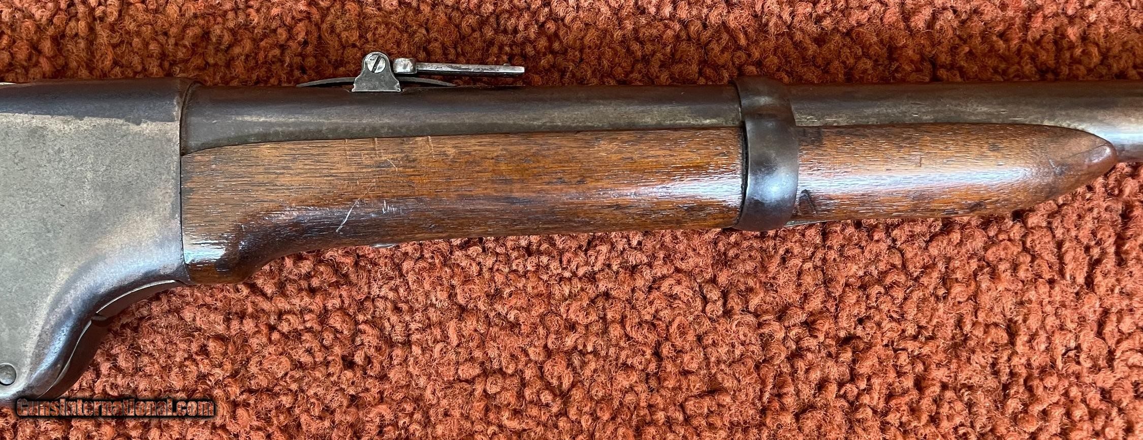Description: The action works perfectly and the bore has some minor rough areas. There is a filled hole in fore arm where there was once a sling swivel. See photos for condition. SOLD Antique: Yes Manufacturer: Spencer Model: 1860 Serial Number: 59924 Barrel Length: 22 |