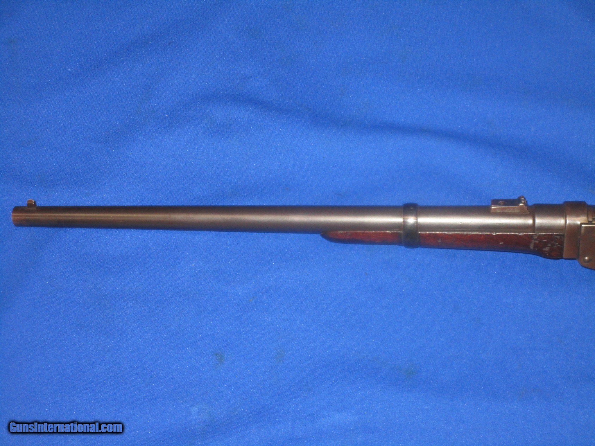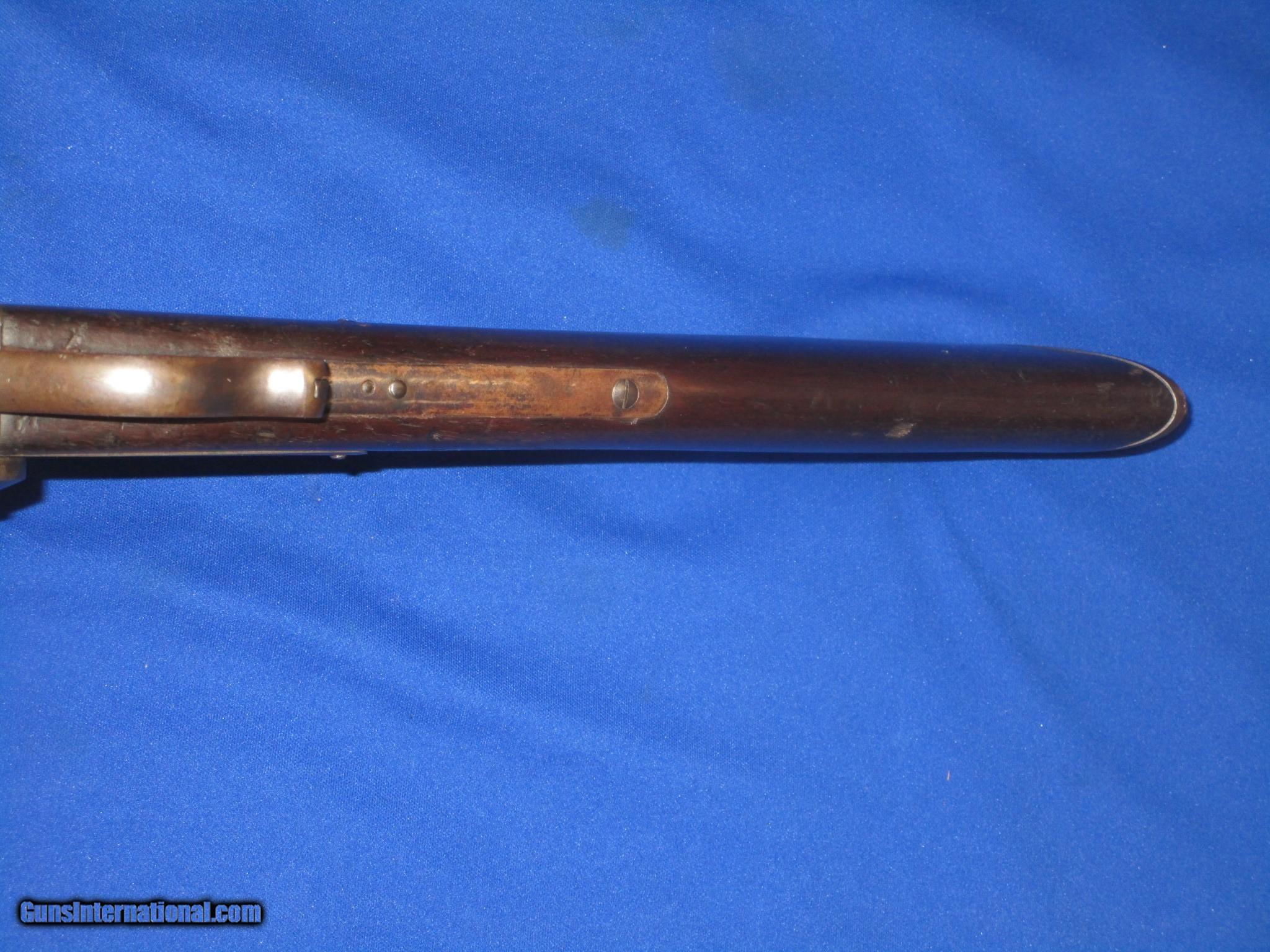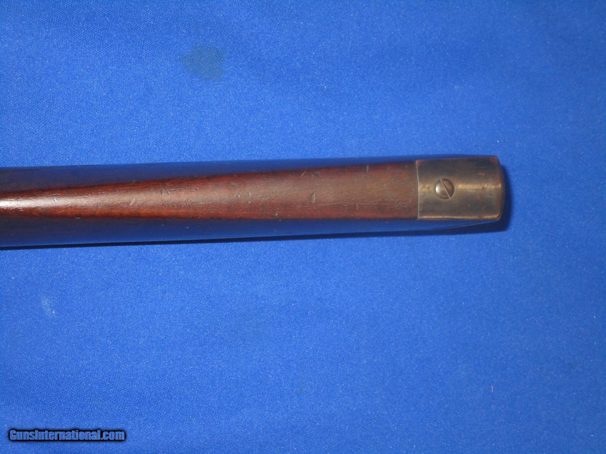 Description: A Civil War Starr Arms Co. Cartridge Carbine In Fine Untouched Condition. All original and complete. Serial #32,029 with all matching numbers. All original and complete. Only 5,002 made. The carbine has fine untouched metal and crisp markings throughout. All the edges are fine on the gun. The barrel and butt plate on the carbine both retain nearly all of their original factory blue on them. The lock plate, receiver, hammer and lever all show some original case colors. The wood on the carbine is good throughout with an old period repair in the stock behind the lock. The bore and action are excellent. This Is A Very Nice Untouched Example Of A Civil War Starr Arms Co. Carridge Carbine! SOLD Antique: Yes Manufacturer: Starr Arms Co. Model: Carbine Serial Number: 32,029 Metal Condition: Fine Wood Condition: Good Bore Condition: EXCELLENT Action: Excellent |