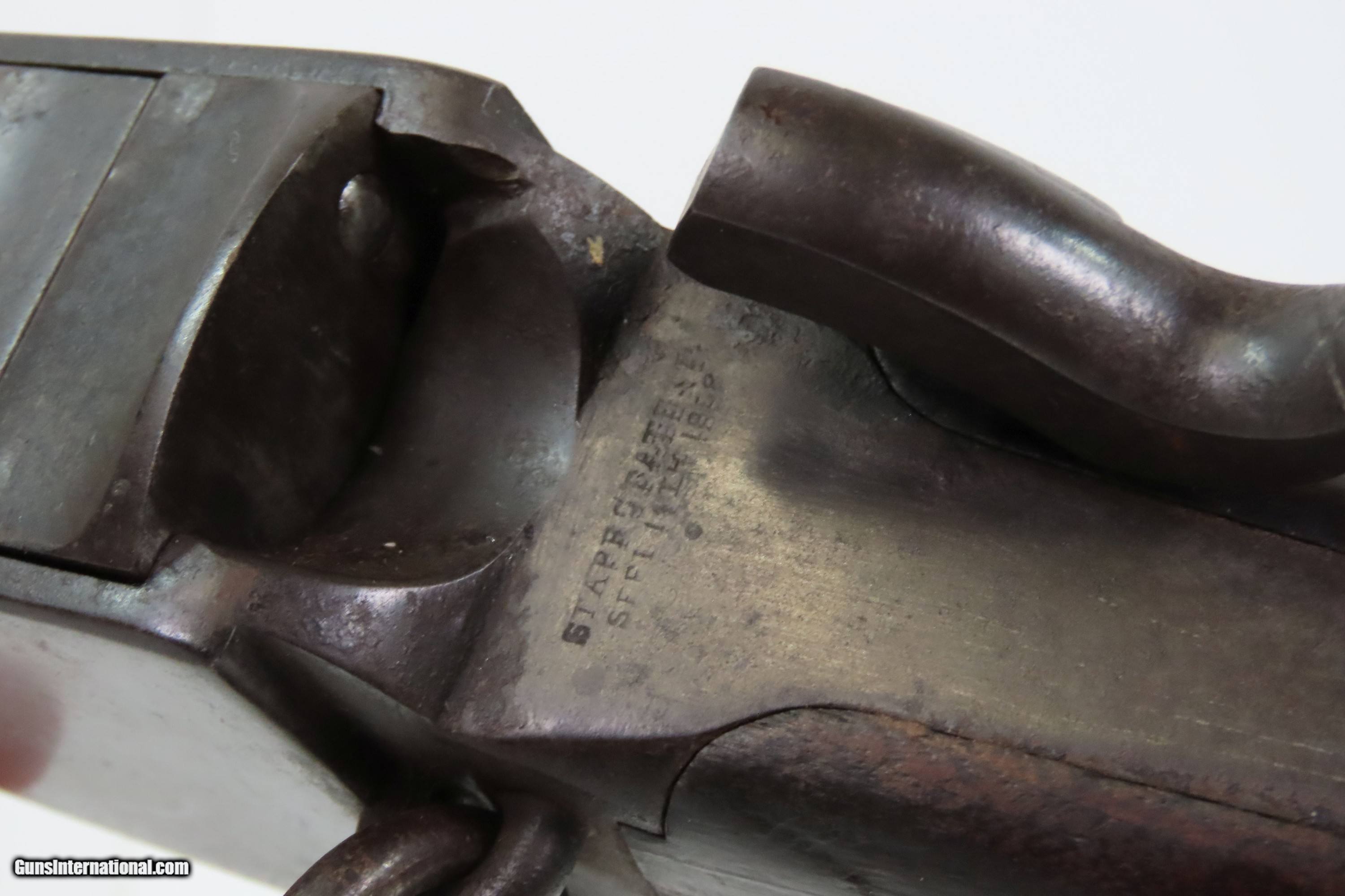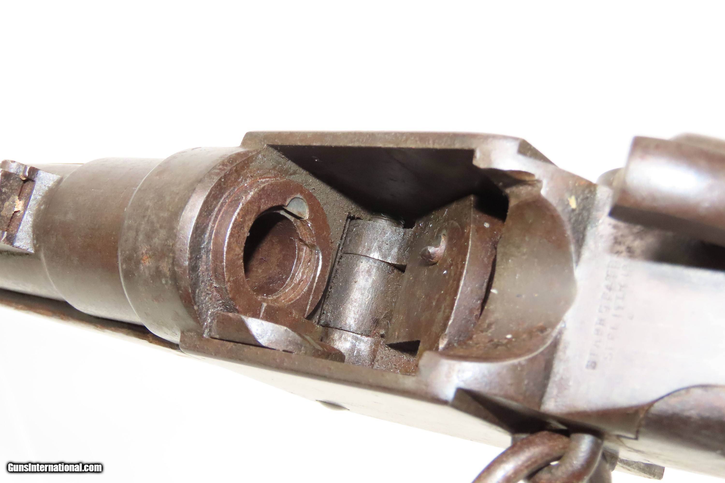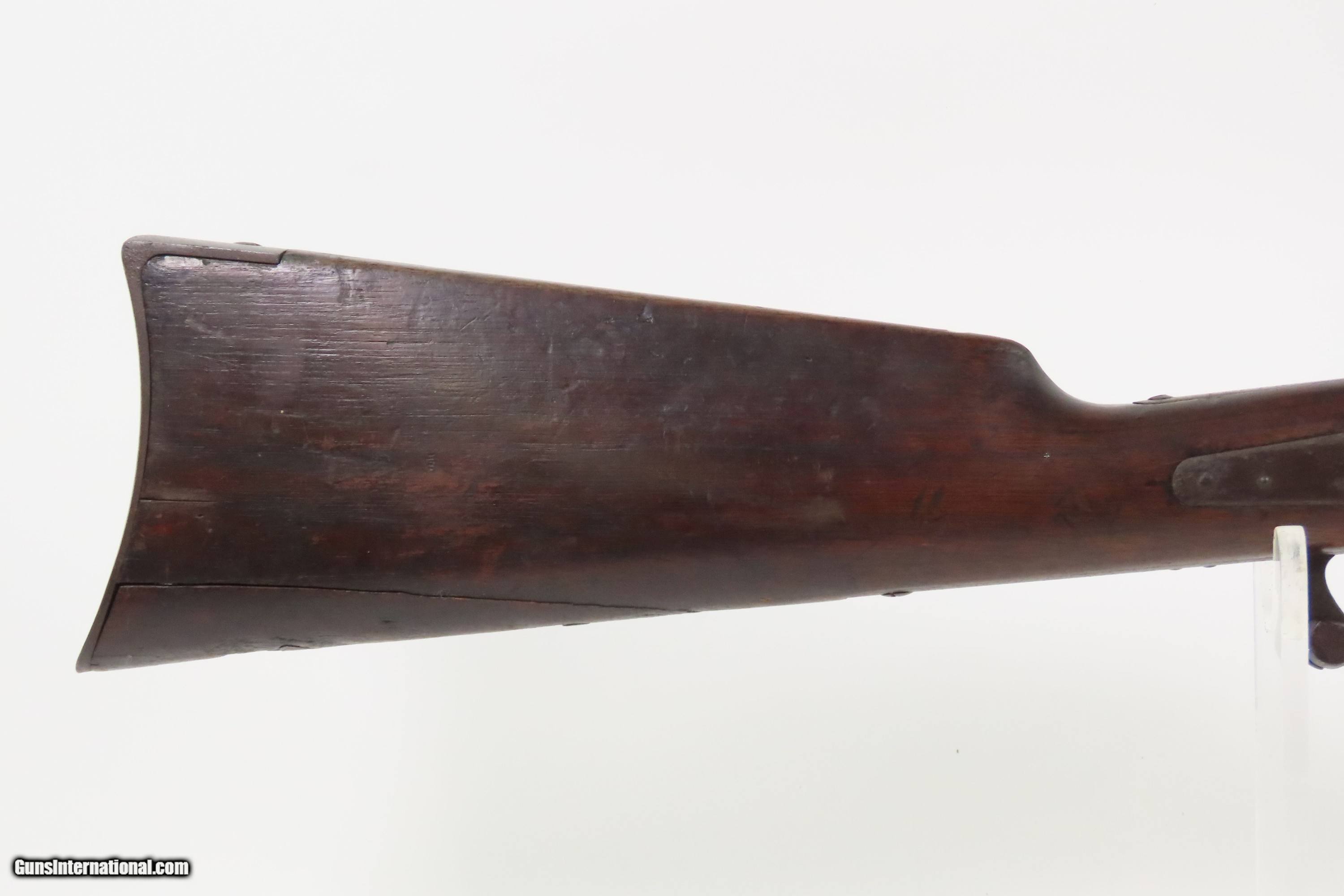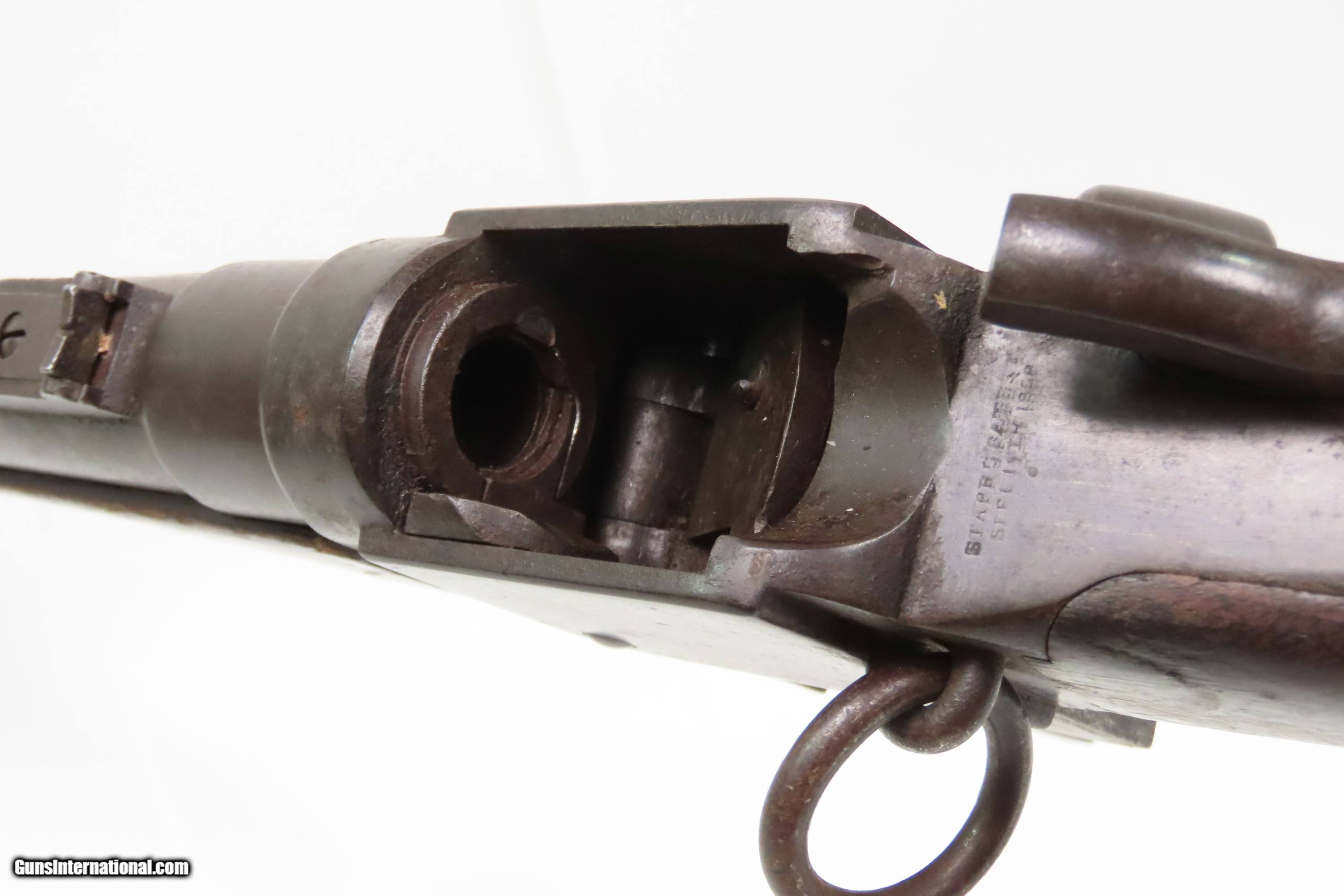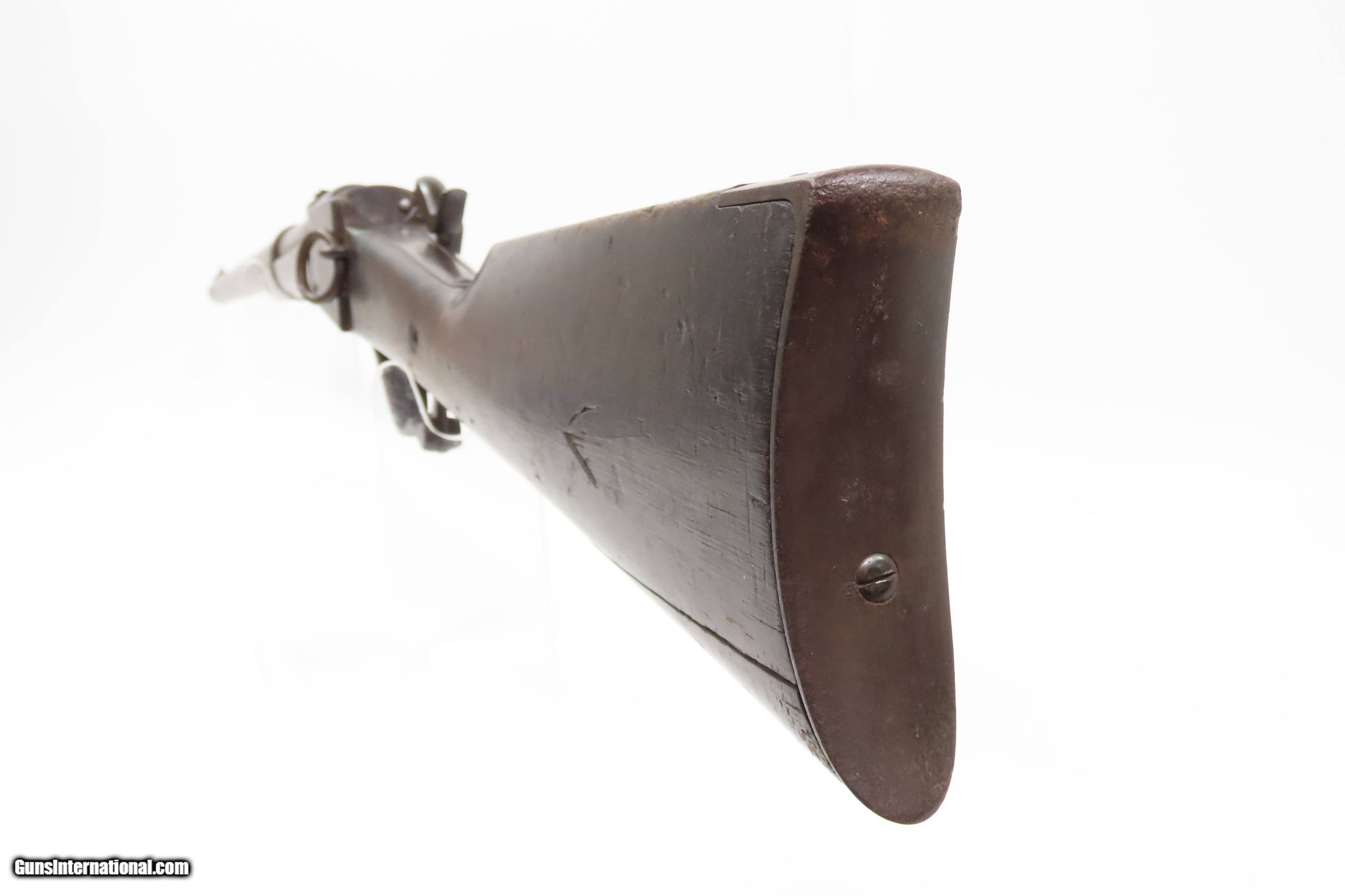 Description: Antique CIVIL WAR Era STARR ARMS Metallic CARTRIDGE Saddle Ring Carbine 1 of Only 5,002 Manufactured During/Post War Here we present an antique Starr Arms Co. Metallic Cartridge Saddle Ring Carbine, made circa 1865 in Yonkers, New York. Only 5,002 of this later rimfire cartridge variant were ordered by the U.S. government with approximately 2,000 delivered between March and April during the last weeks of the war before the American Civil War’s end. That order followed up on the success of the earlier percussion variant, of which 20,601 were ordered by the Union during the war. The style and function certainly reflect the more popular Sharps rifle and carbine and utilized a .52 caliber rimfire cartridge. According to Holt Bodinson, the 12th Pennsylvania Cavalry received many of these new cartridge carbines in the early Spring of 1865. Many others of those 5,002 were likely never used in battle as the war officially ended that May. Overall, Eben T. Starr’s firearm designs made him quite successful during the Civil War, having provided the 3rd most .44 caliber revolvers and the 5th most carbines for the Union. In a conflict with so many different designs and cartridges in use at the same time, it is easy to overlook the Starr. The overall condition is good. Even, original brown patina. Strong action. The bore is mostly bright with crisp rifling and light frosting toward the breech. A repair has been made at the toe and has slight movement, good otherwise. Markings are legible. Own the original! This is a legitimate antique and not a reproduction. Barrel is 21 inches. Caliber: .52 Spencer Rimfire Overall condition as seen in photos. Very Fast. Very Safe. FREE SHIPPING WORLDWIDE. Delivered directly to your door by express mail! Guaranteed AUTHENTIC & Includes CERTIFICATE OF AUTHENTICITY. ancestryguns $2300 #250504 SOLD Antique: Yes |