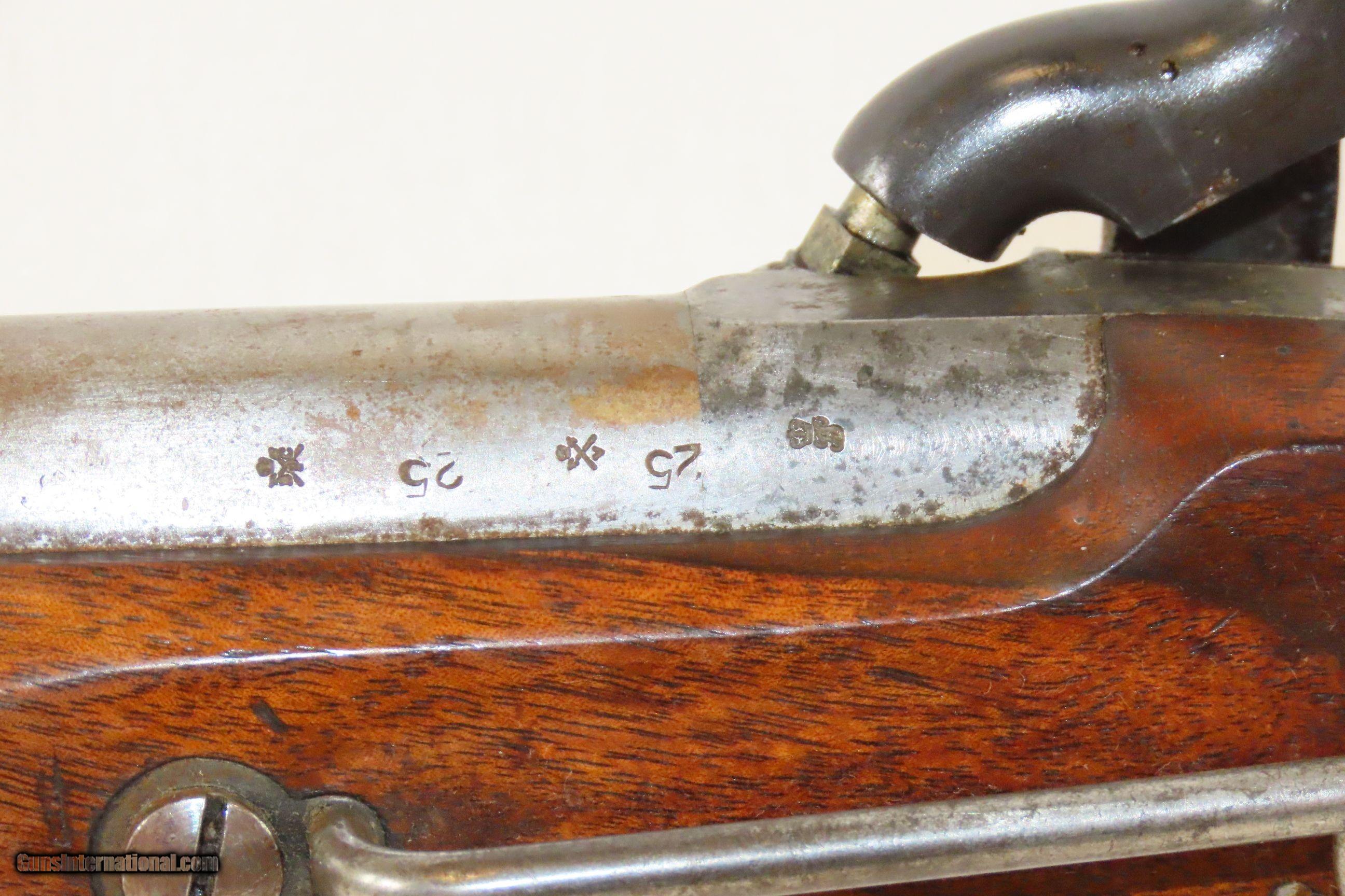 Description: Antique LONDON ARMOURY CO. Pattern 1856 .577 Cal. CAVALRY Carbine CIVIL WAR North South Skirmish Association N-SSA Here we present an antique British Proofed London Armoury Company Pattern 1856 Cavalry Carbine Musket made in 1862 in Birmingham, England. The Enfield 1853 and 1856 Cavalry carbine were used by both the North and the South in the American Civil War. The 1853 was the second most widely used infantry weapon in the war, surpassed only by the Springfield Model 1861 Rifled Musket. The Confederates imported more Enfield Patterns during the course of the war than any other small arm, buying from private contractors and gun runners. It has been estimated that over 900,000 P1853 and P1856 Enfields were imported into America and saw service in every major engagement of the war. The overall condition is fine. Robust, excellent action. The bore is in fine shape remaining bright and sharply rifled. Very nice stock. Legible marking. “1862” dated lock. There is the sticker for the North South Skirmish Association dated 1977 on the bottom of the trigger guard that the last owner had on there. Own the original! This is a legitimate antique and not a reproduction. Barrel is 22 inches. Caliber: .577 Percussion Overall condition as seen in photos. Very Fast. Very Safe. FREE SHIPPING WORLDWIDE. Delivered directly to your door by express mail! Guaranteed AUTHENTIC & Includes CERTIFICATE OF AUTHENTICITY. ancestryguns $2500 #227631 SOLD Antique: Yes |