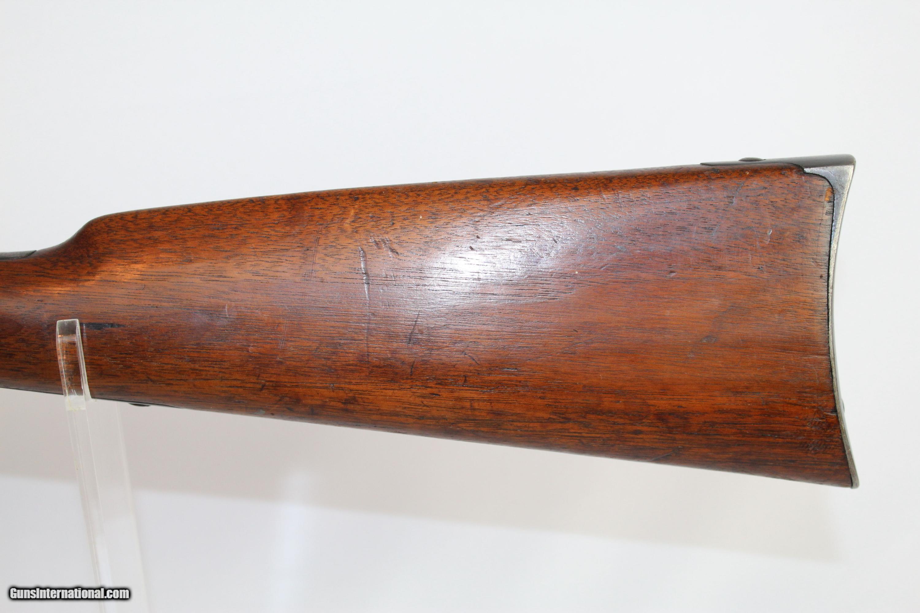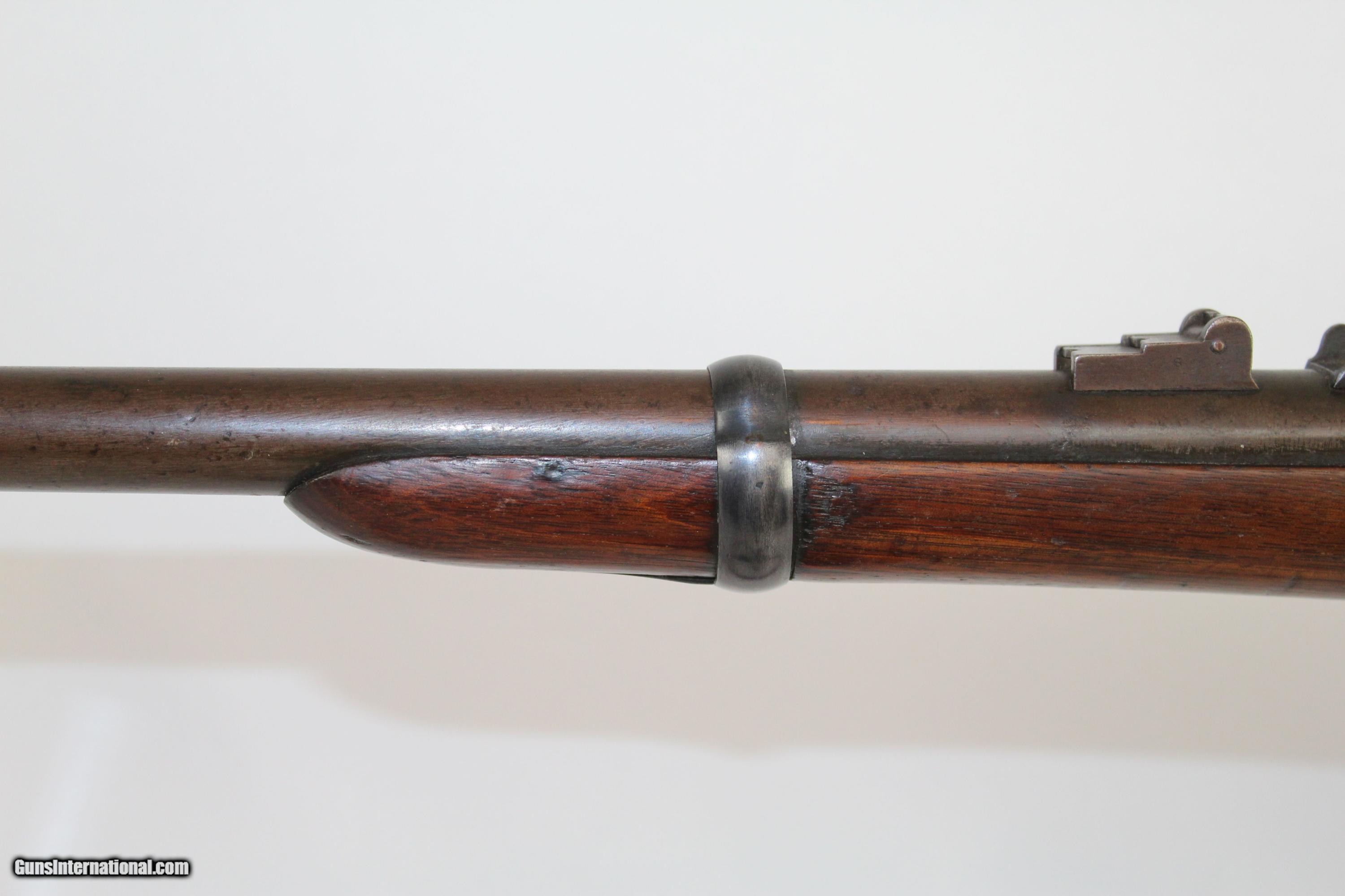 Description: Antique SHARPS Cartridge Conversion New Model Carbine Cavalry Carbine Converted to 50-70 GOVT Here we present an antique Sharps New Model Carbine, made circa 1863 in Hartford, Connecticut. Over 100,000 Sharps rifles and carbines were purchased and used by the federal government during the American Civil War. These powerful, accurate and reliable rifles certainly saw history from a firsthand perspective during the conflicts leading up to the Civil War, the war itself, and beyond on the frontier. This specimen is an example of a saddle ring carbine that was converted on contract after the Civil War to fire the improved metallic cartridge, the 50-70 Govt. The barrel is an example of the sleeved, 3-groove rifled type. The sling ring bar has been deleted, a not uncommon modification. The Lawrence Pellet Priming Device and the lever retention latch have also been removed. A brass blade front sight was added. The metal surfaces have been refinished. Some of the markings have been obliterated. The walnut stock is in very good condition. The bore is excellent. The action is strong. Own the original! This is a legitimate antique and not a reproduction. Barrel is 22 inches in length. Caliber: .50-70 GOVT Overall condition as seen in photos. Very Fast. Very Safe. FREE SHIPPING WORLDWIDE. Delivered directly to your door by express mail! Guaranteed AUTHENTIC & Includes CERTIFICATE OF AUTHENTICITY. ancestryguns $2800 #10548 SOLD Antique: Yes |