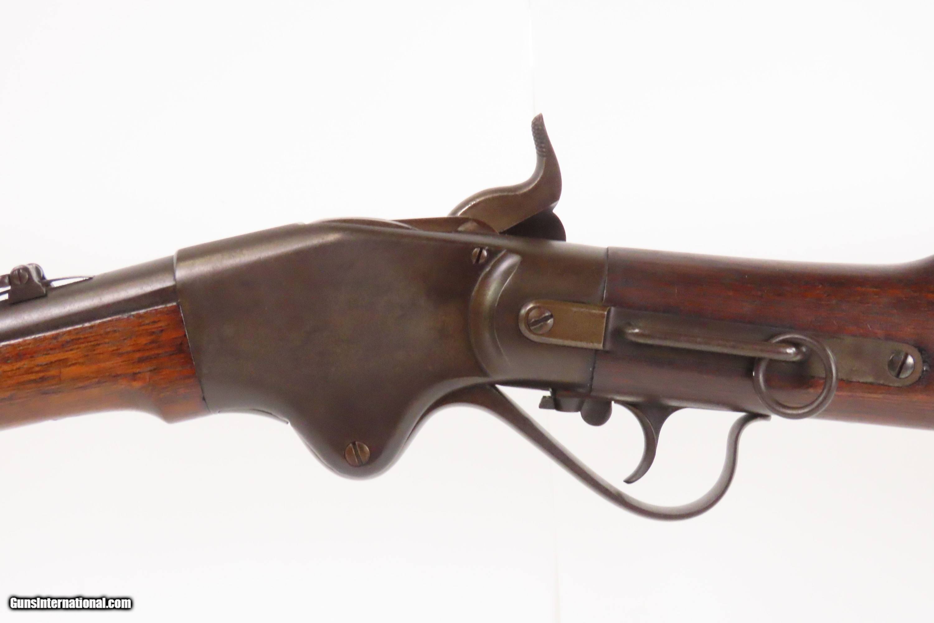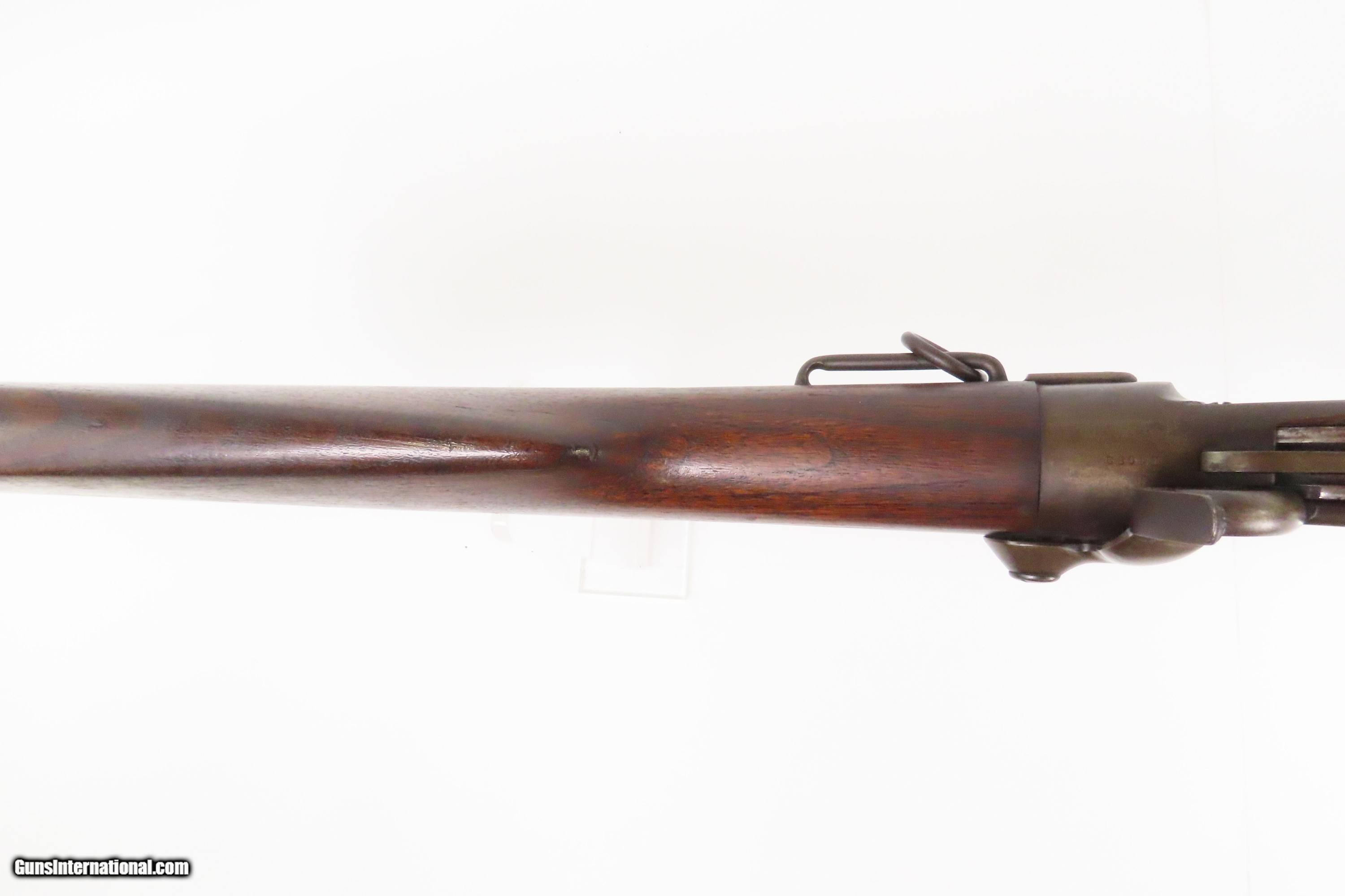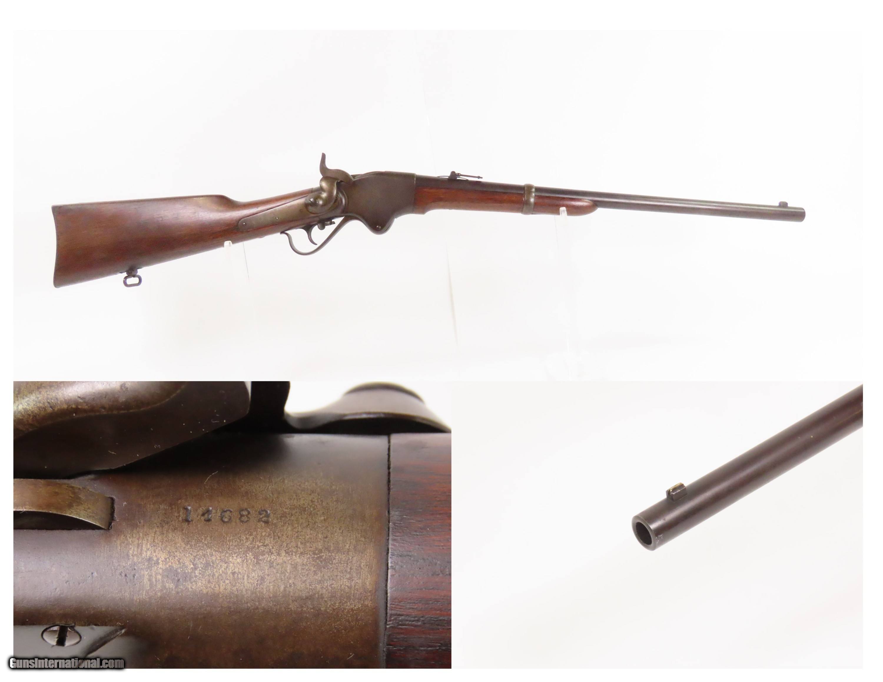 Description: Antique SPENCER SADDLE RING CAVALRY CARBINE SPRINGFIELD Alteration .50 Rim Famous Civil War & Wild West REPEATER Here we present an antique Spencer Repeating Rifle Co. Army Model Carbine, made circa 1863-1865 in Boston, Massachusetts, during the Civil War. These lever-operated, breech-loading rifles were marvels of the time and had a lasting impact on how war was to be fought in the future. Though their service life in the U.S. military was relatively short, the Spencer story includes Christopher Spencer, the inventor of the rifle, demonstrating and shooting with President Abraham Lincoln, who gave his full endorsement of the piece. Supposedly, during the battle at Gettysburg, a captured Rebel that day said one could “load in the morning and fire all day!” This was due to the Spencer’s most endearing quality: a 7-round magazine tube in the butt of the gun. This gave the shooter phenomenal firepower in a day when most soldiers were muzzle-loading single shots or even singly loading their breech-loading carbines. This is one of the iconic carbines of the Civil War and Western Frontier. This Saddle Ring Carbine was bored out and the old .52 caliber barrel received an inserted, reinforced rifle sleeve in the new .50 caliber (.56-50). These reinforced Spencer short arms and long arms produced higher velocity and greater accuracy for the troops. Ordnance Department records indicate that roughly 11,000 Spencers were altered at the Springfield Armory facility between 1866 and 1874 and bore the characteristics found in this Spencer Carbine including the Stabler Cut-Off. In the latter part of the war Edward M. Stabler of Maryland invented the Stabler Cut-Off Device. It prevented the cartridge from feeding the magazine to the receiver by limiting the lowering of the breech block. The carbine could then be used as a single shot weapon. A few of these equipped carbines, as is this one, were manufactured by the Spencer factory, plus 19,000 of the 30,496 of the Burnside Spencers were equipped with the Stabler Cut-Off Device. This would have been an upgrade for a grunt lugging around the Trapdoor rifles of the time that were powerful, but only single shot, whereas the Spencer still packed plenty of punch but with 7 in the rear-feed magazine tube. This is the type of Spencer that was used by Morgan Freeman and Clint Eastwood in the movie “Unforgiven”. Many a buffalo were taken off the plains during westward expansion by the Spencer rifle. The overall condition is very good. Armory refinished at the time of the conversion. Good case colors remain on the breech block. The action is excellent. The bore is bright with sharp rifling. The forestock has an old, smoothed out sliver on the left side, otherwise the stock is solid throughout. The left side of the stock has a good cartouche. Own the original! This is a legitimate antique and not a reproduction. Barrel is 22 inches. Caliber: .50 (.56-50) Overall condition as seen in photos. Very Fast. Very Safe. FREE SHIPPING WORLDWIDE. Delivered directly to your door by express mail! Guaranteed AUTHENTIC & Includes CERTIFICATE OF AUTHENTICITY. ancestryguns $4000 #247308 SOLD Antique: Yes |