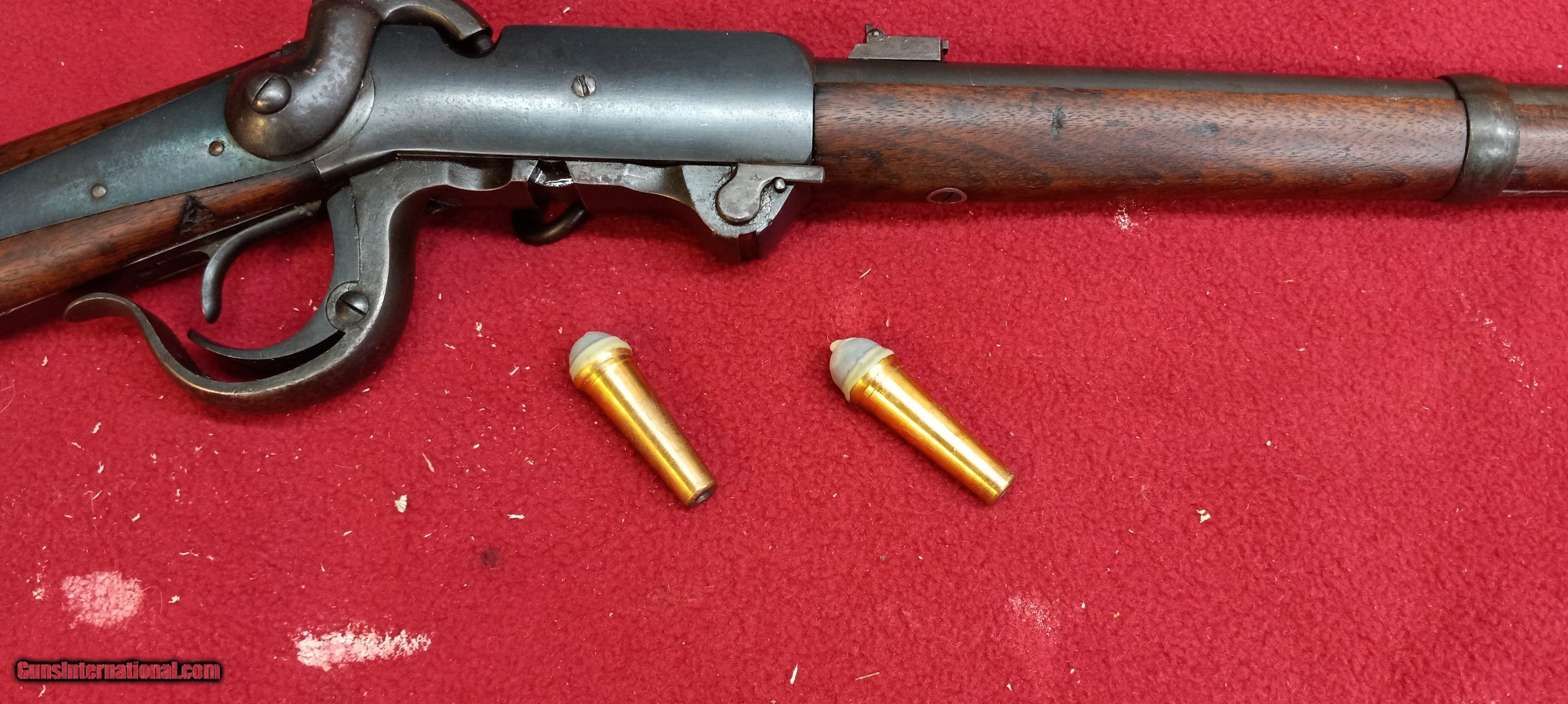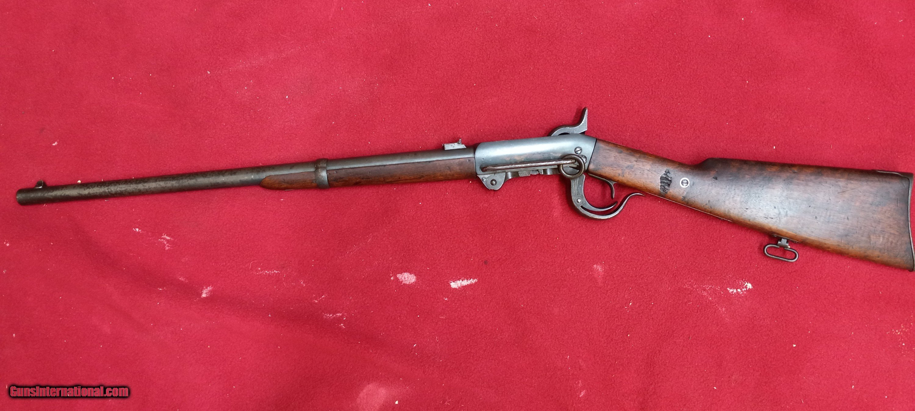 Description: Burnside carbine 5th model in good working condition.wood is in good condition has its normal dents gouges see in pctures that most have in that ara.no cracks bore is good strong rifling the metal is in good condition also. included in the sale are some cartridges 16 brass cartridges some used but very few times. 30 new plastic cases plus 9 well used not much life left in them. 10 others were loaded but disassembled before firing The actual cost of shipping will be added to purchase price. SOLD Manufacturer: Burnside Model: Carbine Serial Number: 14317 Condition: Good to very good Metal Condition: Good Wood Condition: Good Bore Condition: Good |