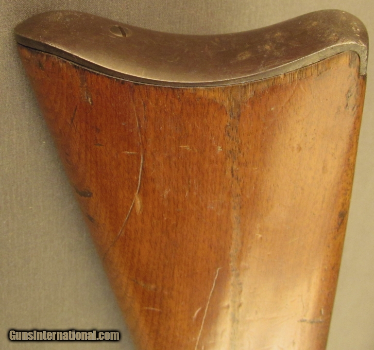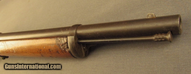 Description: NSN, .50 RF, 20 1/2" barrel with a very good bore that has some light freckling and pitting within the grooves. This is a seldom seen carbine that has an overall dark plum-brown patina with some traces of mild gray on the hammer and right side of the frame and bolt. Additionally, there is a series of peen marks along the top of the receiver and lower edge of the sideplate just behind the hammer. The magazine cut-off on the left side and the triggerguard/lever pin retain about 90% of an added blue finish with mild gray fading on the balance. The "US" and Lamson & Co markings on the left side are still quite clear. The walnut forend and buttstock have an added varnish finish over numerous small handling marks and surface blemishes throughout with a further sizable chip missing from the left side of the wrist. The carbine comes with an original ramrod and the action is fully functional. These carbines were ordered in 1864 but weren't delivered until May of 1865 after hostilities had ceased (1002 produced). Nevertheless, they are considered a secondary Civil War weapon and are seldom seen today. This example is in very good condition and would make a great addition to any collection. Antique SOLD Antique: Yes Manufacturer: Ball Model: Carbine Caliber Info: .50RF Gauge Info: .50RF |