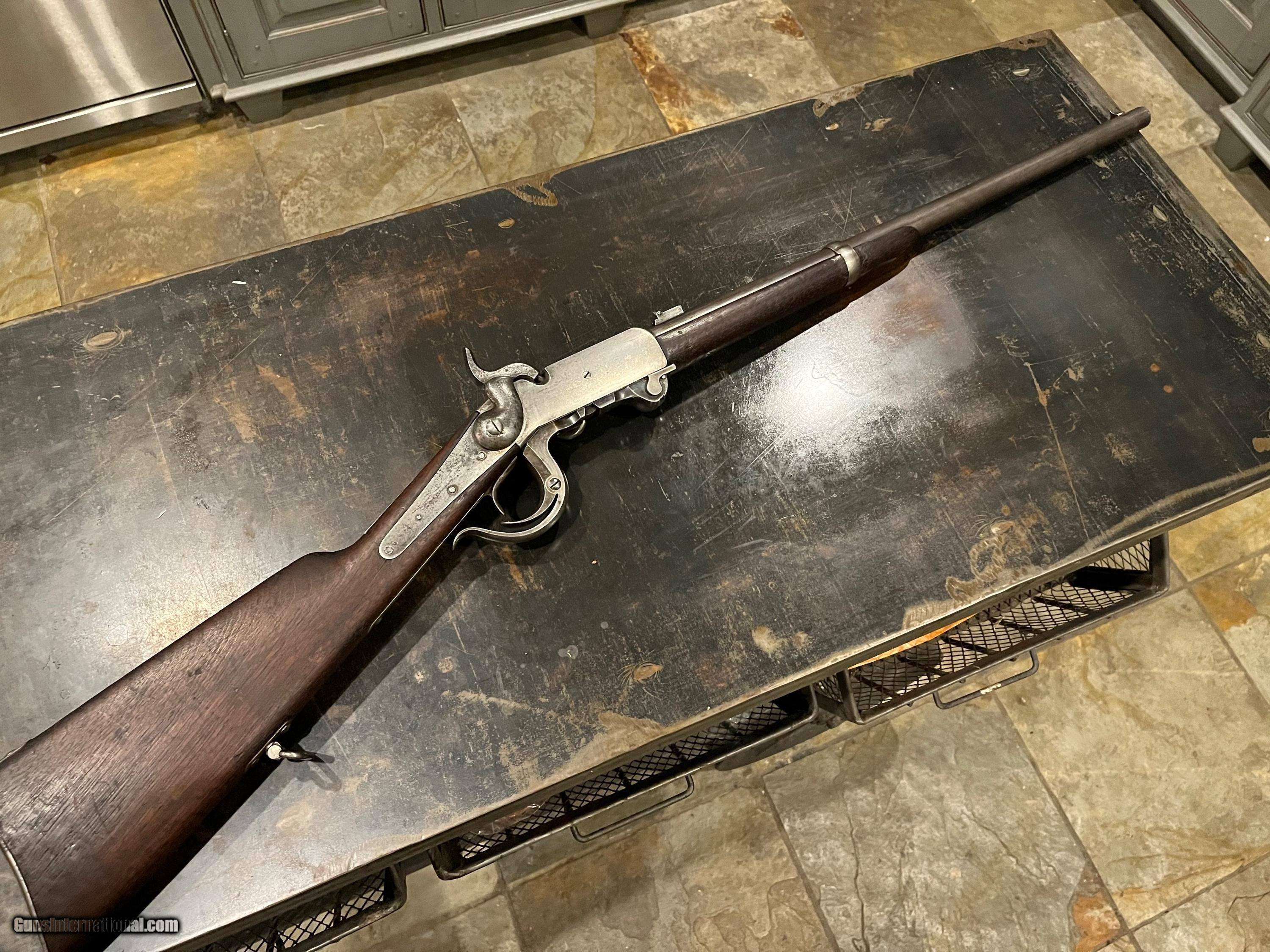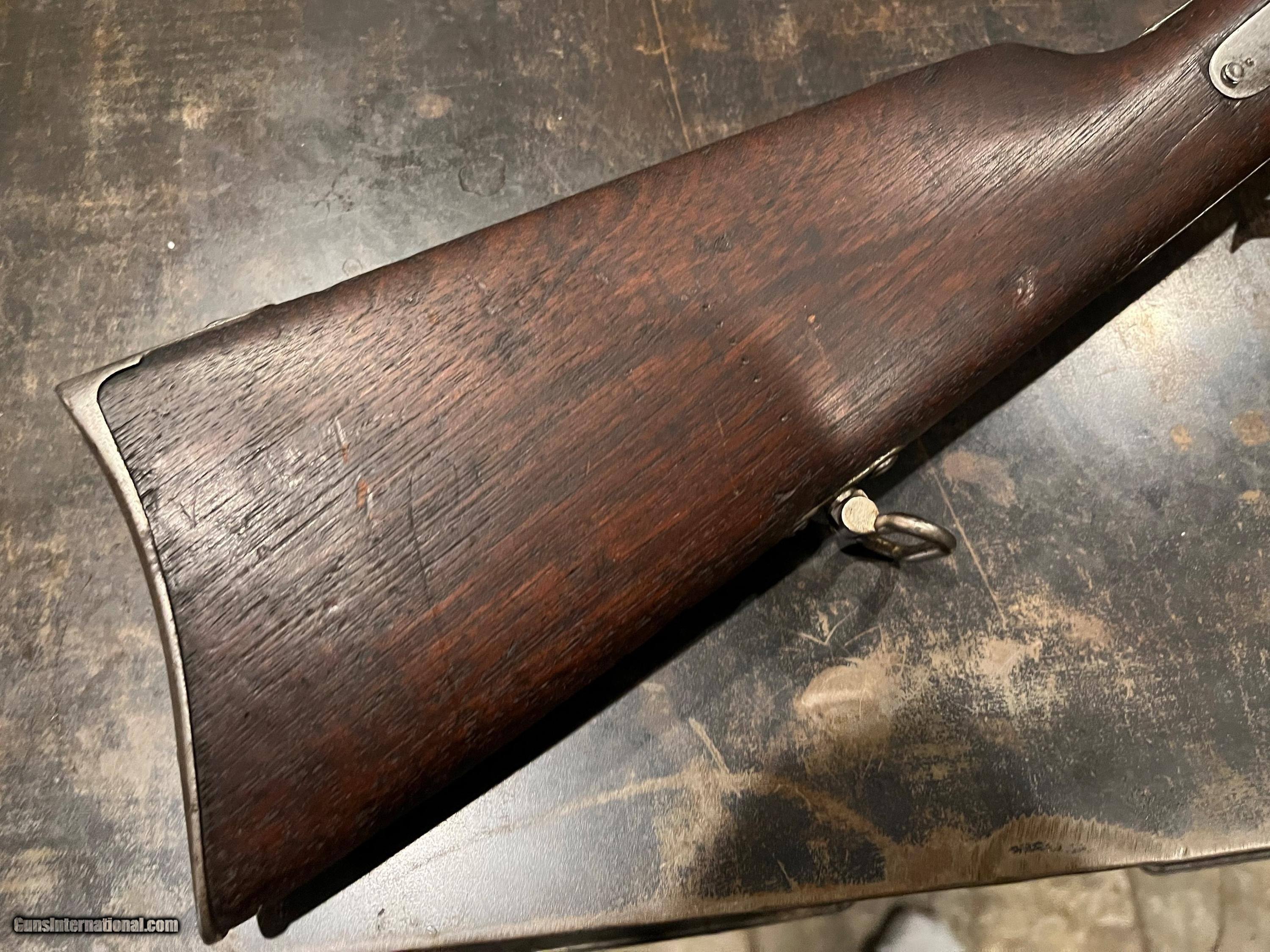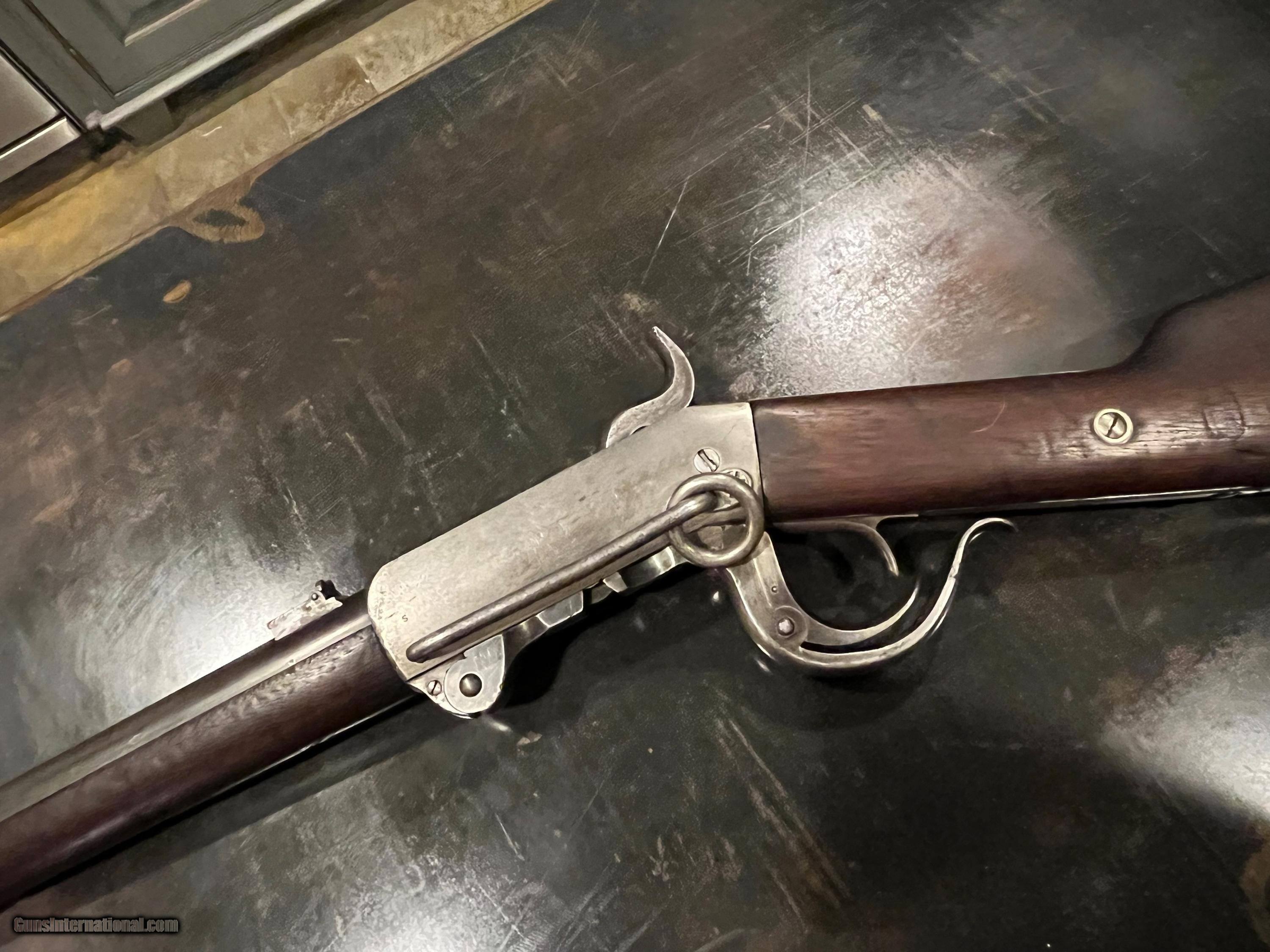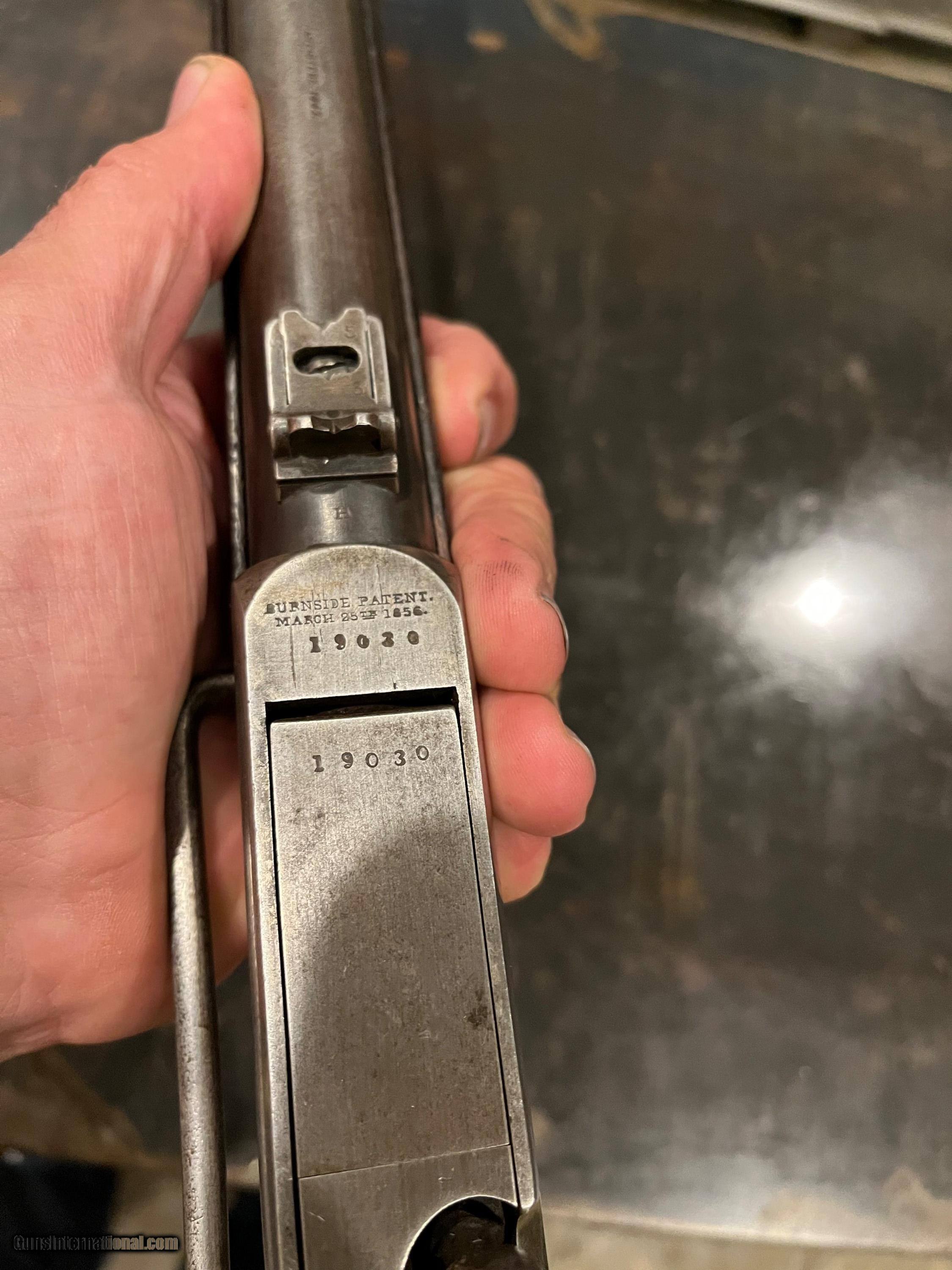 Description: Here is a nice looking Civil War US Government Proofed Burnside Carbine . Nice Action SOLD Curio/Relic: Yes Antique: Yes Manufacturer: Burnside Model: 1862 Serial Number: 19030 Condition: Nice Metal Condition: Clean Wood Condition: Nice Bore Condition: Clean |
