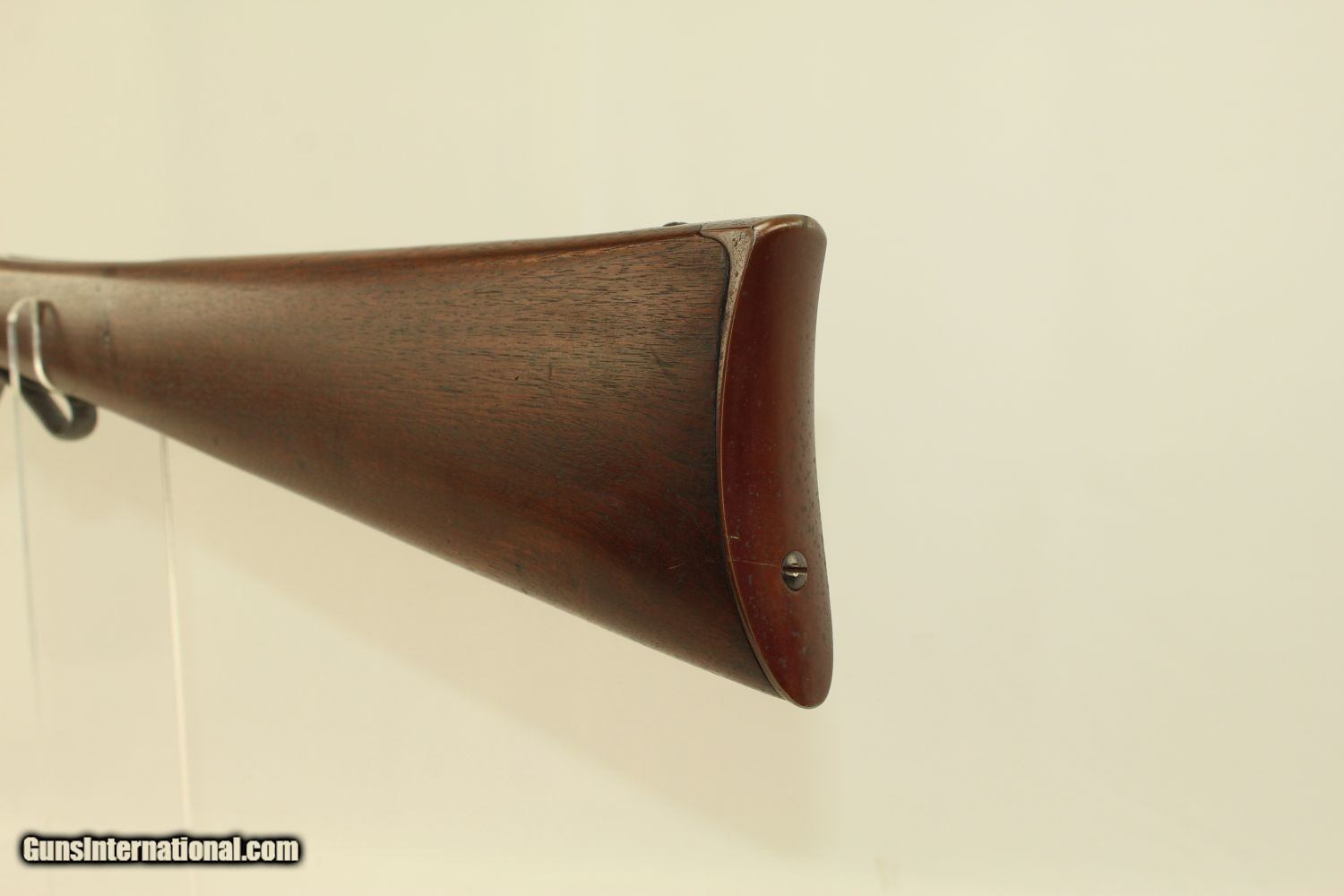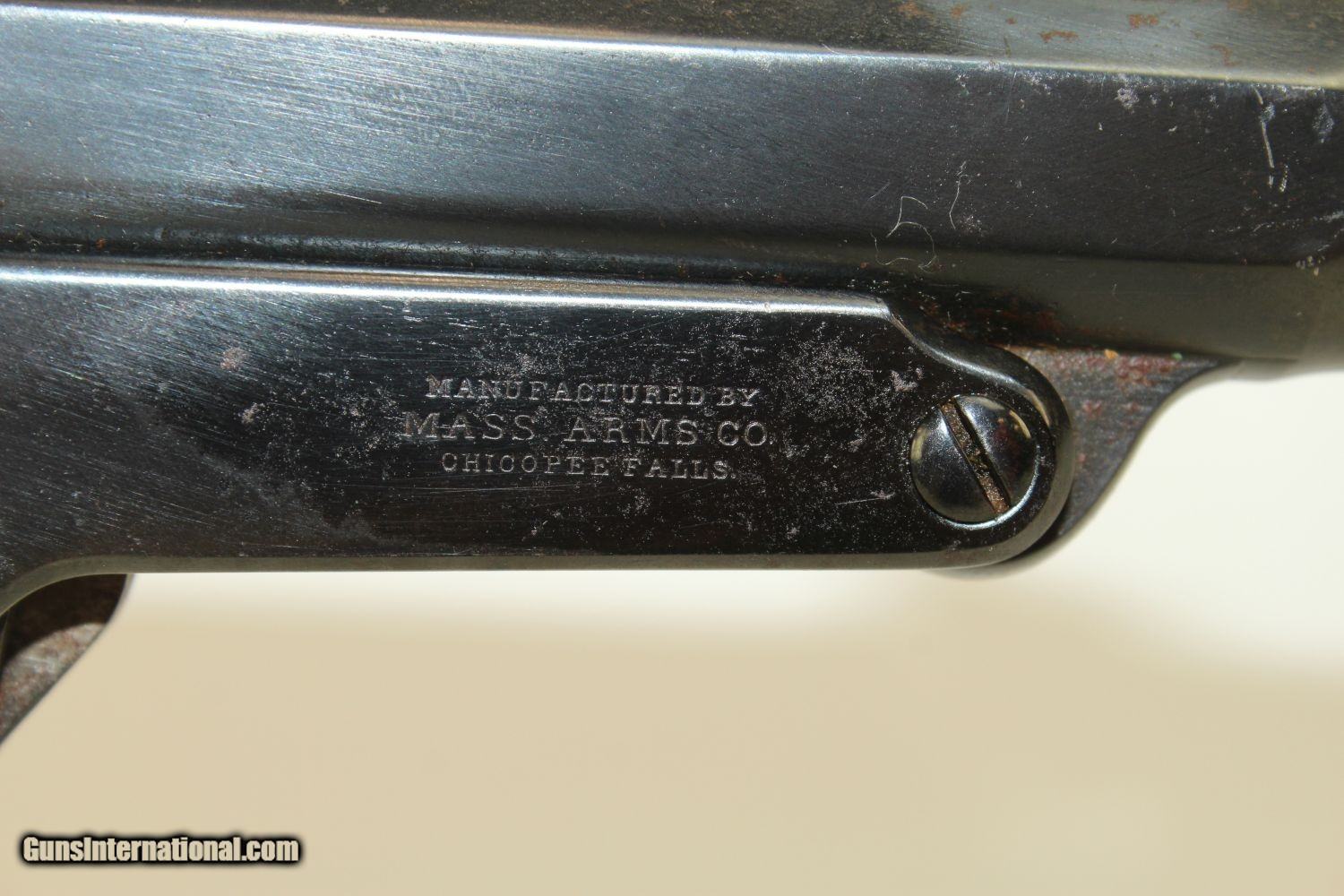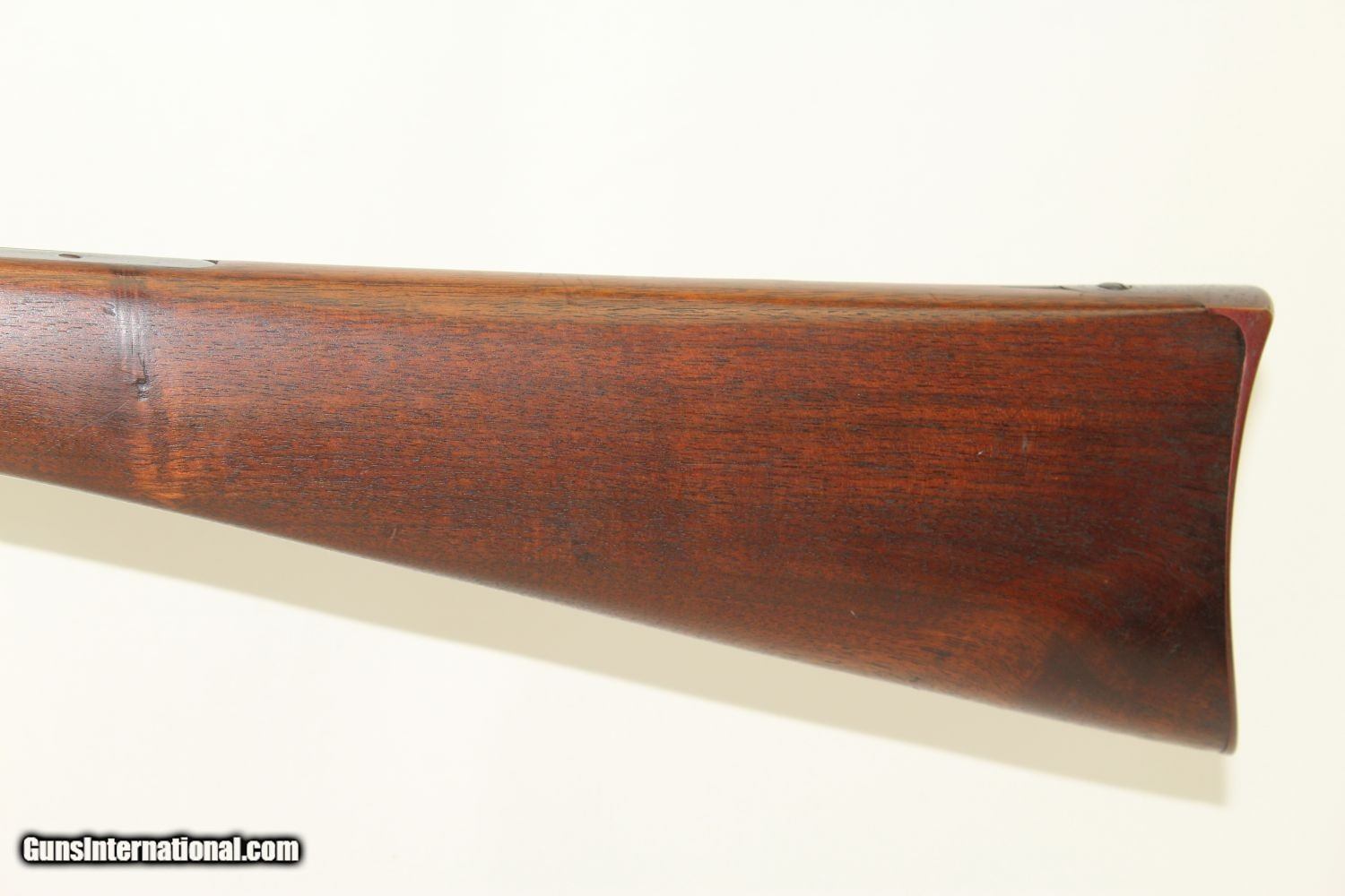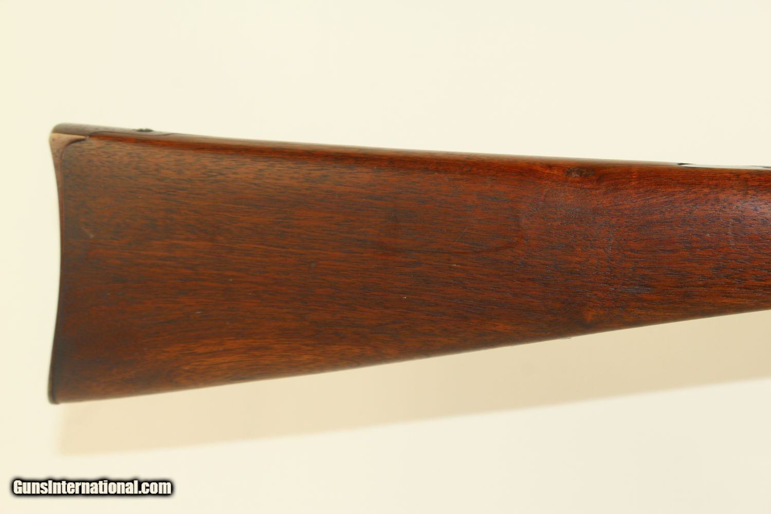Description: CIVIL WAR 2nd Model MAYNARD 1863 Cavalry Carbine Issued to State Units from Indiana & Tennessee! Here we present an antique Maynard Second Model 1863 Cavalry percussion carbine, made by Massachusetts Arms Co. in Chicopee, Massachusetts, circa 1864. This Civil War carbine was a streamlined and simplified version of the first model, which was equipped with the Maynard Tape Priming System. Some of the first model was purchased in the South prior to the war. An interesting story regarding the Maynard is recorded in Benjamin Botkin’s A Civil War Treasury of Tales, Legends & Folklore, said to be the quote of Private Toby of the 1st Regiment of the Mississippi Army. The tall tale comes from The Intelligencer of Oxford, Mississippi, and at the end, Toby tells his mates “It’s a right big story, boys, but it’s true, sure as shooting. Nothing to do with Maynard rifle but to load her up, turn her North, and pull trigger. If twenty of them don’t clean out all Yankeedom, then I’m a liar, that’s all.” Known significant issue and use occurred for the North in the 9th & 11th Indiana, as well as the 11th Tennessee. It was generally well-liked, owing to its light weight, handling and simplicity. The lever simply tips the barrel down so that the breech is exposed for loading and unloading. Compared to a percussion muzzle-loader, it was much faster to put fire down range. The left side of the frame is marked “EDWARD MAYNARD/PATENTEE/MAY 27, 1851/DEC. 6, 1859”. The right side is marked “MANUFACTURED BY/MASS. ARMS CO./CHICOPEE FALLS”. The overall condition is very good plus. This carbine has been refinished and 95% of the blue finish remains. The markings are clear. The walnut stock is smooth and in fine shape. The bore is bright and sharp. The action is excellent, strong and crisp. Own the original! This is a legitimate antique and not a reproduction. Barrel is 20 inches. Caliber: .50 Percussion Overall condition as seen in photos. Very Fast. Very Safe. FREE SHIPPING WORLDWIDE. Delivered directly to your door by express mail! Guaranteed AUTHENTIC & Includes CERTIFICATE OF AUTHENTICITY. ancestryguns $1650 #190086 SOLD Antique: Yes |