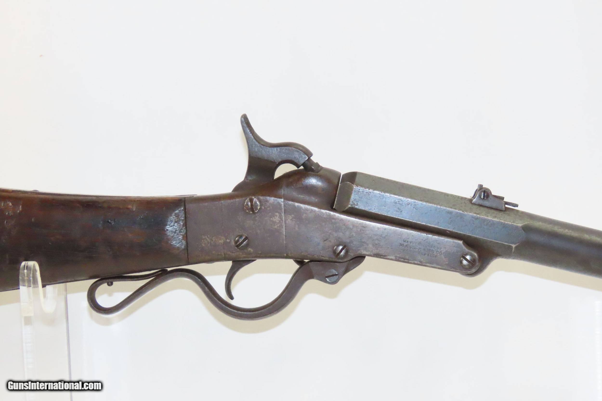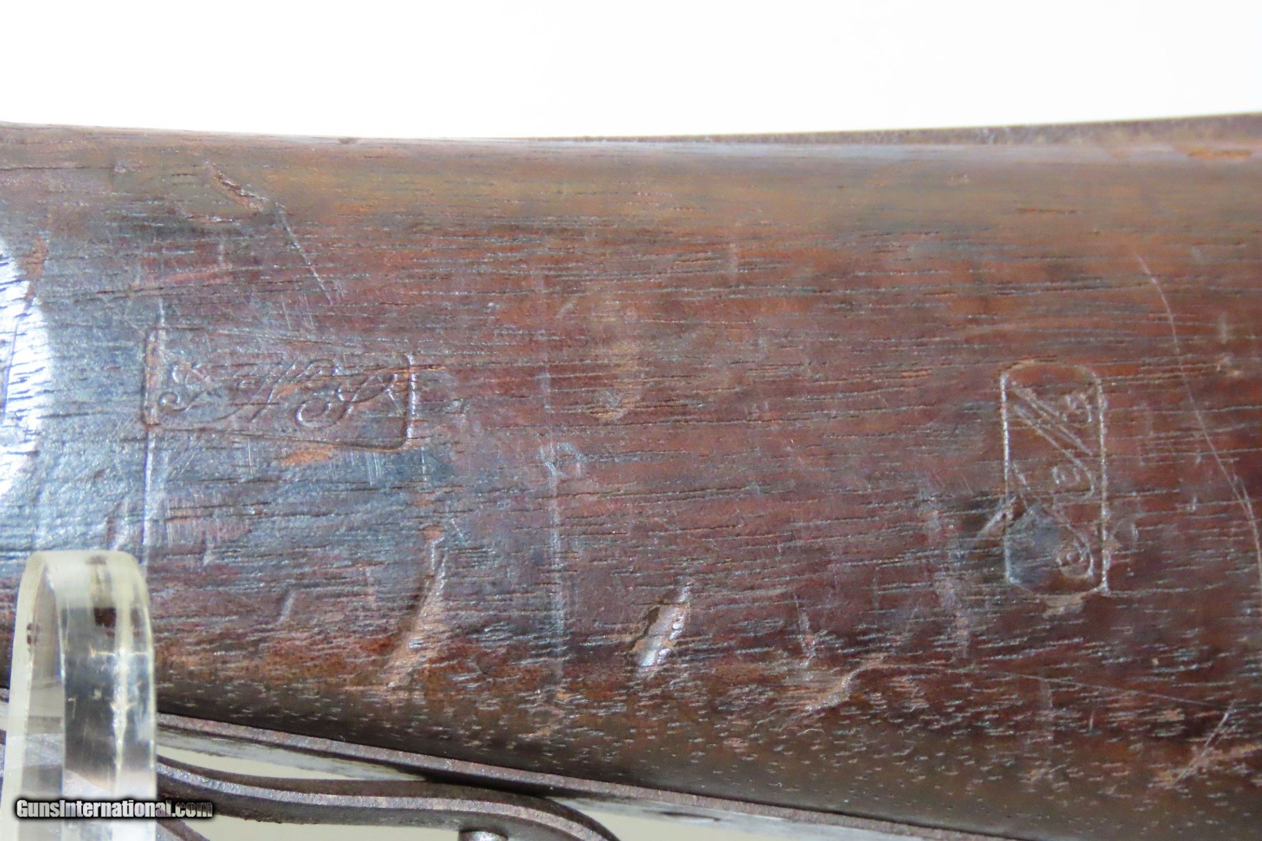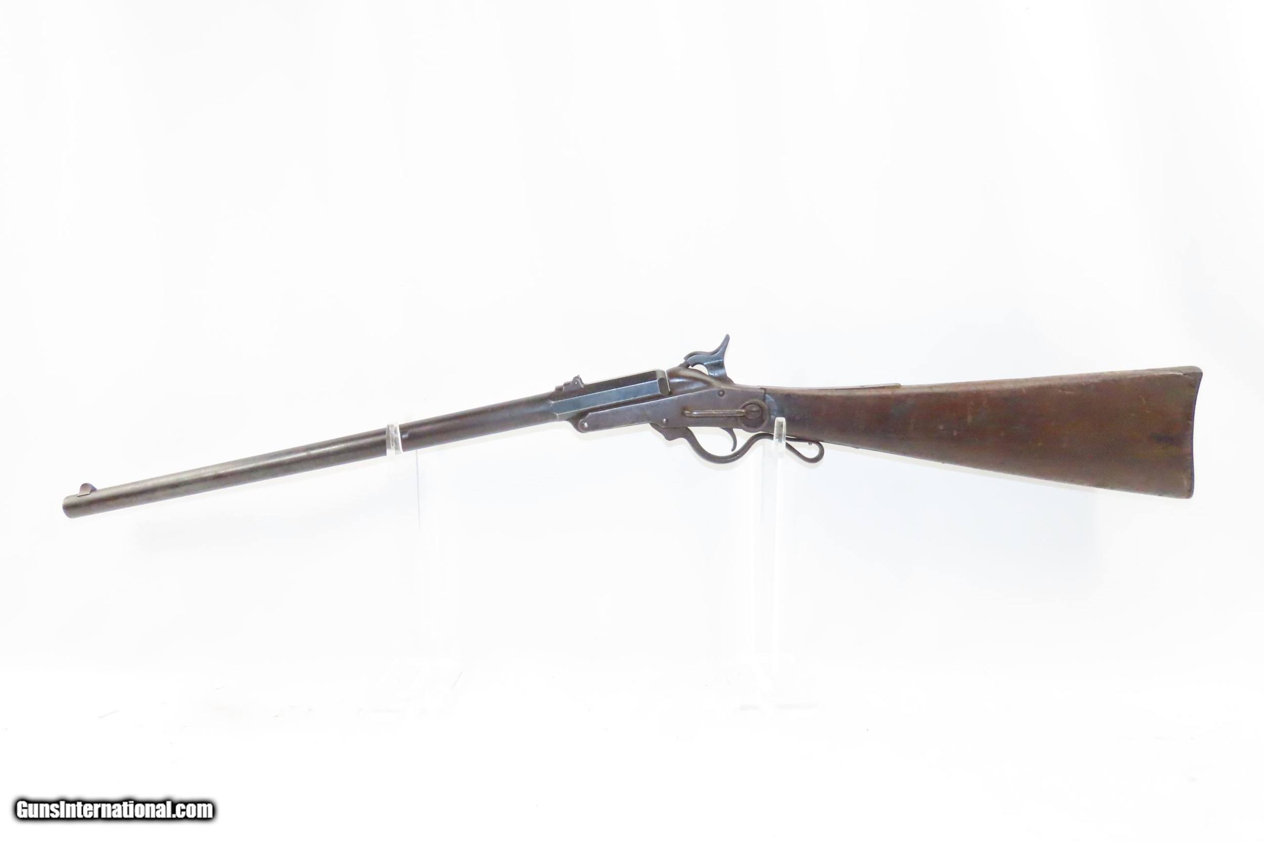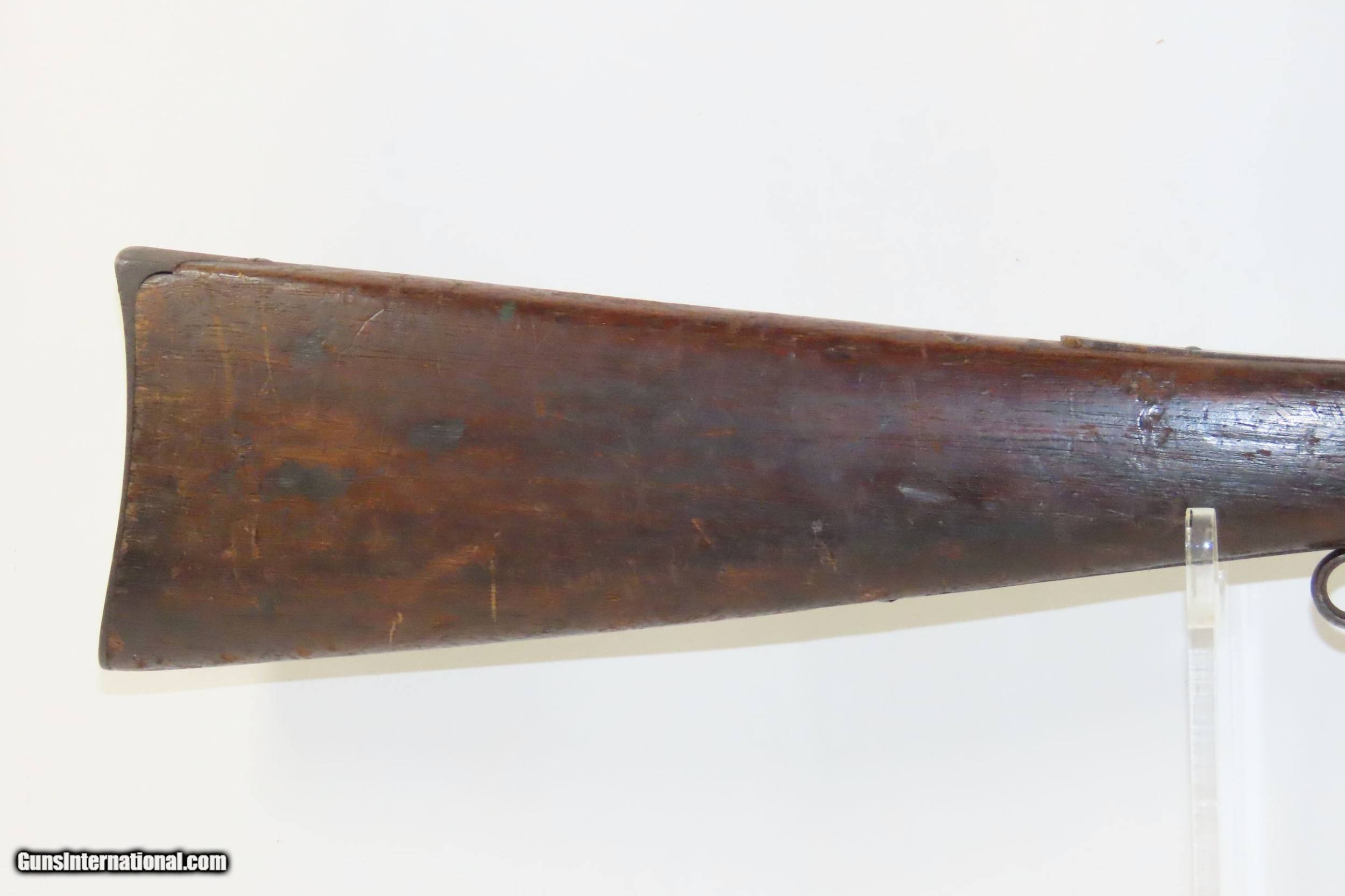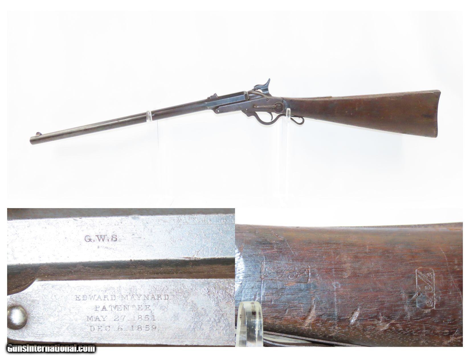 Description: CIVIL WAR Antique MASS. ARMS CO. 2nd Model MAYNARD 1863 Cavalry SR Carbine .50 Caliber Percussion Saddle Ring Carbine Here we present an antique Maynard Second Model 1863 Cavalry percussion carbine, made by Massachusetts Arms Co. in Chicopee, Massachusetts, circa 1863. The 2nd Model Maynard carbine is widely regarded as one of the best performing and most accurate of all the cavalry arms used during the Civil War. The well favored, metallic cartridge breech loading carbine was the invention of New Jersey doctor Edward Maynard, who patented his 1st model carbine in 1851. Between 1863 and 1865, the US Ordnance Department contracted for over 20,000 2nd model carbines. Issued mostly to the Federal cavalry, the Maynard proved a lightweight, dependable carbine that saw extensive service in the field. This Civil War carbine was a streamlined and simplified version of the first model, which was equipped with the Maynard Tape Priming System. Some of the first model was purchased in the South prior to the war. An interesting story regarding the Maynard is recorded in Benjamin Botkin’s A Civil War Treasury of Tales, Legends & Folklore, said to be the quote of Private Toby of the 1st Regiment of the Mississippi Army. The tall tale comes from The Intelligencer of Oxford, Mississippi, and at the end, Toby tells his mates “It’s a right big story, boys, but it’s true, sure as shooting. Nothing to do with Maynard rifle but to load her up, turn her North, and pull trigger. If twenty of them don’t clean out all Yankeedom, then I’m a liar, that’s all.” This example represents a fairly early production of the second model and used by various Union cavalry. Known significant issue and use occurred in the 9th & 11th Indiana, as well as the 11th Tennessee. It was generally well-liked, owing to its light weight, handling and simplicity. The lever simply tips the barrel down so that the breech is exposed for loading and unloading. Compared to a percussion muzzle-loader, it was much faster to put fire down range. The overall condition is good. Original patina. Strong action. Bright bore with some light pitting. Solid stock, contains a little wiggle due to a loose tang screw. Two visible cartouches can be seen on the left wrist. “G.W.S.” is marked on the left side of the barrel. Legible makings. Here is a great example of the venerable Maynard carbine which served so well many state militia units! Own the original! This is a legitimate antique and not a reproduction. Barrel is 20 inches. Caliber: .50 Percussion Overall condition as seen in photos. Very Fast. Very Safe. FREE SHIPPING WORLDWIDE. Delivered directly to your door by express mail! Guaranteed AUTHENTIC & Includes CERTIFICATE OF AUTHENTICITY. ancestryguns $2275 #217144 SOLD Antique: Yes |