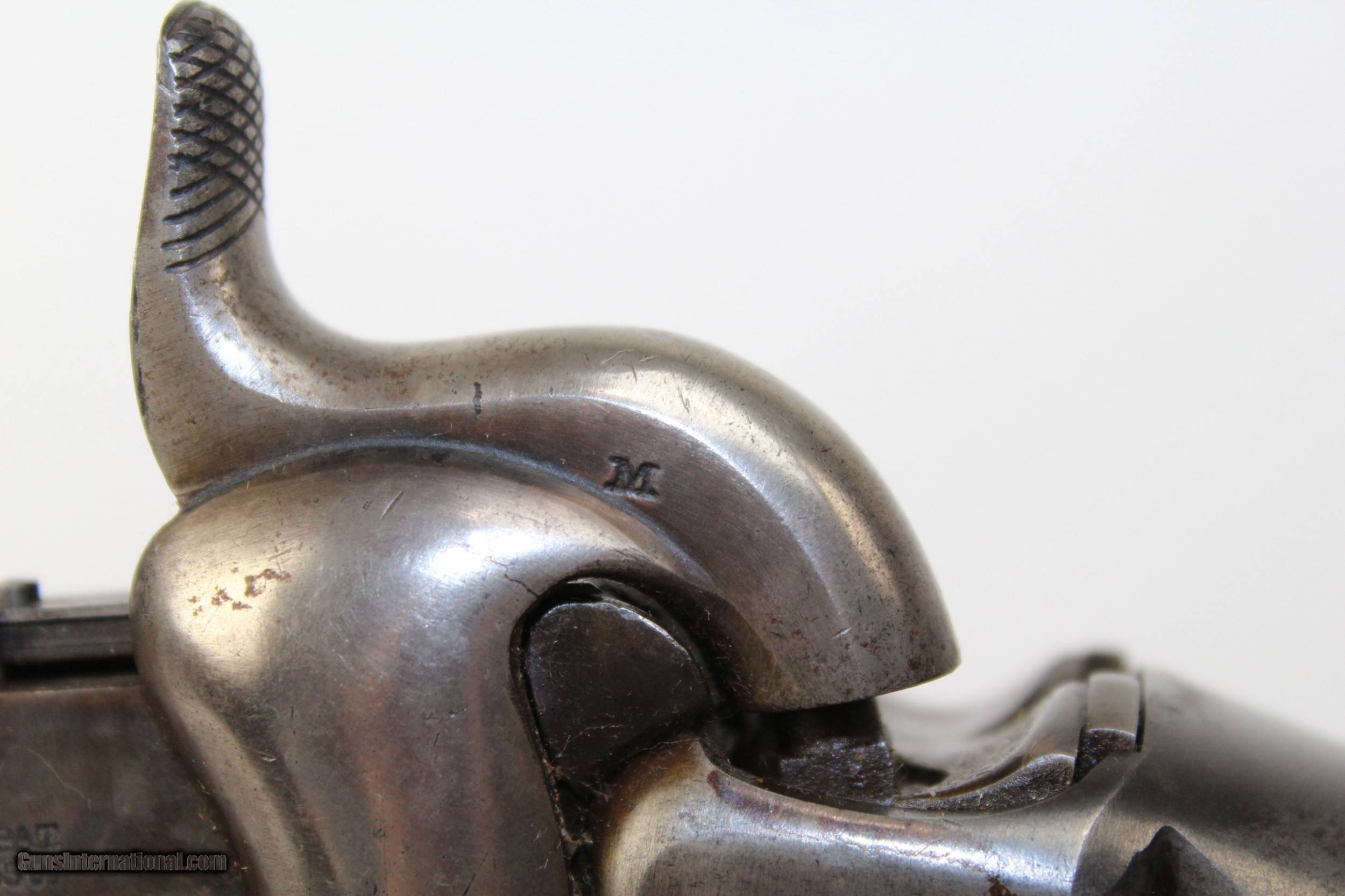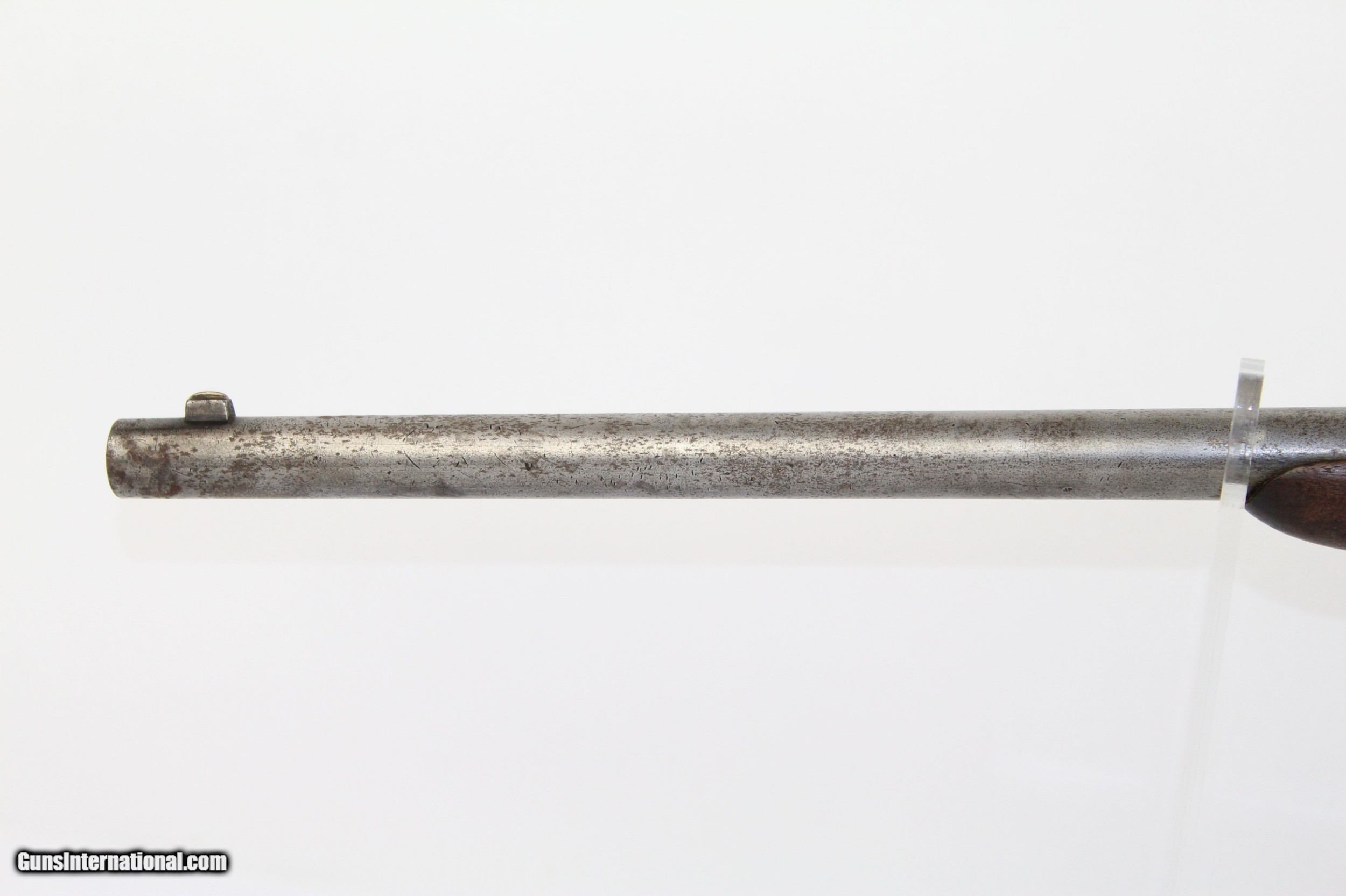 Description: CIVIL WAR Antique SHARPS New Model 1863 CARBINE Classic Civil War & Old West Saddle Ring Carbine Here we present an antique Sharps New Model 1863 Carbine, made circa 1863. Over 100,000 Sharps rifles and carbines were purchased and used by the federal government during the American Civil War, and afterward, the U.S. contracted with Sharps to convert a portion of them at the factory to shoot metallic cartridges. Just over 31,000 firearms were converted in this manner, in several different variants. They went on to experience some of the most exciting times in American history during the Indian Wars, the settling of the West, and the connecting of the coasts with the railroad. This Sharps Carbine remains in original percussion configuration. The top of the barrel is marked “SHARPS RIFLE/MANUFG. CO/HARTFORD, CONN.” The rear of the barrel is marked “MODEL 1863”. The left side of the frame is marked “C.SHARPS PAT./SEPT. 12, 1846”. The right side of the frame is marked “C. SHARPS PAT. OCT. 5TH 1852/R.S.LAWRENCE PAT./APRIL 12TH, 1859”. The overall condition is very good. Traces of the original blue finish remain on the top of the barrel while it is strong under the forearm. The markings are clear and legible. The serial numbers match. The stock is in very good shape. The bore is semi-bright with sharp rifling. The action on this carbine is excellent. Here is your chance to own a Civil War Sharps! Own the original! This is a legitimate antique and not a reproduction. Barrel is 22 inches. Caliber: .52 Percussion Overall condition as seen in photos. Very Fast. Very Safe. FREE SHIPPING WORLDWIDE. Delivered directly to your door by express mail! Guaranteed AUTHENTIC & Includes CERTIFICATE OF AUTHENTICITY. ancestryguns $3350 #7129 SOLD Antique: Yes |