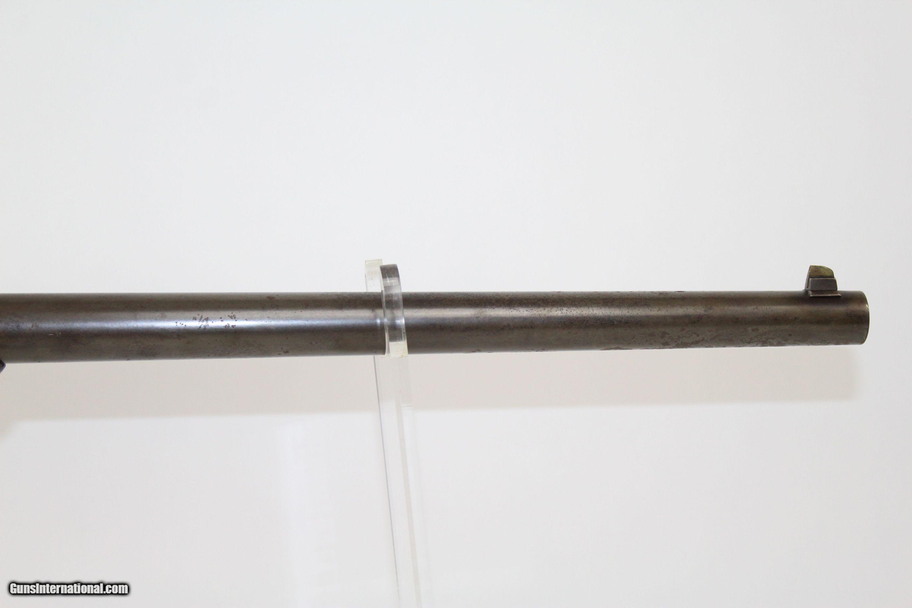 Description: CIVIL WAR Antique SMITH Cavalry Carbine Widely Issued Carbine Made C. 1862 Here we present an antique Civil War American Machine Works Smith Breech Loading Percussion Carbine, made circa 1862 by American Machine Works of Springfield, Massachusetts. About 30,000 of these carbines were made and virtually all of them were used in the Union cavalry of the American Civil War. The designer was Dr. Gilbert Smith of New York. His design featured a simple break open action, providing a single shot, utilizing a cartridge made of rubber. While many different cartridges were in use simultaneously during the war—which must have been a logistical nightmare—the rubber cartridge was both a nuisance to the shooter who had to get the hot gummy thing out of the chamber once fired, as well as to the ammunition manufacturer, who had to acquire rubber from distant places. In place of rubber, many other materials were also tried. These carbines will be found with the names of three different makers, including American Machine Works, American Arms Co., and Massachusetts Arms Co. According to Flayderman, the Smith Carbine was known to have been utilized in number by the 3rd West Virginia, 7th and 11th Illinois, 1st Connecticut, 7th and 17th Pennsylvania, 6th and 9th Ohio, and 1st Massachusetts Cavalries. This specimen is marked “SMITH’S PATENT/JUNE 23, 1857”, “MANUFACTURED BY/AM°N. M°CH°N. WKS./SPRINGFIELD MASS.”, and “ADDRESS/POULTNEY & TRIMBLE/BALTIMORE U.S.A.” The left side of the barrel is marked “LFR”. The wrist of the stock still bears a government inspector cartouche by John Hannis. The overall condition is very good. The iron surfaces bear a smooth patina. The markings are clear. The walnut stock shows use but is in near fine condition. The bore could hardly be improved upon and remains shiny bright with sharp rifling. The action is excellent. Here is a great example of one of the many unique Civil War Cavalry Carbines! Own the original! This is a legitimate antique and not a reproduction. Barrel is 21-5/8 inches. Caliber: .50 Percussion Overall condition as seen in photos. Very Fast. Very Safe. FREE SHIPPING WORLDWIDE. Delivered directly to your door by express mail! Guaranteed AUTHENTIC & Includes CERTIFICATE OF AUTHENTICITY. ancestryguns $2800 #6178 SOLD Antique: Yes |