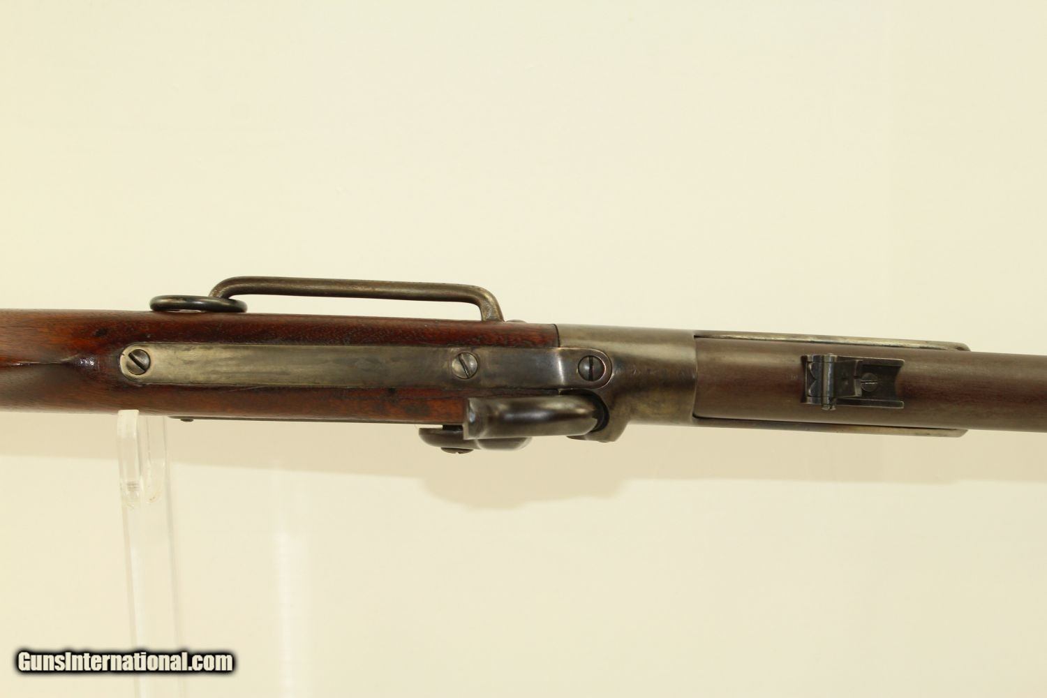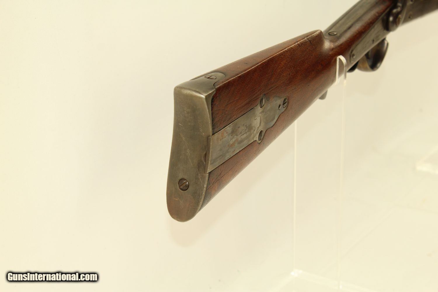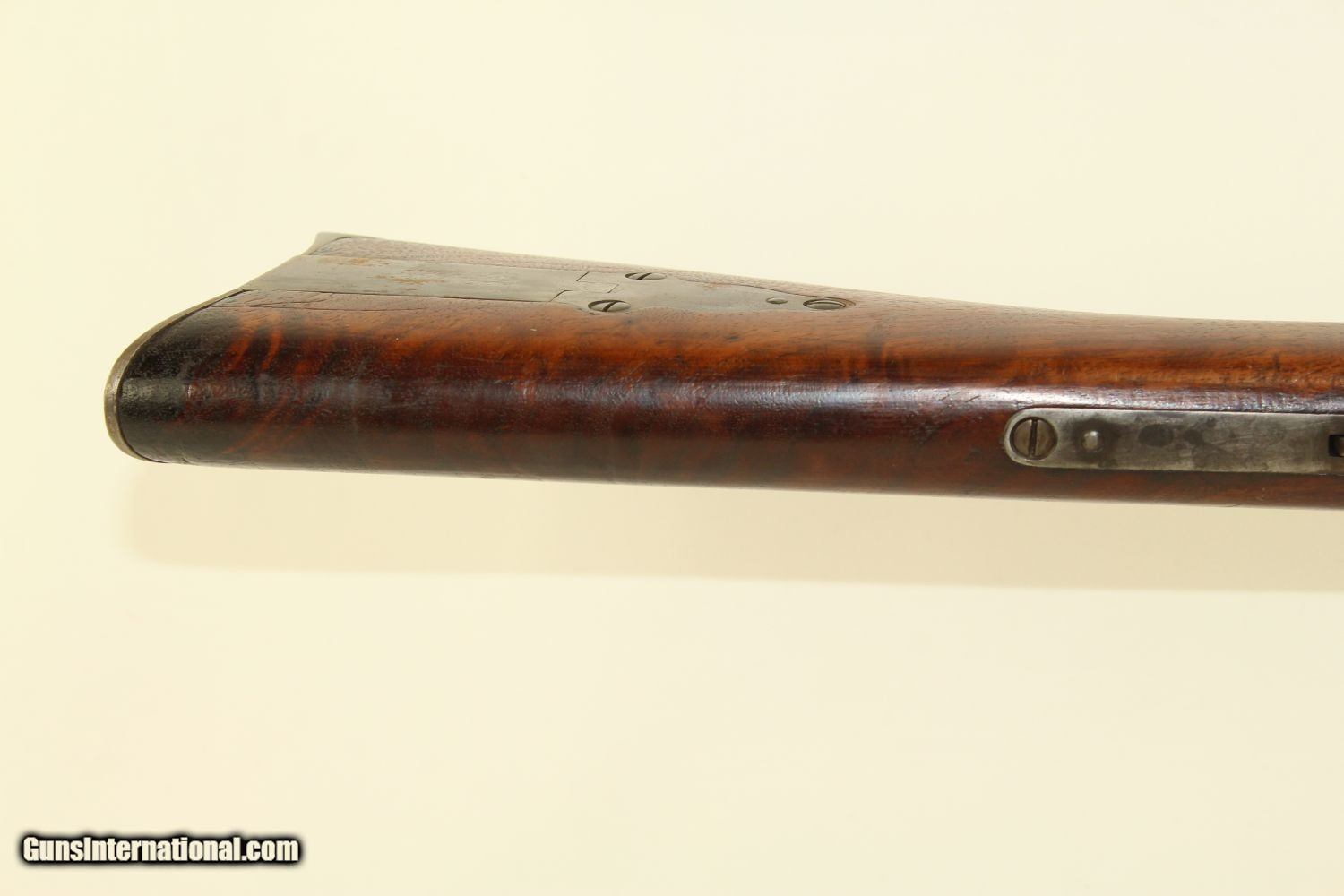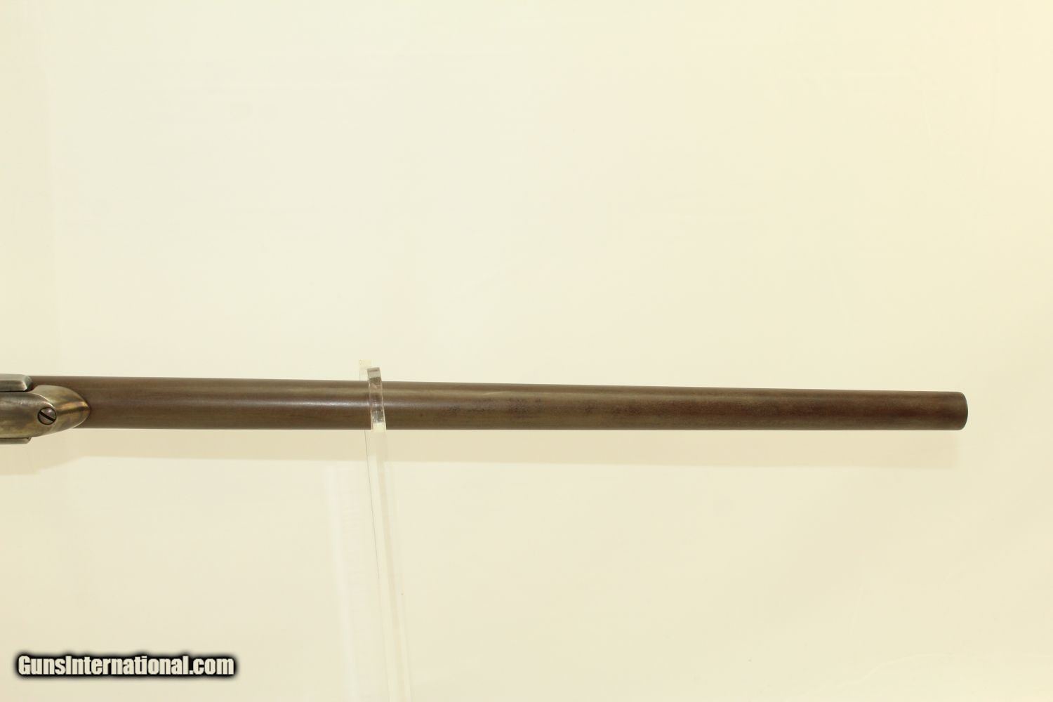 Description: Civil War CAVALRY CARBINE by RICHARDSON & OVERMAN VERY NICE Example of the Gallager Patent Carbine Here we present an antique Civil War Richardson & Overman Gallager Patent Percussion Carbine manufactured in the early 1860s. This carbine was invented by South Carolina native Mahlon Gallager, who licensed the design to Richardson and Overman of Philadelphia for production. On August 31, 1861, the first Gallager was sold to the U.S. Army. 22,728 Gallager carbines were purchased during the Civil War and saw extensive use as a cavalry arm with the Union troops. Both percussion and metallic cartridge versions of the Gallager carbine were manufactured, but extraction problems with both cartridge types made this rifle somewhat unpopular with the troops that used it. This carbine fired an unprimed .50 caliber cartridge with a brass foil and paper-wrapped case. Ignition was provided by the percussion cap. A major fault of these carbines was the absence of a suitable extractor. The case had to be extracted with a knife or some other sharp tool. When the trigger guard lever is lowered, the barrel slides out from the frame and tips downward to receive the cartridge. This cavalry carbine was known to be used by the 2nd, 3rd, 4th and 6th Ohio, the 13th Tennessee and the 3rd West Virginia cavalries. It still bears a clear government inspector cartouche with the initials for William H. Russell. The overall condition is very good plus. The iron parts are smooth and gray. The markings are clear. The walnut stock is in very good condition. The bore is in great shape with sharp rifling. The action is excellent, strong and crisp. Own the original! This is a legitimate antique and not a reproduction. Barrel is 22 ¼ inches. Caliber: .50 Percussion Overall condition as seen in photos. Very Fast. Very Safe. FREE SHIPPING WORLDWIDE. Delivered directly to your door by express mail! Guaranteed AUTHENTIC & Includes CERTIFICATE OF AUTHENTICITY. ancestryguns $2425 #190081 SOLD Antique: Yes |