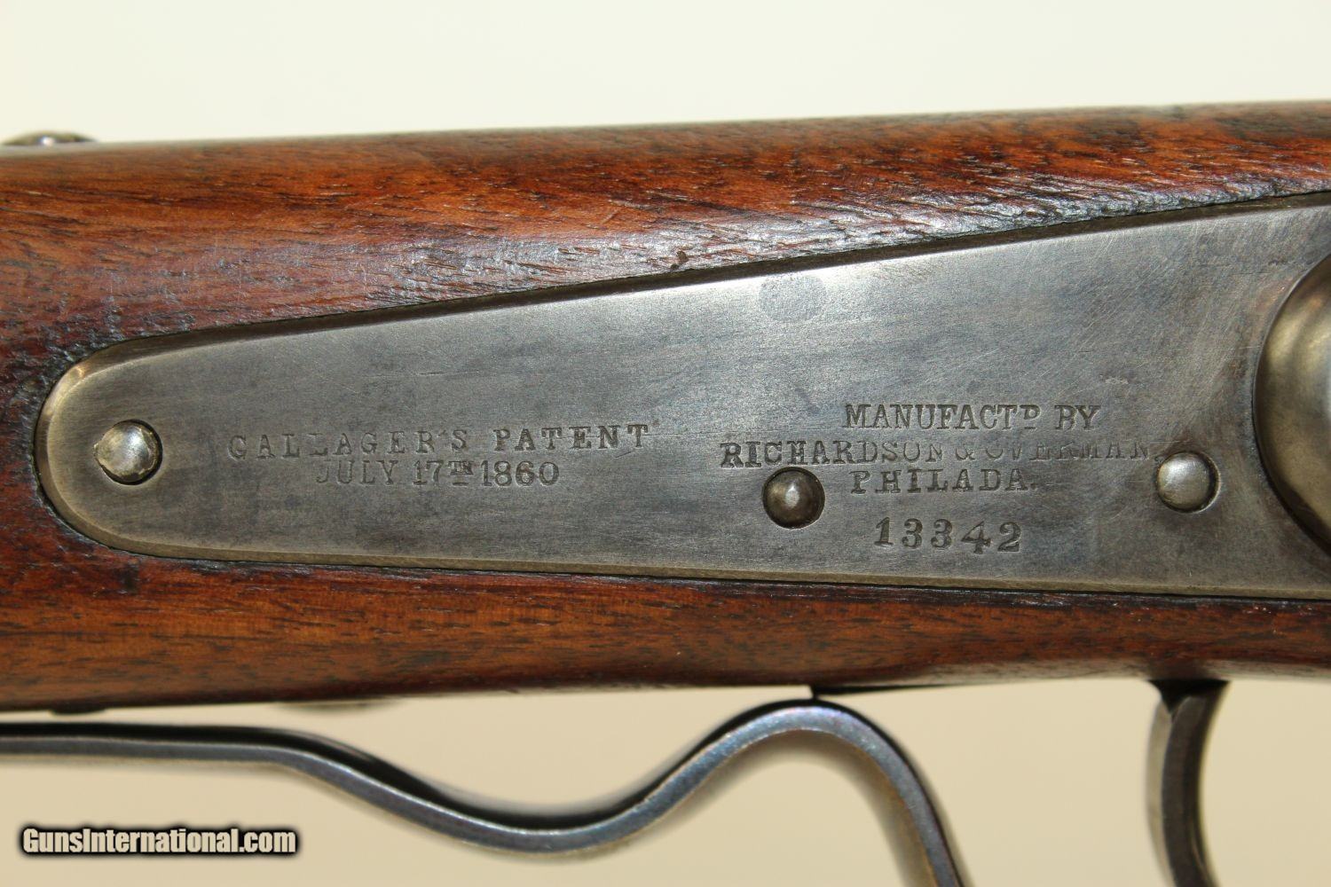 Civil War CAVALRY CARBINE by RICHARDSON & OVERMAN VERY NICE Example of the Gallager Patent Carbine