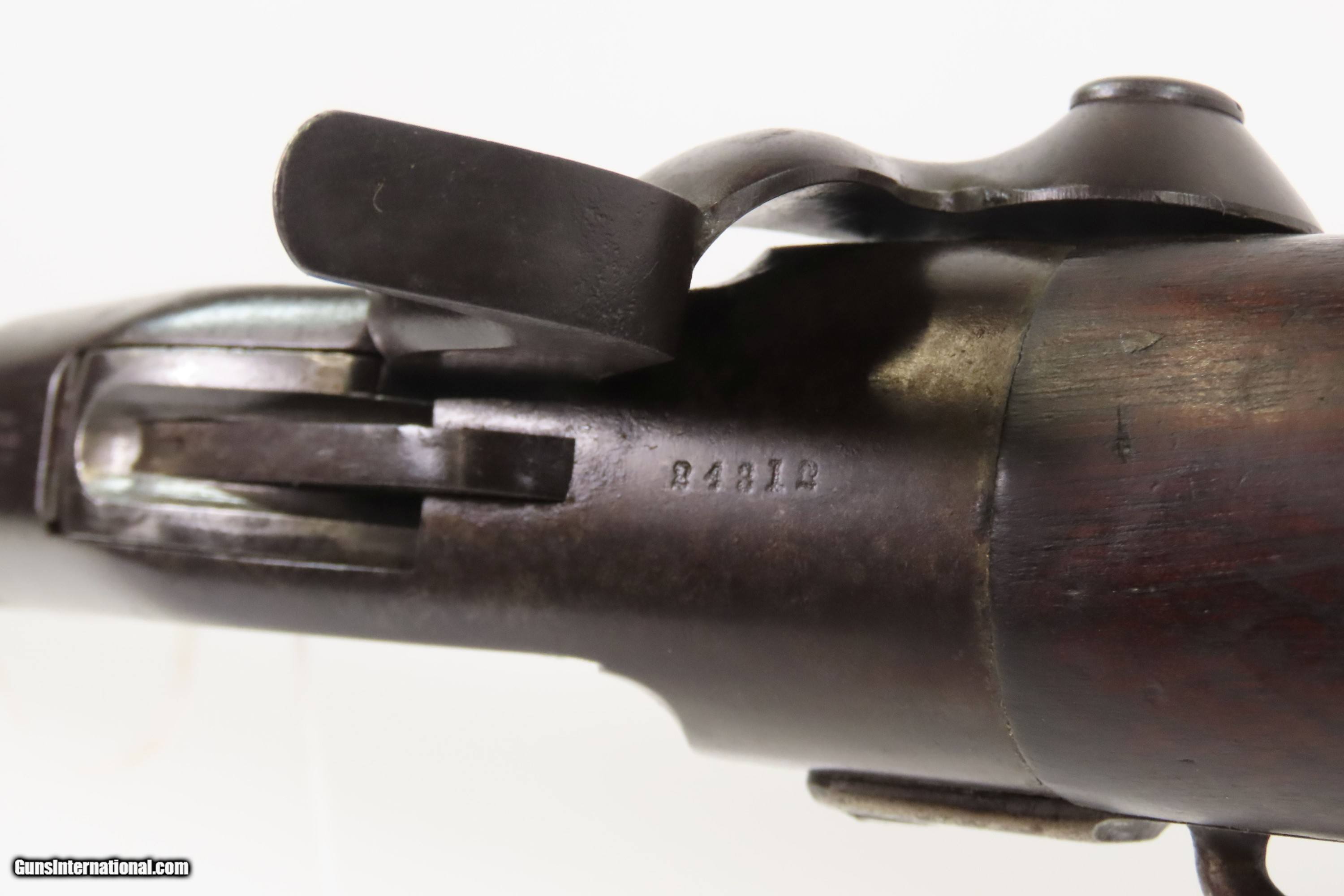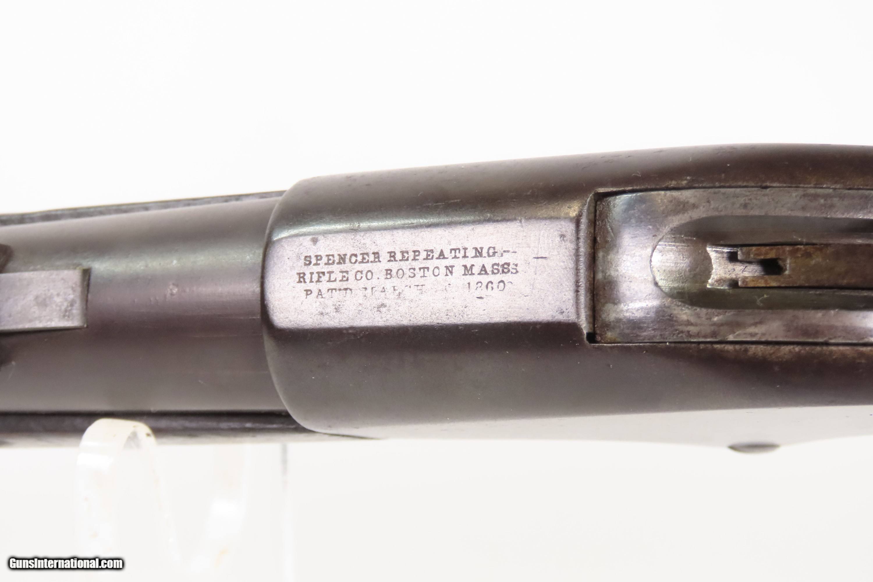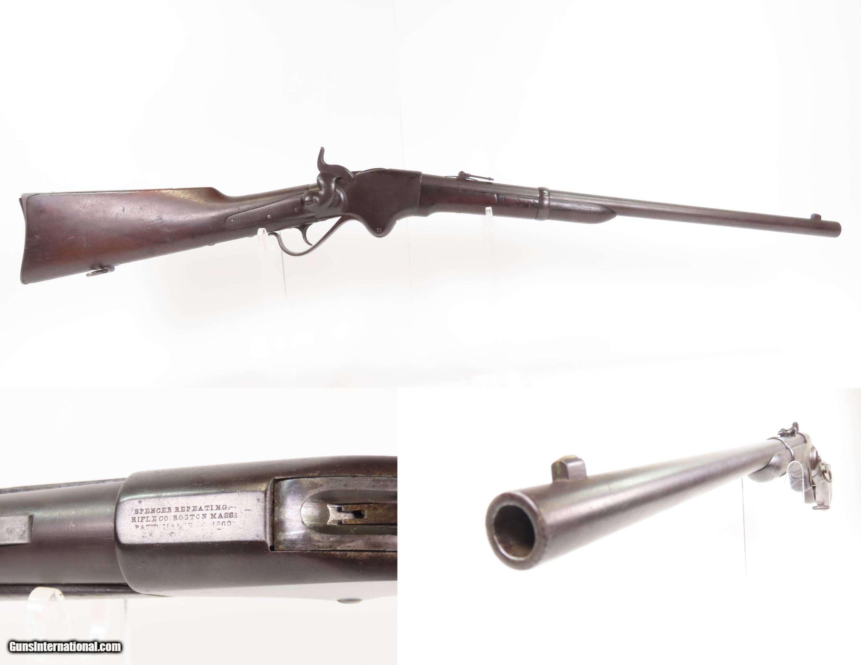 Description: CIVIL WAR/FRONTIER Era Antique M1860 SPENCER Saddle Ring Carbine UNFORGIVEN Early Repeater Famous During Civil War & Wild West Here Ancestry Guns presents an antique Model 1860 Spencer Repeating Rifle Co. Army Model Saddle Ring Carbine, made circa 1863-1865 in Boston, Massachusetts, during the Civil War. The Spencer is a lever-action repeating rifle designed by Christopher Spencer in 1860, leading some to refer to this example as the “Model 1860”. These lever-operated, breech-loading rifles were marvels of the time and had a lasting impact on how war was to be fought in the future. Though their service life in the U.S. military was relatively short, the Spencer story includes Christopher Spencer, the inventor of the rifle, demonstrating and shooting with President Abraham Lincoln, who gave his full endorsement of the piece. Supposedly, during the battle at Gettysburg, a captured Rebel that day said one could “load in the morning and fire all day!” This was due to the Spencer’s most endearing quality: a 7-round magazine tube in the butt of the gun. This gave the shooter phenomenal firepower in a day when most soldiers were muzzle-loading single shots or even singly loading their breech-loading carbines. This is truly one of the iconic rifles of the Civil War and Western Frontier. This is the type of Spencer that was used by Morgan Freeman and Clint Eastwood in the movie “Unforgiven”. Many a buffalo were taken off the plains during westward expansion by the Spencer rifle. The overall condition is very good. Original dark brown patina throughout. The stock and forend have an expected amount of wear, and remain solid. The markings are worn but remain legible. The action is strong. The bore remains reflective with a lightly frosted appearance and serviceable rifling. Own the original! This is a legitimate antique and not a reproduction. Barrel is 22 inches. Caliber: .52 Spencer Overall condition as seen in photos. Very Fast. Very Safe. FREE SHIPPING WORLDWIDE. Delivered directly to your door by express mail! Guaranteed AUTHENTIC & Includes CERTIFICATE OF AUTHENTICITY. $4200 #259371 Antique: Yes Price: $4,200.00 Buy Now Pay with
