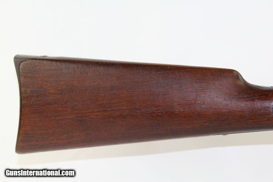 Description: CIVIL WAR SHARPS New Model 1859 50-70 GOVT CARBINE Converted Sharps Saddle Ring Carbine Here we present an antique Sharps New Model 1859 Cavalry Carbine, made circa 1859 in Hartford, Connecticut. There is a reason the good name of Sharps has lasted to the current day, reaching nearly legendary status. Those made prior to and during the American Civil War, from 1861-1865, were popular with the troops, especially cavalry. They were handy, accurate, powerful and reliable guns, and many went to the Western Frontier as trappers, explorers and settlers moved that way. This example was originally produced in the percussion format and used in the Civil War. After the war, in 1867, the U.S. Government paid Sharps Rifle Manufacturing Co. to update and convert about 31,000 of these to metallic cartridge for the military. The “DFC” inspection cartouche for the conversion is located in the middle of the left side of the butt stock. These would have been issued to cavalry units. The lock is marked “C. SHARPS PAT./OCT. 16TH 1848” AND “R.S. LAWRENCE PAT/APRIL 12 1859”. This is one of the iconic carbines of Western lore! The overall condition is near fine. The case colors are still visible on the frame. The blue finish on the barrel is 65%. The markings are legible. The walnut stock is in great shape. The bore is mostly bright with strong rifling. The action is excellent. Here is a historic Sharps in 50-70 Govt, the prototypical cavalry, Western, buffalo rifle! Own the original! This is a legitimate antique and not a reproduction. Barrel is 22 inches. Caliber: .50-70 GOVT Overall condition as seen in photos. Very Fast. Very Safe. FREE SHIPPING WORLDWIDE. Delivered directly to your door by express mail! Guaranteed AUTHENTIC & Includes CERTIFICATE OF AUTHENTICITY. ancestryguns $4100 #8420 SOLD Antique: Yes |