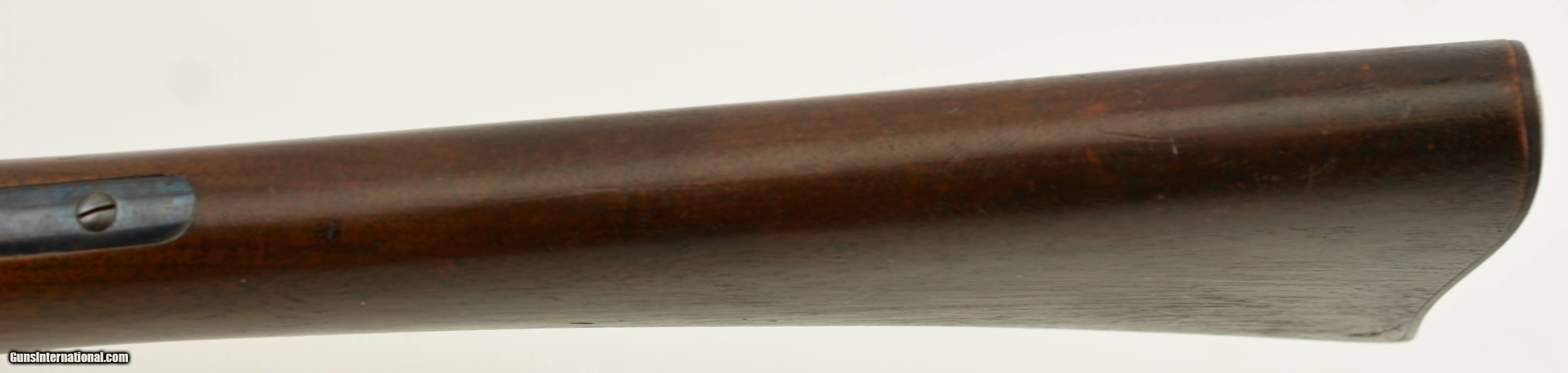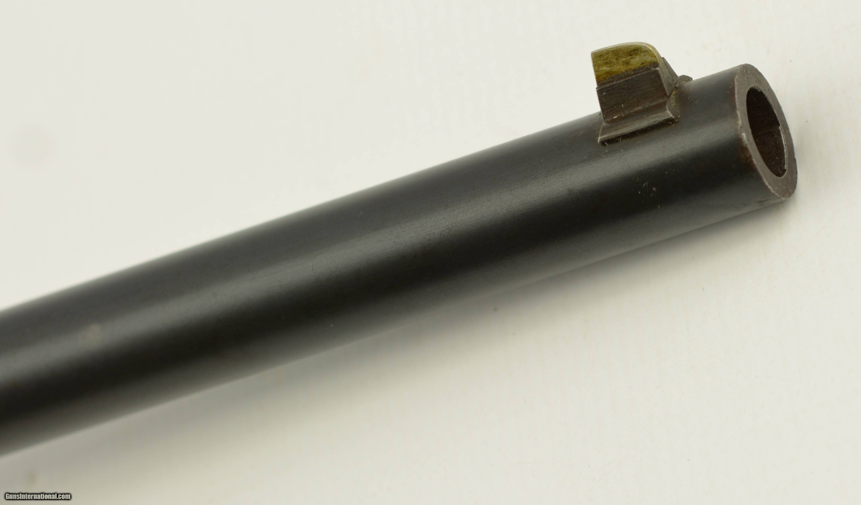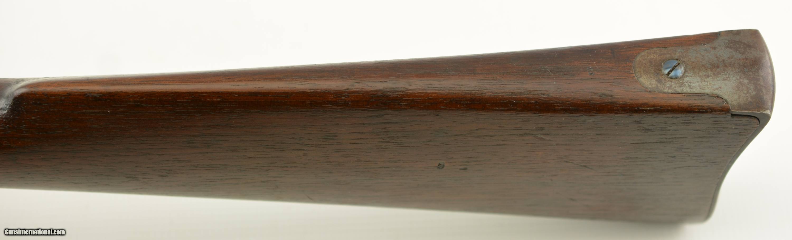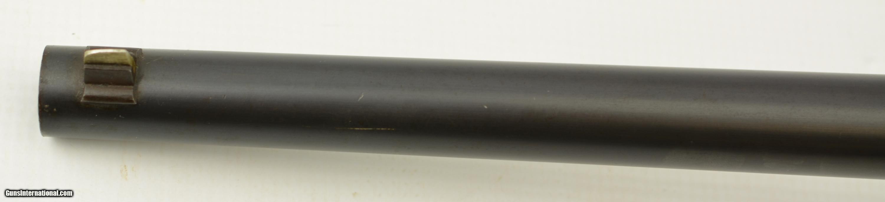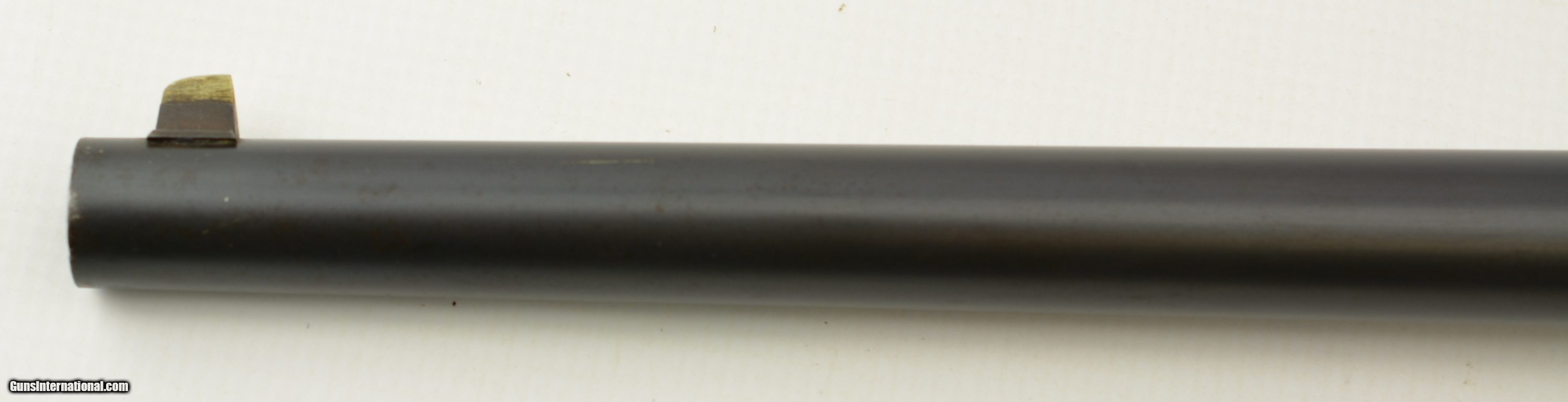 Description: Serial #9432, .50 Caliber, 21 1/2" barrel with an excellent, bright bore. The barrel has most of the original blue remaining that has started to blend with minute specks of plum-brown freckling with some very mild silvering at the muzzle and along the edges of the breech facets. The frame has 60-70% of the original bright color case-hardening remaining, and mottled gray-brown on the balance. The sling bar and ring are mostly a mottled gray-brown color, the barrel lock spring retains most of its original bright blue under thin freckling, and the brass opener has an ochre-yellow patina. The walnut stock and forend have an excellent added oil finish over non-sanded wood with scattered small handling marks and blemishes, as well as crisp inspector cartouches on the left side of the wrist. The barrel lock-up is rock solid and the mechanism is fully functional. This is a fantastic looking Smith and is in excellent condition overall. Antique SOLD Manufacturer: Smith Model: Carbine Serial Number: 9432 Caliber Info: .50 Cal Gauge Info: .50 Cal |