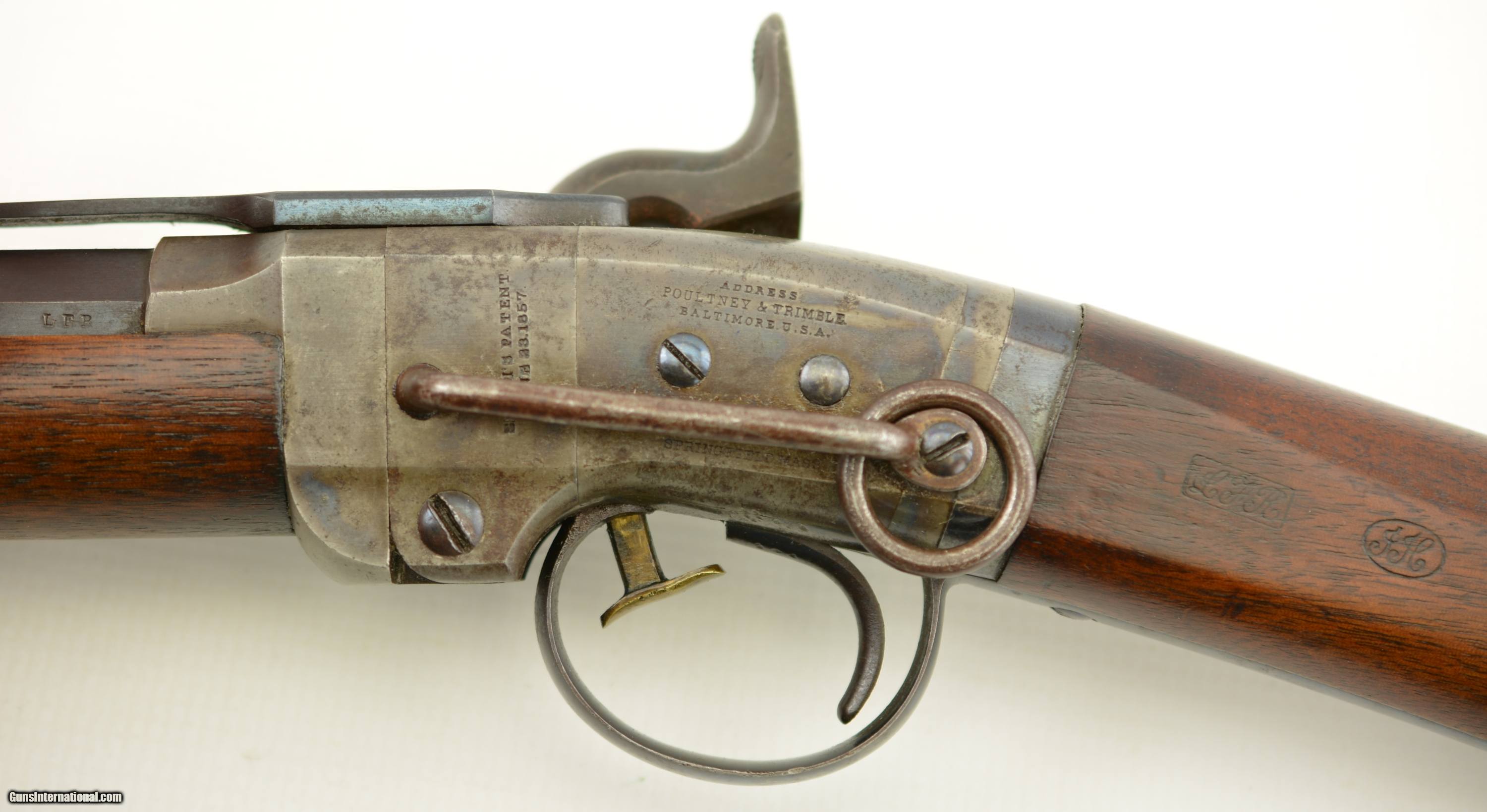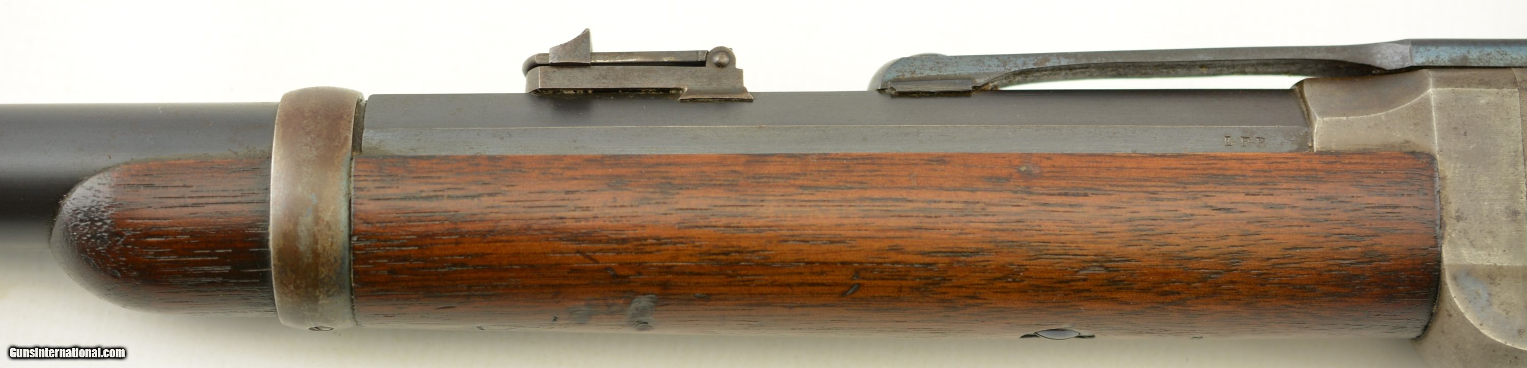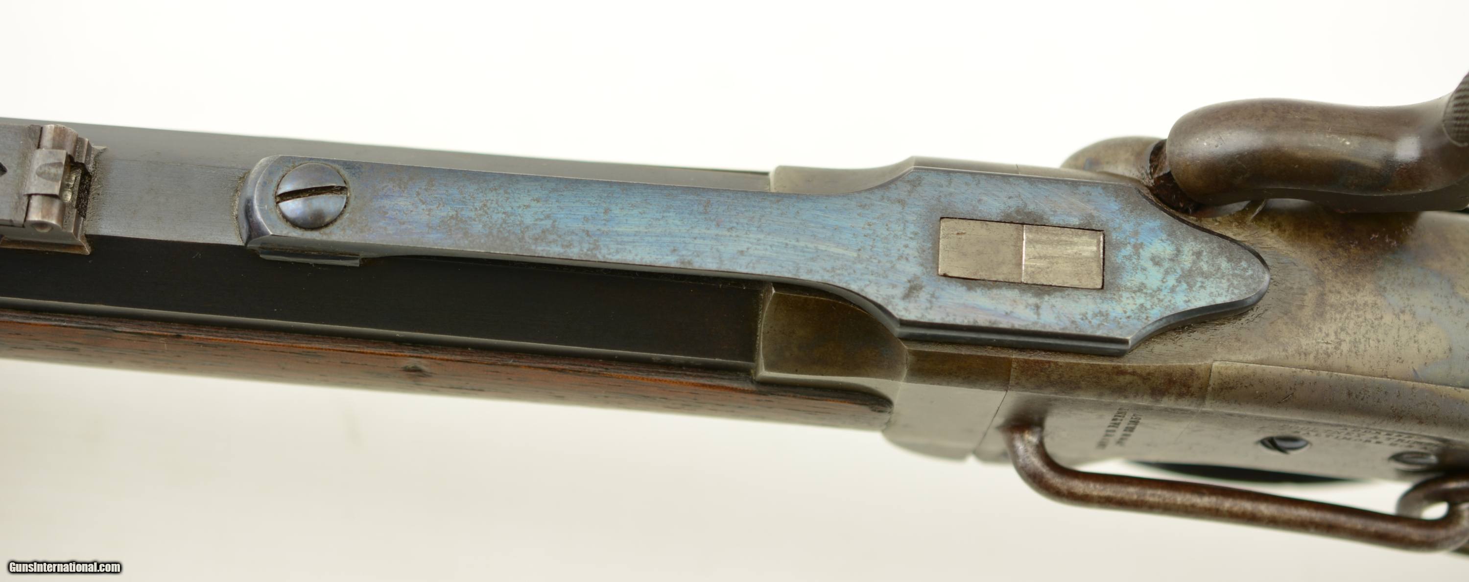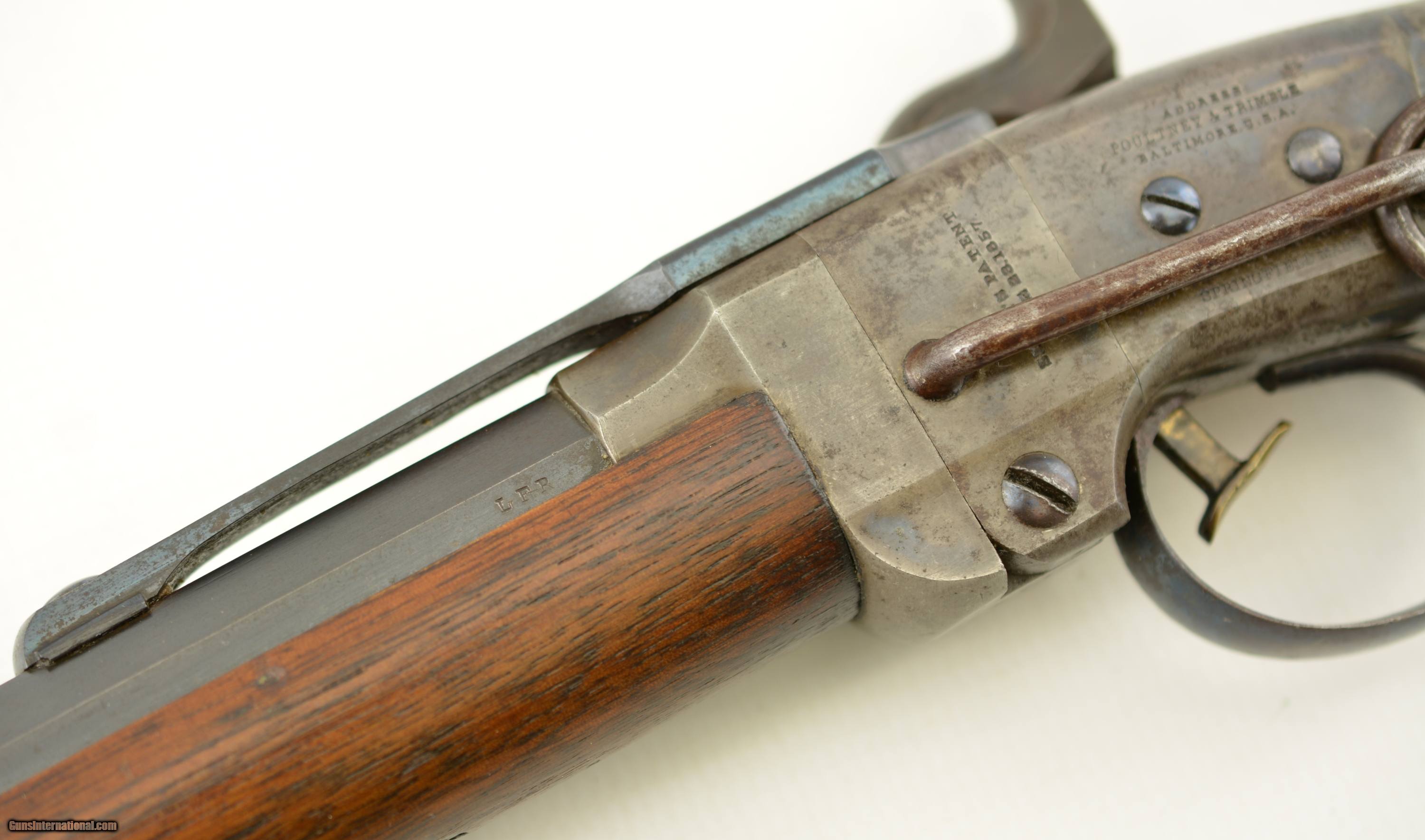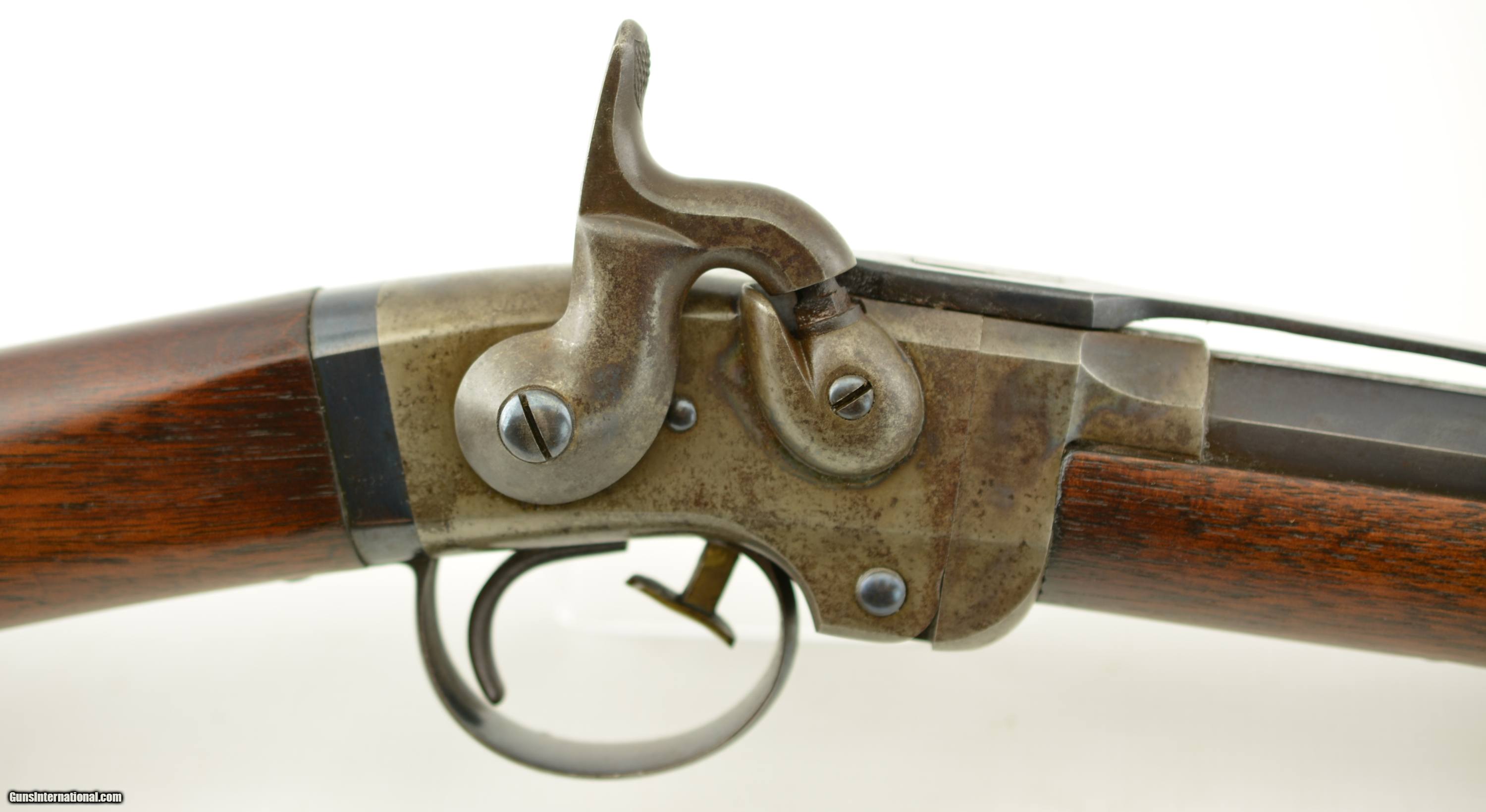Description: Serial #9432, .50 Caliber, 21 1/2" barrel with an excellent, bright bore. The barrel has most of the original blue remaining that has started to blend with minute specks of plum-brown freckling with some very mild silvering at the muzzle and along the edges of the breech facets. The frame has 60-70% of the original bright color case-hardening remaining, and mottled gray-brown on the balance. The sling bar and ring are mostly a mottled gray-brown color, the barrel lock spring retains most of its original bright blue under thin freckling, and the brass opener has an ochre-yellow patina. The walnut stock and forend have an excellent added oil finish over non-sanded wood with scattered small handling marks and blemishes, as well as crisp inspector cartouches on the left side of the wrist. The barrel lock-up is rock solid and the mechanism is fully functional. This is a fantastic looking Smith and is in excellent condition overall. Antique SOLD Manufacturer: Smith Model: Carbine Serial Number: 9432 Caliber Info: .50 Cal Gauge Info: .50 Cal |