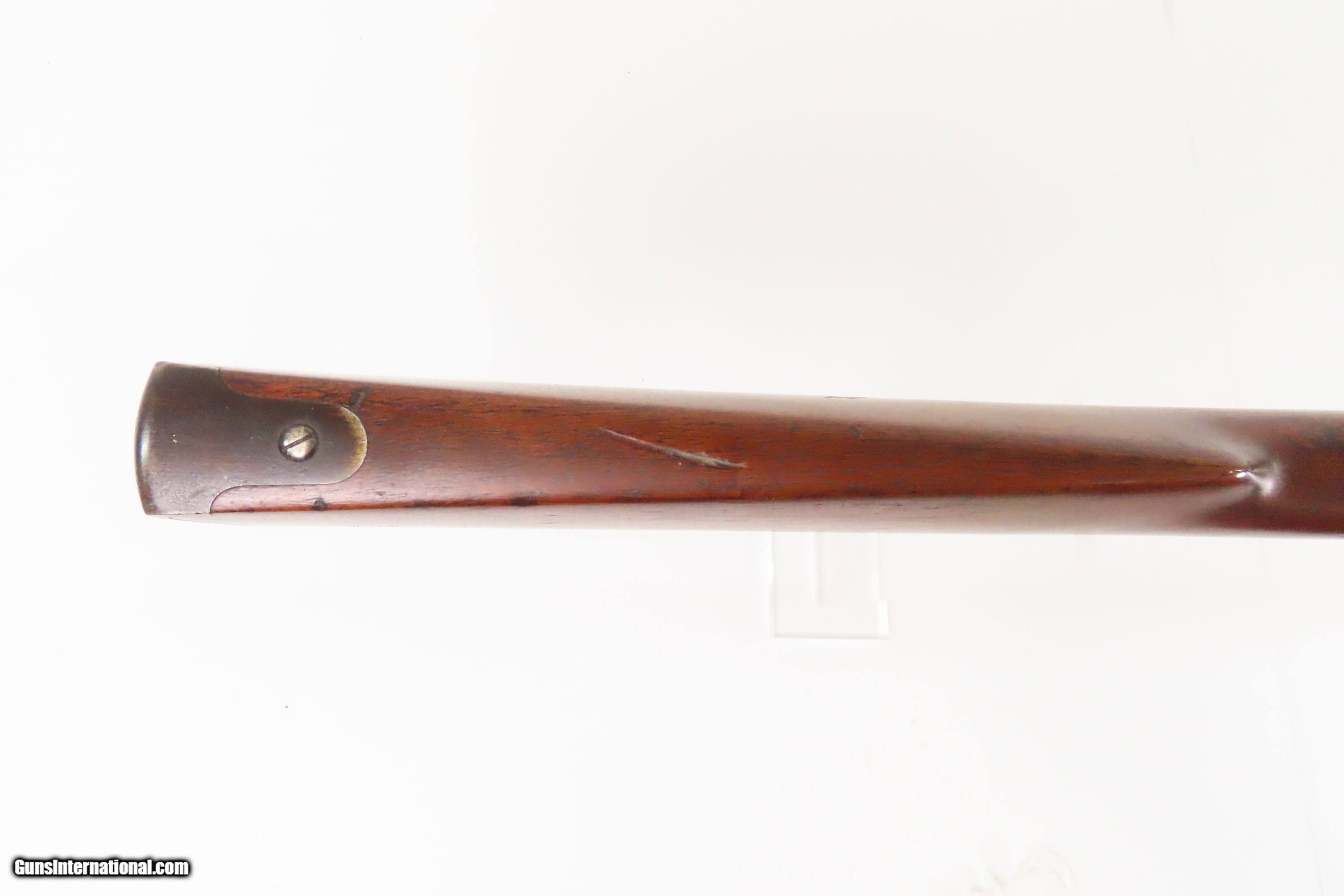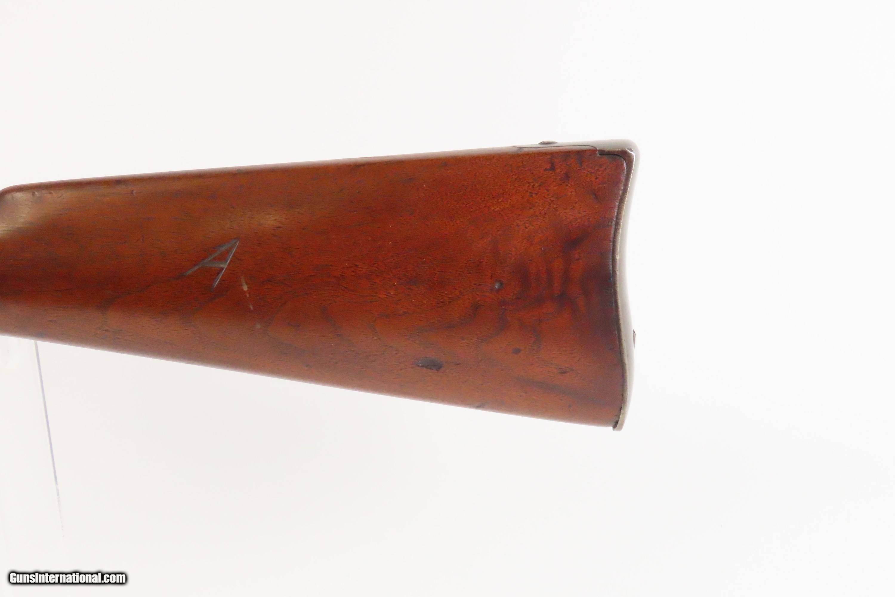 Description: CIVIL WAR U.S. Mass. Arms Co SMITH PATENT Breech Loading CAVALRY SR Carbine Used Beyond the Civil War into the WILD WEST Here we present an antique U.S. Massachusetts Arms Co. Smith’s Patent Carbine, made circa 1863 by Massachusetts Arms Co. of Chicopee Falls, Massachusetts, and retailed by Poultney and Trimble of Baltimore, Maryland. A total of 30,362 of these carbines were made with a production run between 1861 and 1865, and almost all of them were used in the Union cavalry of the American Civil War. Many were used after the war throughout the U.S. including by the Indians during their raids into Canada. The designer was Dr. Gilbert Smith of New York. His design featured a simple break open action, providing a single shot, utilizing a cartridge made of rubber. While many different cartridges were in use simultaneously during the war—which must have been a logistical nightmare—the rubber cartridge was both a nuisance to the shooter who had to get the hot gummy thing out of the chamber once fired, as well as to the ammunition manufacturer, who had to acquire rubber from distant places. In place of rubber, many other materials were also tried. According to Flayderman, the Smith Carbine was known to have been utilized in number by the 3rd West Virginia, 7th and 11th Illinois, 1st Connecticut, 7th and 17th Pennsylvania, 6th and 9th Ohio, and 1st Massachusetts Cavalries. The over condition is very good. Nice patina. The action is excellent. The bore is bright with sharp rifling. The stock is solid. Outline of the cartouche on the left wrist. Numbers match. Own the original! This is a legitimate antique and not a reproduction. Barrel is 21-5/8 inches. Caliber: .50 Percussion Overall condition as seen in photos. Very Fast. Very Safe. FREE SHIPPING WORLDWIDE. Delivered directly to your door by express mail! Guaranteed AUTHENTIC & Includes CERTIFICATE OF AUTHENTICITY. ancestryguns $2700 #247365 SOLD Antique: Yes |